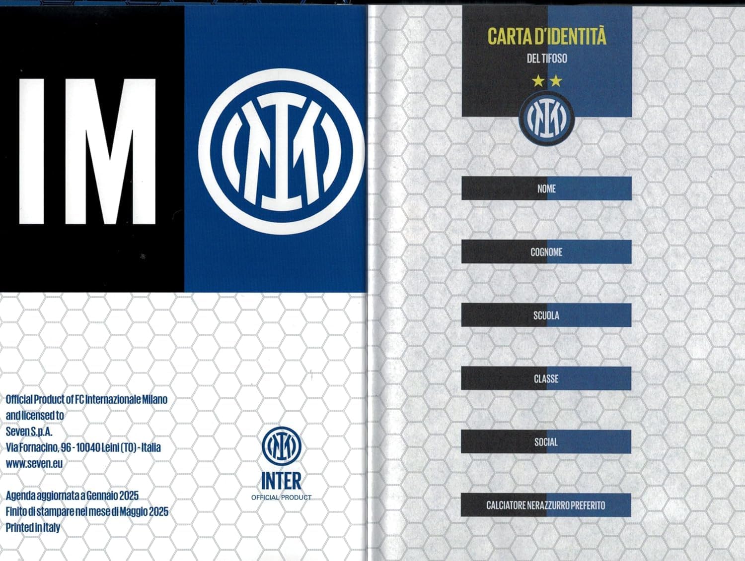 ✔️Agenda Scuola F.to 18x13cm 2025/2026 datato, prodotto ufficiale ed originale ✔️Informazioni agenda: per 10 mesi , pagine a quadretti, copertina imbottita, Include 320 pagine interne stampate a colori, ideali per rendere più allegre e divertenti le giornate a scuola ✔️ Questo diario è ideale per prendere nota di compiti, verifiche, interrogazioni e molto altro. Data di inizio diario 1 settembre e data di fine 10 agosto ✔️Omaggio portachiave calcio 3d linea PRESTIGE & DELUXE