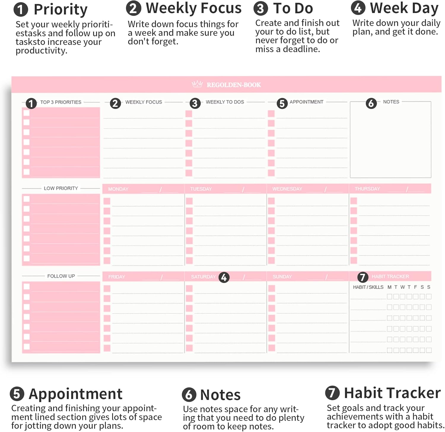 | Modèle fabricant | B5-WeeklyNotepad-Glue-Pink |