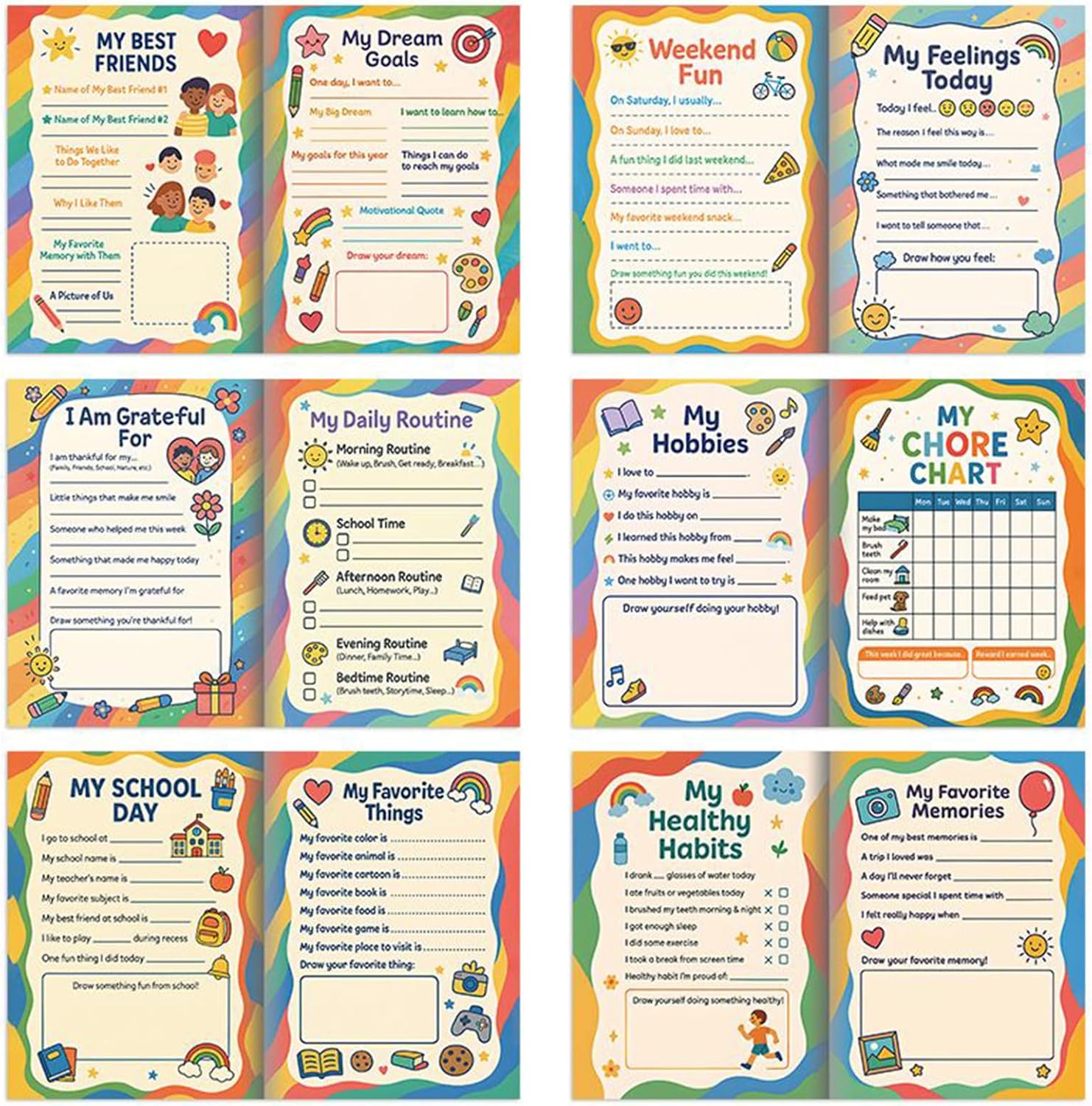 Visivamente stimolante: combinazioni di colori vivaci e accattivanti immagini dei cartoni animati migliorano l'attenzione e motivano i bambini a godersi la gioia di mantenere un diario personale Supporto per lo sviluppo olistico: dotato di strumenti per la gestione del tempo, la formazione e l'organizzazione quotidiana di routine, questo planner supporta la documentazione dei punti salienti della vita, promuovendo lo sviluppo olistico e motivando l'impostazione degli obiettivi dei sogni Creative Family Engagement: Facilita il legame interattivo con zone dedicate per la creatività collaborativa e strumenti per esprimere apertamente le emozioni, favorendo una comprensione più profonda del mondo interiore del bambino durante l'esplorazione congiunta dei contenuti Materiale resistente all'usura: la carta inodore di alta qualità previene le sbavature dell'inchiostro, fornendo un'esperienza di scrittura fluida che protegge le mani e la vista durante l'uso prolungato Regalo ideale: fornisce un potenziale ricordo permanente preservando ricordi gioiosi e documentando amicizie, garantendo un caro ricordo d'infanzia regalo per ogni bambino