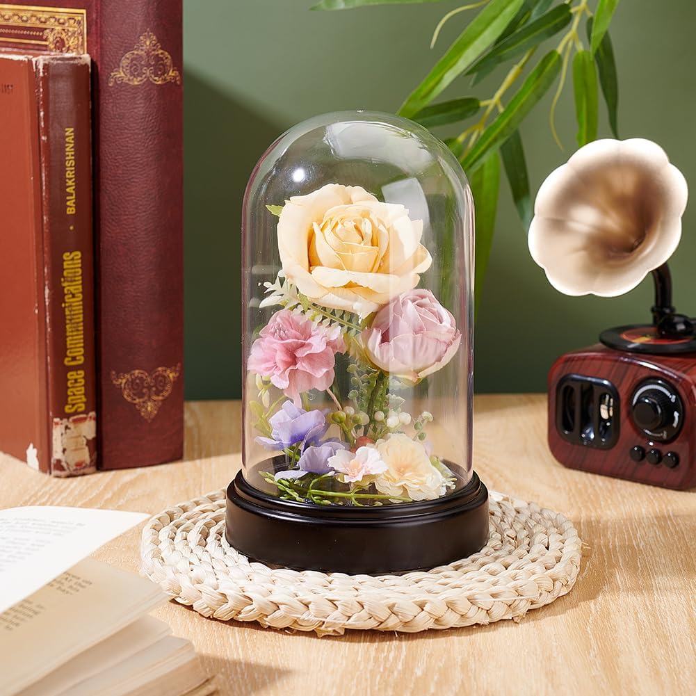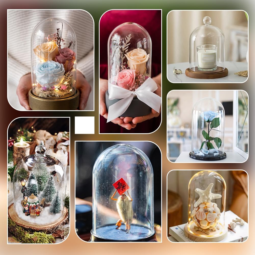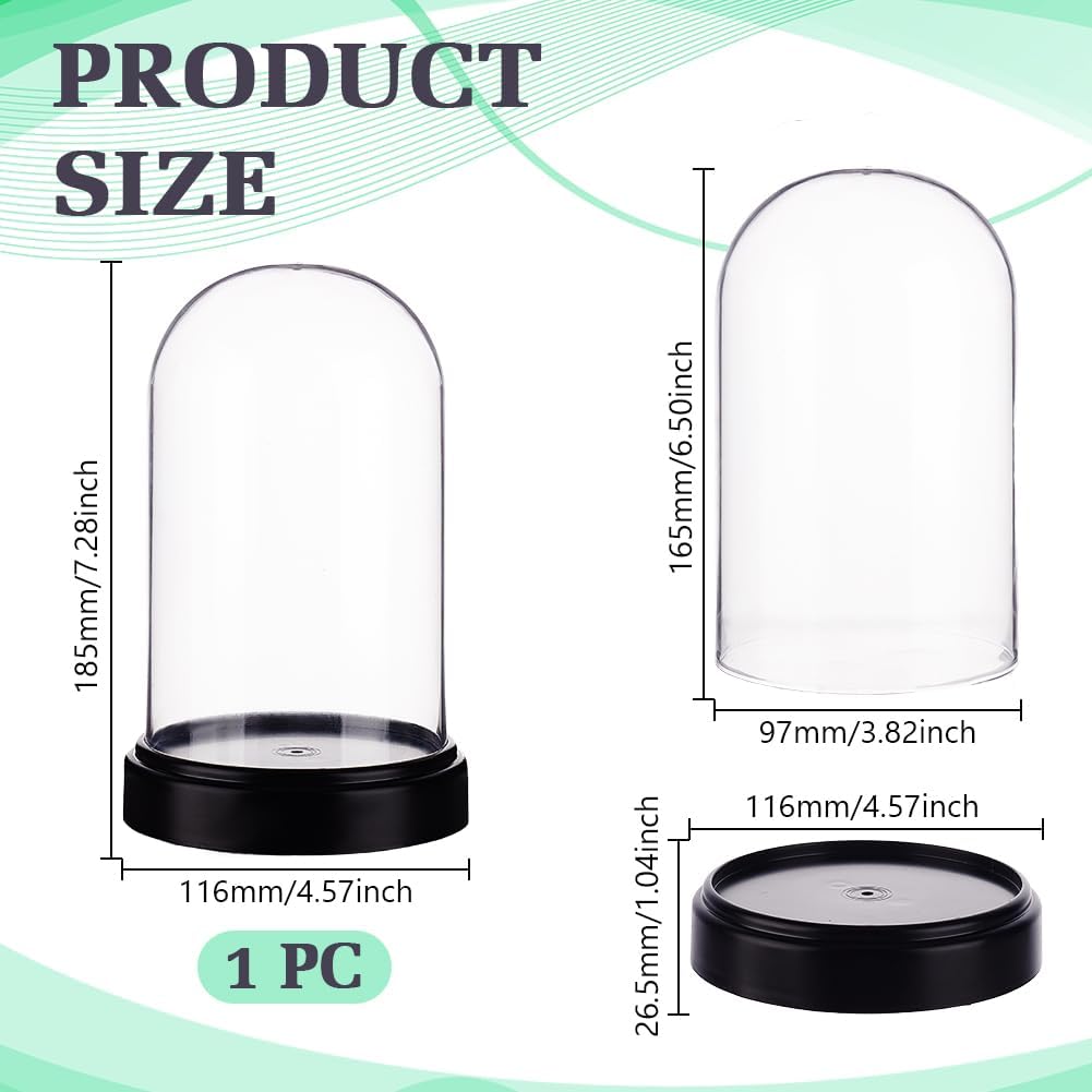 Informazioni sul dimensionamento: con dimensioni precise (diametro 4,6 pollici, altezza 7,25 pollici), questo globo a campana in acrilico si adatta perfettamente alla maggior parte degli oggetti da collezione pur mantenendo un ingombro compatto. Il diametro interno di 10 cm e la copertura di 16,5 × 10 cm garantiscono un facile posizionamento, mentre la base ponderata di 11,6 × 2,7 cm fornisce un'esposizione stabile per oggetti delicati. Estetica classica della campana: l'elegante design della campana per esposizione di fiori crea un ambiente protettivo sigillato che protegge efficacemente i tuoi preziosi oggetti da collezione dalla polvere mantenendo una visibilità cristallina a 360°. La sua superficie liscia resiste alle impronte digitali e si pulisce senza sforzo, garantendo che gli oggetti esposti rimangano intatti. Texture trasparente: realizzata in acrilico di alta qualità, questa elegante cupola presenta una superficie ultra liscia che protegge i tuoi tesori esposti mettendone in mostra la bellezza. La cupola trasparente esalta i colori vibranti dei fiori secchi e la robusta base nera si abbina perfettamente al coperchio trasparente. Scelta regalo perfetta: questa cupola centrotavola nuziale è un regalo squisito per gli sposi, un bellissimo modo per presentare i loro ricordi di matrimonio. Serve anche come affascinante confezione regalo di compleanno, permettendoti di esporre in modo creativo gioielli o ricordi all'interno. Il sofisticato design della campana trasforma i regali ordinari in presentazioni straordinarie. Occasioni applicabili: queste piccole cupole decorative in acrilico possono essere utilizzate per esporre una varietà di oggetti, come figurine, rose, fiori, piante, piante grasse, mazzi di fiori, foto e altri ricordi come centrotavola nuziali, decorazioni per la tavola, ecc.