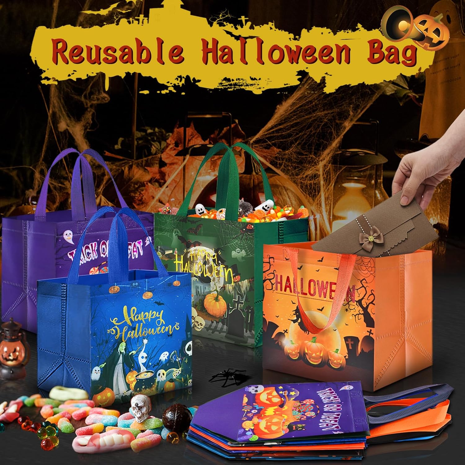 [Pacchetto incluso]: questo pacchetto contiene un totale di 4/8 borse di Halloween. La dimensione delle borse di Halloween è 20 x 21 x 15 cm. Ha un ampio spazio ed è comodo da trasportare, soddisfa le esigenze della confezione regalo di Halloween e dello shopping quotidiano. [Materiale pratico]: la nostra borsa regalo di Halloween è realizzata in tessuto non tessuto di alta qualità, che è molto pratico. È solido, impermeabile e riutilizzabile. La nostra borsa per dolcetti di Halloween è un sostituto perfetto per sacchetti di carta, sacchetti di plastica e cestini. [Design di alta qualità]: ogni set di sacchetti regalo di Halloween ha un design diverso. Il motivo della borsa in tessuto non tessuto è luminoso e colorato. La nostra borsa tote di Halloween è facile da aprire e piegare, il che è comodo per riporre le cose e conservarle per il prossimo utilizzo. [Miglior regalo di Halloween]: la nostra borsa di Halloween ha una grande capacità, che può essere utilizzata per posizionare snack di Halloween, coniglietti di bambole e altri regali e creare sacchetti regalo di Halloween per i bambini e i tuoi amici. È facile da trasportare. Una borsa di Halloween è una borsa da regalo ideale. [Forniture per feste di Halloween]: le nostre borse di Halloween con manici sono la scelta migliore per feste di Halloween, confezioni regalo di Halloween e decorazioni per feste. Può anche essere usato come borsa della spesa, che è verde ed ecologica.