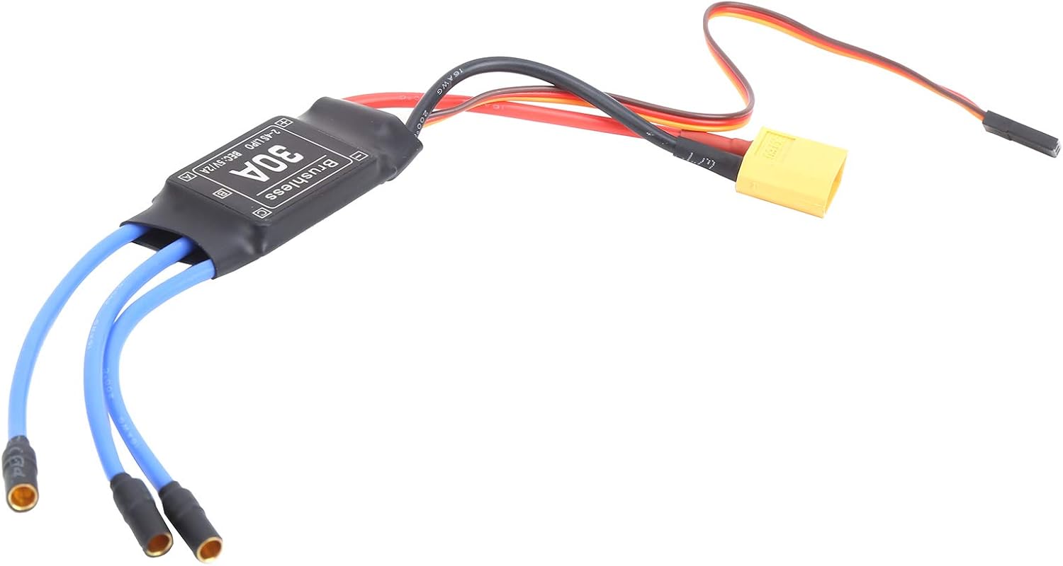 Il tubo di alimentazione MOSFET di uscita è dotato di un dissipatore di calore per ridurre l'aumento di temperatura del dispositivo e migliorare la capacità di funzionamento di corrente elevata del Accessorio pratico per drone radiocomandato, elicottero e FPV, Facile da installare, non richiede operazioni complicate. Il terminale di ingresso di potenza adotta l'impedenza ultra bassa e il condensatore elettrolitico di grande capacità, che migliora la capacità anti interferenza. Il microcomputer a chip singolo adotta un chip regolatore di tensione indipendente, che evita le interferenze di potenza causate dal cambiamento di carico BEC e migliora la stabilità di lavoro. Realizzato con componenti elettronici di alta qualità, affidabile da usare. Dispone di corrente continua 30A e corrente di picco 40A.