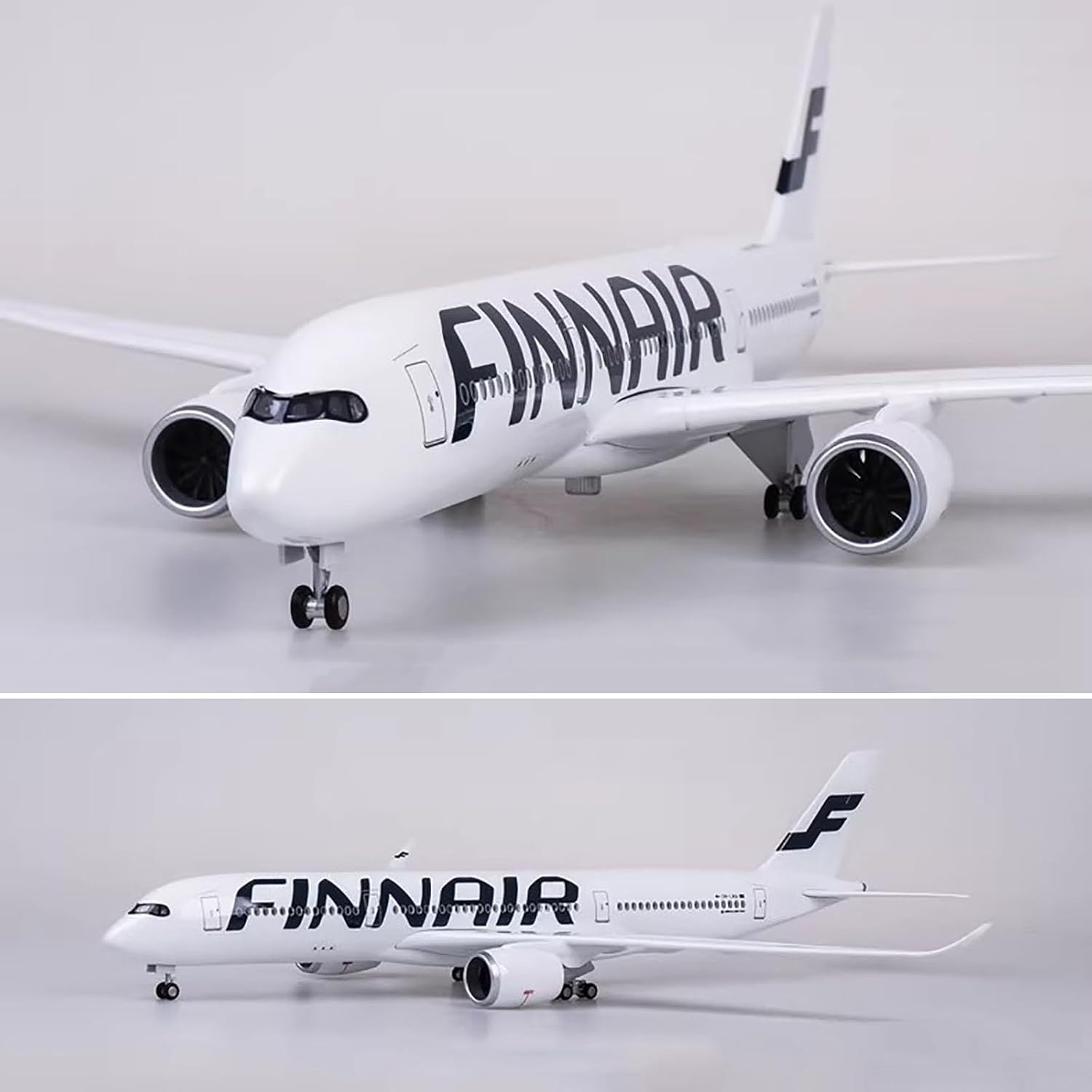 Model Aircraft: 18.5 In 1:144 Scale Model Jet Model Airplane Finland A350-900 with wheels model aircraft, 18.5 x 17.3 x 8.3 inches.Material Resin Alloy ABS Diecast Collectibles: Meticulous attention to detail from the engine plate to the paint, using high quality resin, solid base, and metal brackets. Models are True to scale, Models are made from high quality, heavy, resin material that looks amazing, Models are solid fuselage Easy Assembly: Simple snap on design model can be easily installed in just three steps, Snap fit design allows for our models to be assembled with ease,Less time putting it together and more time showing it off,Models come with a display stand, Models are great as souvenirs or gifts for a special someone Realistic Scale Size: Mold accurate First Class paint Refined according rigorous details to the original proportion, using one-piece prefabricated 3D modeling technology, anodic plating color matching process, visible details Collectible Gift: Simulated airplane model is equipped with pedestal bracket, which can be displayed at any time. It is an excellent collection for real airplane models enthusiasts, an excellent decoration for your home, office and counter, and an excellent Christmas birthday gift for friends