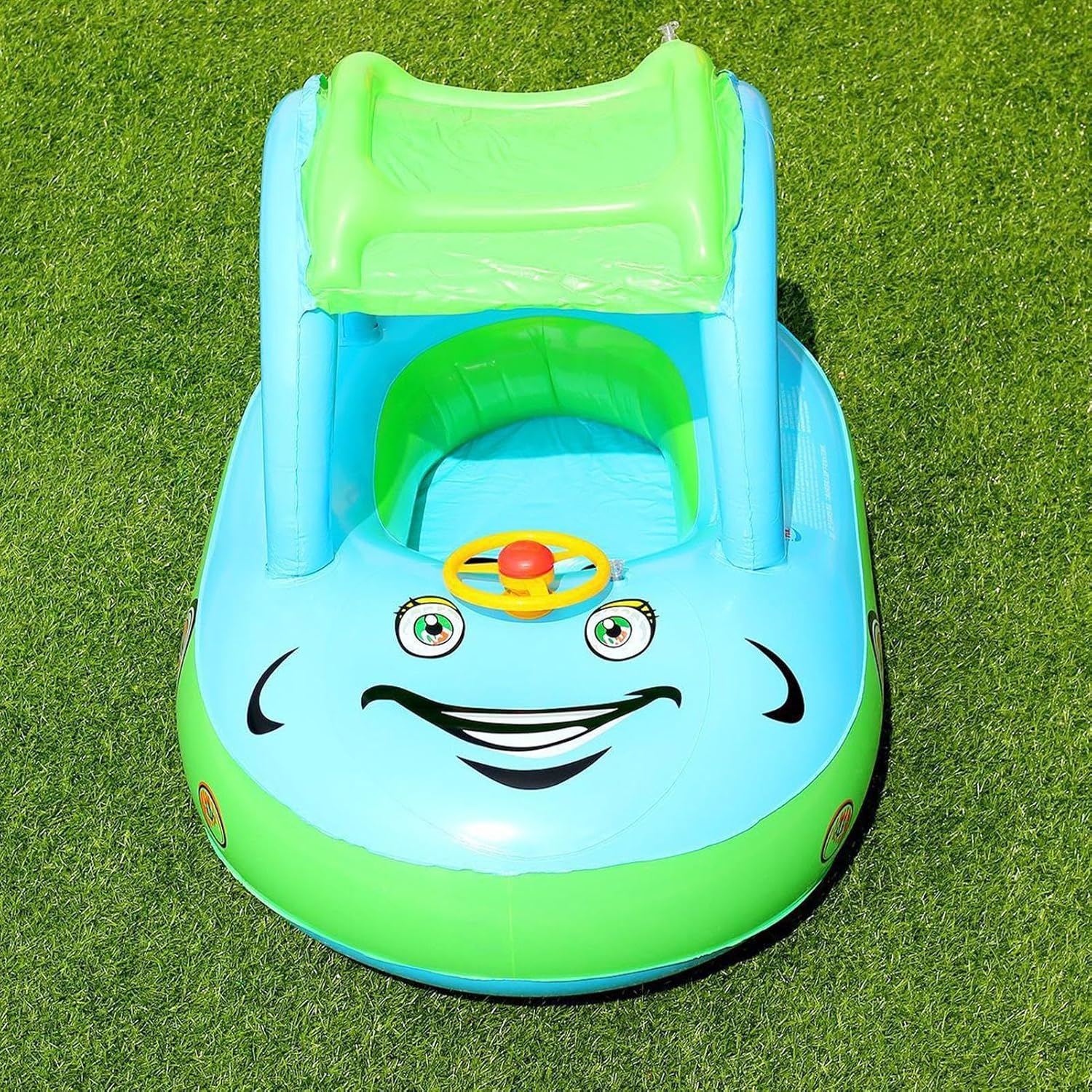 Seduta sicura: l'anello con cuscino d'aria multi-camera offre una presa stabile per bambini, cintura regolabile e elementi antiscivolo garantiscono un divertimento sicuro in piscina con un comfort ottimale Stimola le capacità motorie: la speciale forma autobarca stimola giochi fantasiosi e allena i movimenti, combinato con interattivo per un'esperienza coinvolgente di gioco in acqua Pratica maneggevolezza: combina protezione solare rimovibile, borsa compatta e valvola di sfiato monouso per un facile utilizzo e un divertimento senza stress all'aperto Protezione UV: tettuccio regolabile a due strati protegge efficacemente dai raggi UV. La ventilazione a rete ben congegnata mantiene la circolazione dell'aria e garantisce un comfort ottimale durante l'uso prolungato del salvagente per bambini. Interazione & Lavoro autonomo: Supporta il gioco congiunto e il gioco autonomo. L'anello di traino integrato consente ai genitori di guidare con attenzione. Ideale per l'uso in piscine, spiagge e parchi acquatici per un divertimento versatile.