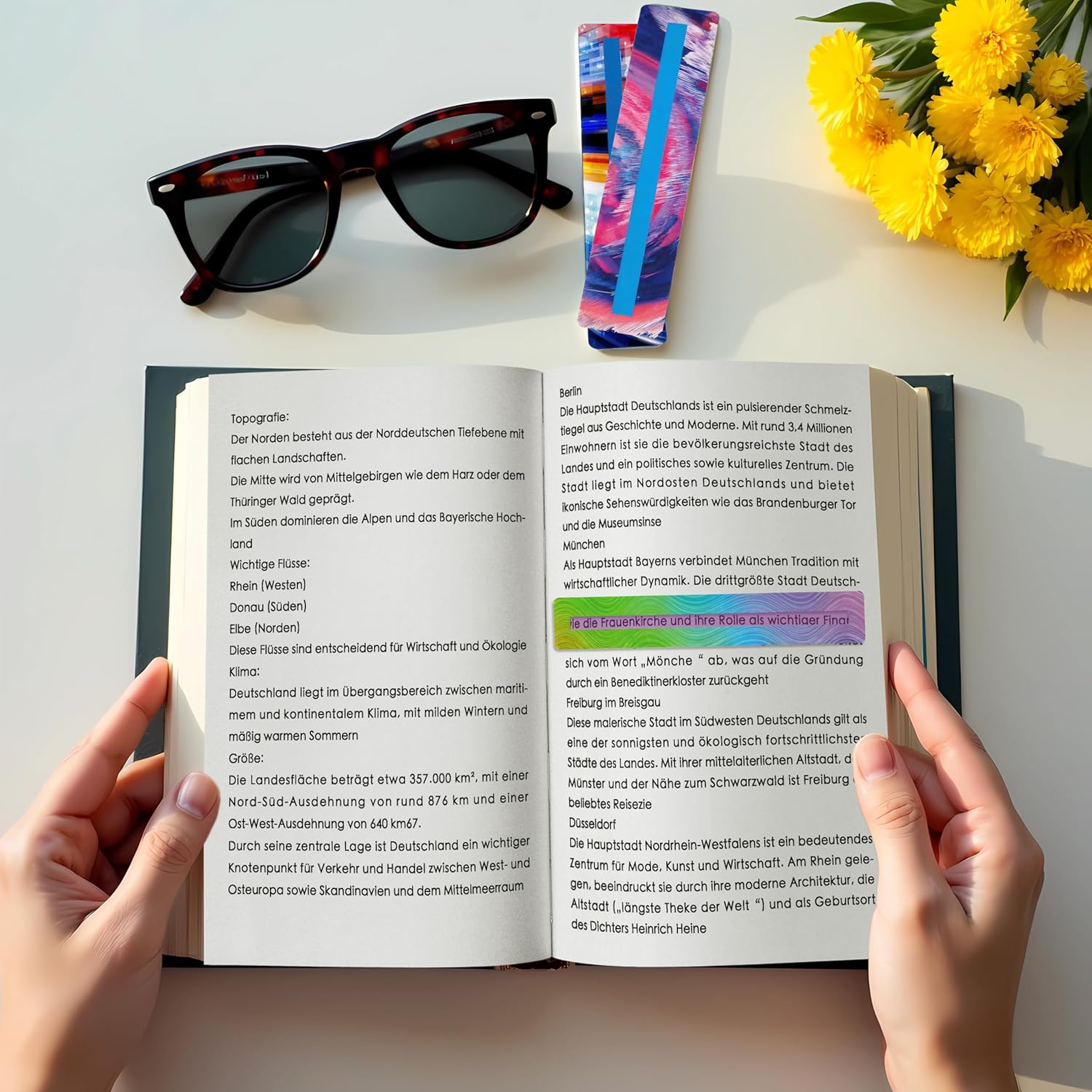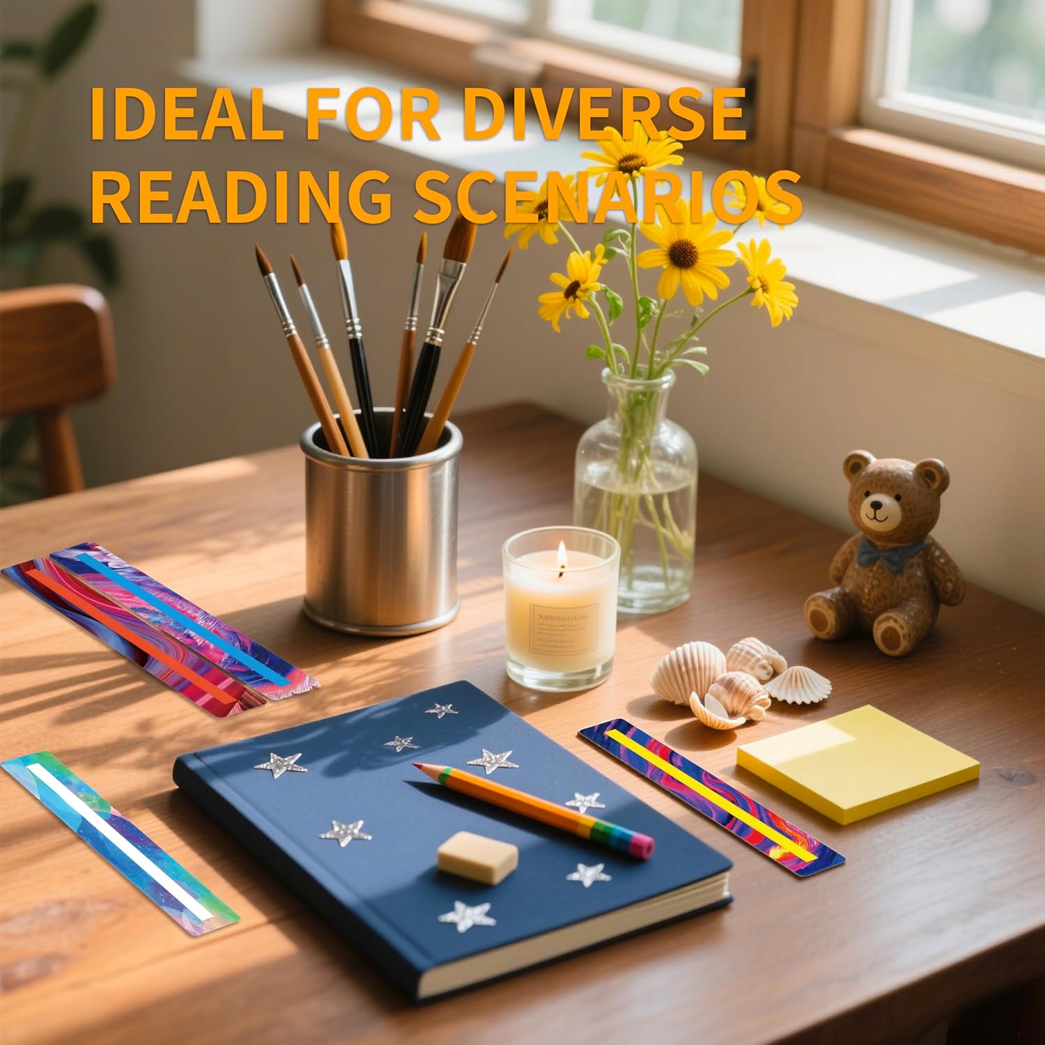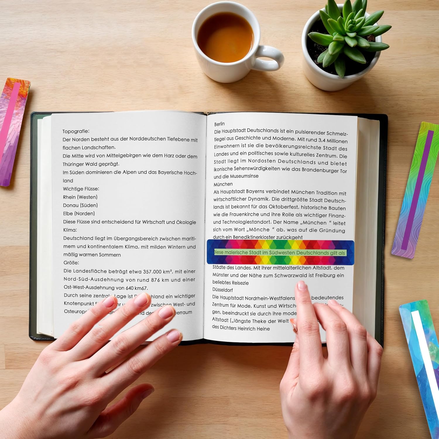 Ricca corrispondenza dei colori: questo righello da lettura per la scuola elementare include 7 colori vivaci, in modo che i bambini possano scegliere rapidamente in base alle loro preferenze o esigenze di lettura, rendendo l'apprendimento più divertente. Materiale di alta qualità: questo supporto per la lettura delle dita è realizzato in materiale PVC, flessibile e resistente alla piegatura, resistente all'usura e non facile da danneggiare. Non si deforma facilmente e non sbiadisce anche dopo un uso prolungato e può accompagnare i bambini a leggere per molto tempo. Funzioni multiple: questo strumento di lettura aiuta i bambini a leggere per riga, riduce il salto di righe e parole mancanti e migliora la concentrazione. Può anche fungere da comodo segnalibro per segnare i progressi della lettura e suscitare l'interesse dei bambini per la lettura, quindi la lettura non sarà più noiosa. Facile da usare: durante l'uso, i bambini devono solo tenere il righello da lettura con le dita, coprire il corpo del righello trasparente sopra il testo e muoversi riga per riga nel corso della lettura, e possono iniziare facilmente un viaggio di lettura concentrato. Ampiamente utilizzato: può essere utilizzato anche come aiuto per la lettura e segnalibro per aiutare i bambini a concentrarsi sulla lettura e può diventare un buon assistente per la lettura dei bambini.