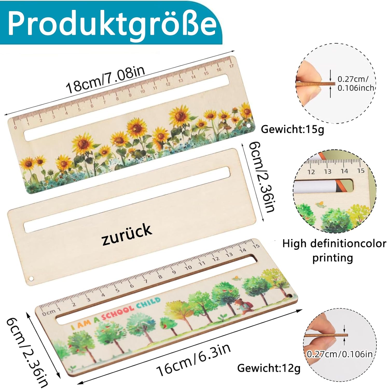 Il set include: il set contiene 3 segnalibri per bambini. Il righello personalizzato per l'inizio della scuola è uno strumento versatile per giovani studenti che può essere utilizzato come aiuto per la lettura, righello o segnalibro e regali significativi per la scuola. Righello in legno per bambini della scuola elementare: righelli personalizzati per bambini in legno con motivo (ad esempio pianeta, animali marini, girasoli). Regali per l'inizio della scuola per ragazze e ragazzi – ideale come sacchetto per la scuola per riempire idee per l'inizio della scuola! Dimensioni adeguate: con un regalo di 18 x 6 cm e uno spessore di 0,27 cm, questo segnalibro per bambini è un pratico strumento che si adatta facilmente alle mani del bambino. La larghezza del righello personalizzato per l'inizio della scuola è di 0,8 cm, in modo che i bambini possano concentrarsi più facilmente sul testo che stanno leggendo. Materiali di alta qualità: il nostro aiuto per la lettura per bambini di prima classe è realizzato in legno di alta qualità e garantisce così un uso duraturo. Il righello da lettura per bambini resiste al test dell'uso quotidiano da parte dei bambini e offre ai bambini un robusto strumento di apprendimento. Regali per l'inizio della scuola: i righelli da lettura per bambini sono una fantastica idea regalo per ragazzi e ragazze. In questo modo i regali per l'inizio della scuola rendono l'apprendimento a scuola molto più divertente!