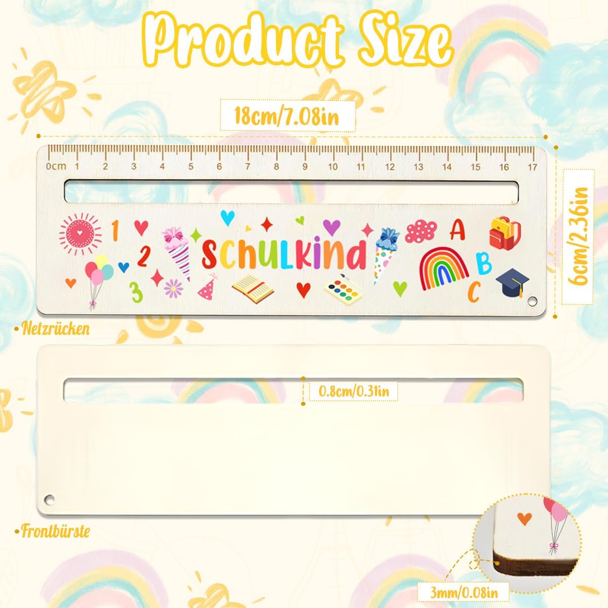 Lettura supportata: aiuta i bambini a sviluppare la giusta abitudine di lettura da sinistra a destra e riga per riga. I simpatici motivi a cartone animato attirano l'interesse e rendono la lettura più chiara e concentrata, così viene creata una solida base fin dall'inizio. Materiali di alta qualità: righello di lettura in legno massiccio accuratamente selezionato, levigato a mano, ecologico e dà ai bambini un'esperienza tattile naturale. Il righello da lettura della scuola elementare rinforzato rende il righello robusto e durevole. Design umanizzato: aiuto per la lettura personalizzabile, bordi arrotondati, senza spigoli vivi per evitare lesioni, comodo da tenere. Può essere facilmente messo in sacchetti di scuola o scatole di cancelleria per una comoda conservazione, come un pratico aiuto di lettura per i bambini. Pratico aiuto 2 in 1: aiuto per la lettura dei bambini di 1 classe utilizzabile come aiuto per la lettura e righello. Aiuto per la lettura dei bambini con scala precisa per misurare e segnare con precisione – un must have versatile per ragazzi e ragazze [Risposta rapida]----Il nostro team ti fornirà prodotti che puoi usare con fiducia e ti offrirà i migliori prodotti ai migliori prezzi. Se avete ulteriori domande, vi preghiamo di contattarci e vi daremo una risposta soddisfacente.