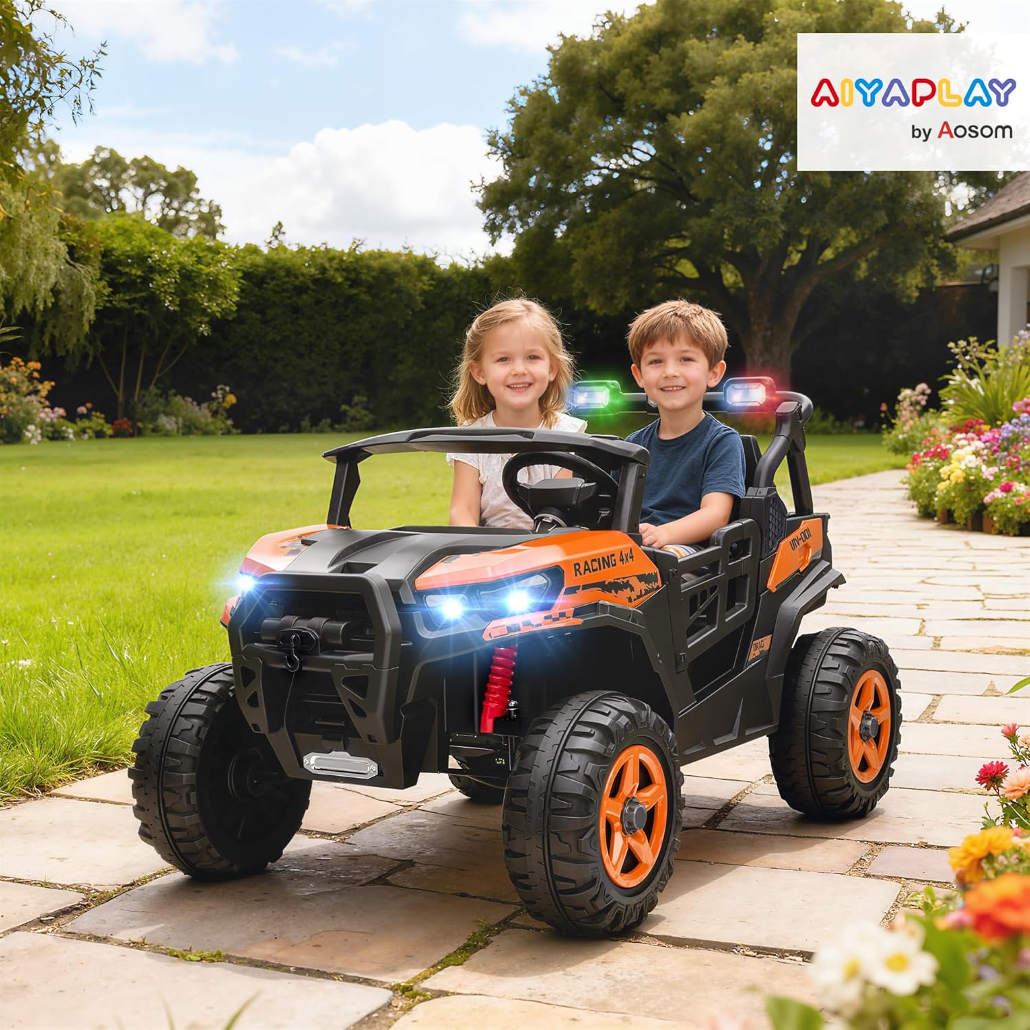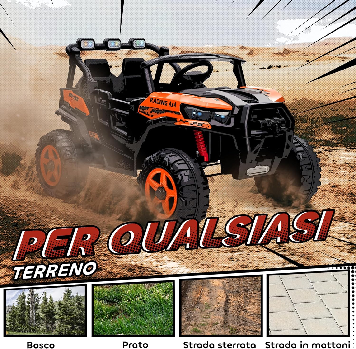 GUIDA POTENTE: Dotata di doppio motore 24V e una batteria ad alta capacità 24V 7AH, questa macchina elettrica per bambini si muove con facilità su erba e terreni boschivi. Con velocità regolabili tra 3 e 8 km/h, è ideale per avventure in giardino DOPPIO CONTROLLO: I genitori possono usare il telecomando 2.4G per controllare completamente la macchina elettrica a una distanza di 25 m o possono lasciare i bimbi liberi di guidarla in autonomia DESIGN A 2 POSTI: Il sedile largo 48 cm è adatto ad accogliere 2 bimbi, rendendo ogni viaggio sulla macchina elettrica per bambini perfetto per giocare e mettersi in viaggio verso tante avventure in compagnia GUIDA CONFORTEVOLE: La tecnologia di avvio lento e l'ammortizzazione posteriore della macchina per bambini elettrica assicurano un viaggio fluido, supportando i tuoi piccoli nello sviluppo dell'indipendenza in sicurezza su diversi tipi di strada GIOCO IMMERSIVO MULTIFUNZIONE: Dotata di 5 melodie preinstallate, un clacson realistico e fari brillanti, la macchinina per bambini si trasforma in un'avventura magica e ricca di fantasia per bambini da 3 a 8 anni