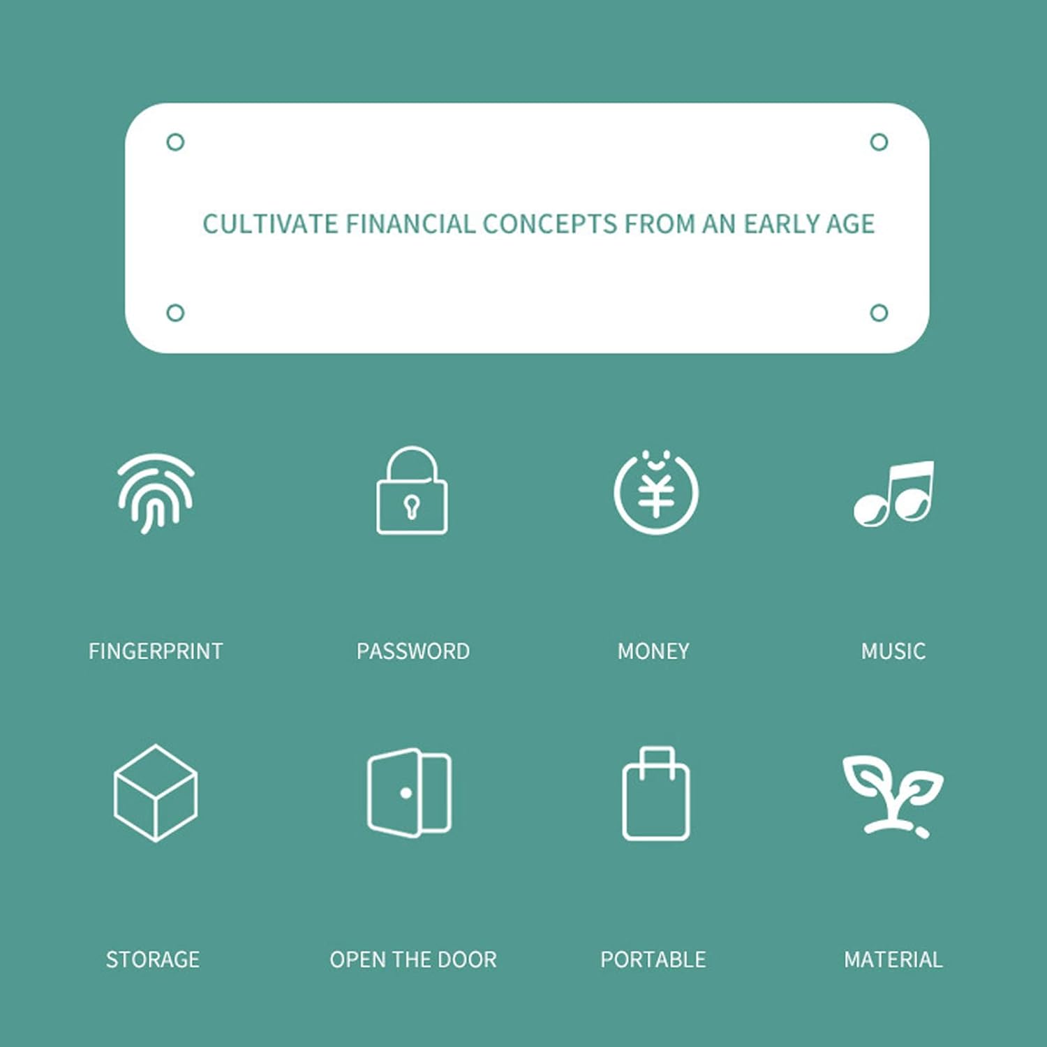 Esperienza di risparmio interattivo: la scatola di risparmio di denaro per bambini presenta un meccanismo di rollio manuale in cui i bambini possono inserire fisicamente i soldi della carta in banca ruotando la ruota annessa. Questa attività pratica non rende il risparmio di denaro, ma coinvolge anche giovani menti, permettendo loro di comprendere il concetto di salvataggio fin dalla tenera età. Il delizioso design dei cartoni animati aggiunge un elemento di eccitazione per i bambini, incor Caratteristiche di sicurezza avanzate: questa banca di monete garantisce che i risparmi dei bambini siano sicuri con il suo a doppia protezione, che include sia scanner di impronte digitali che un input di password. La password predefinita di 0000 può essere facilmente modificata per proteggere i loro fondi. Quando viene inserita l'impronta digitale o la password corretta, la porta della banca si apre automaticamente, insegnando alla responsabilità dei bambini in merito alla sicurezz Educativo e divertente: il design unico e le caratteristiche interattive della banca del denaro insegnano ai bambini preziose abitudini finanziarie mentre li intrattengono. Promuove una comprensione precoce della gestione bancaria e di risparmio attraverso implicazioni vocali che li guidano attraverso ogni interazione. La musica dinamica incorporata si aggiunge all'esperienza, rendendo il risparmio di denaro un'attività piacevole piuttosto che una faccenda. Design intuitivo: con una configurazione facile da seguire, i bambini possono imparare rapidamente a gestire questa banca elettronica di monete. I comandi vocali semplificano l'utilizzo, fornendo istruzioni utili durante il processo di salvataggio. Inoltre, la capacità di passare tra cinese e inglese migliora ulteriormente l'accessibilità, rendendolo strumento ideale per le famiglie bilingue o per coloro che vogliono introdurre un' lingua ai loro figli. Risparmio spaziale e compatto: misurando circa 13 x 11,5 x 19,5 cm, questa scatola di risparmio di denaro è progettata per essere compatta ma abbastanza spaziosa da contenere una quantità significativa di monete e fatture. È un'ottima aggiunta alla stanza di ogni bambino, incoraggiando un deposito pulito mentre sono divertenti giovani risparmiatori. Questa innovazione non mantiene i loro soldi organizzati, ma aggiunge anche un elemento educativo alle faccende domestiche.