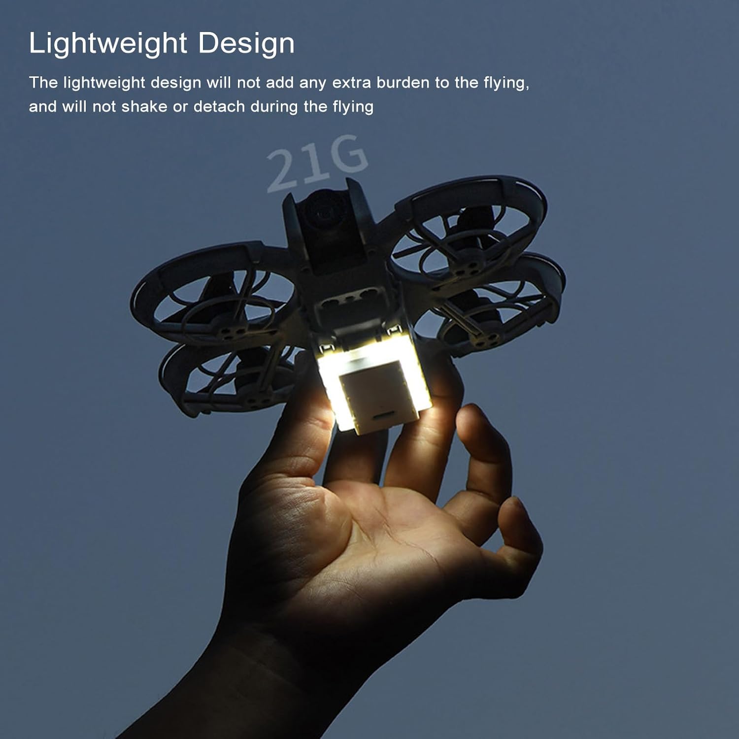 [Design leggero] Supporta stabilmente il tuo drone senza aggiungere ulteriore peso, prevenendo scuotimento o distacco durante il volo. [Sicurezza avanzata] Sperimenta una forza di impatto ridotta durante l'atterraggio con drone rialzato da 10 mm. Guarda la batteria e assicurati l'atterraggio sicuro. [Batteria di lunga durata] Goditi 60 minuti di utilizzo dopo una carica di 40 minuti. Dì addio a frequenti interruzioni di ricarica. [Easy Attachment] Il design a scatto rende il collegamento al neo drone senza sforzo. [Luce notturna luminosa] Illumina l'ambiente circostante migliore visibilità durante il volo notturno, i decolli e gli atterraggi.