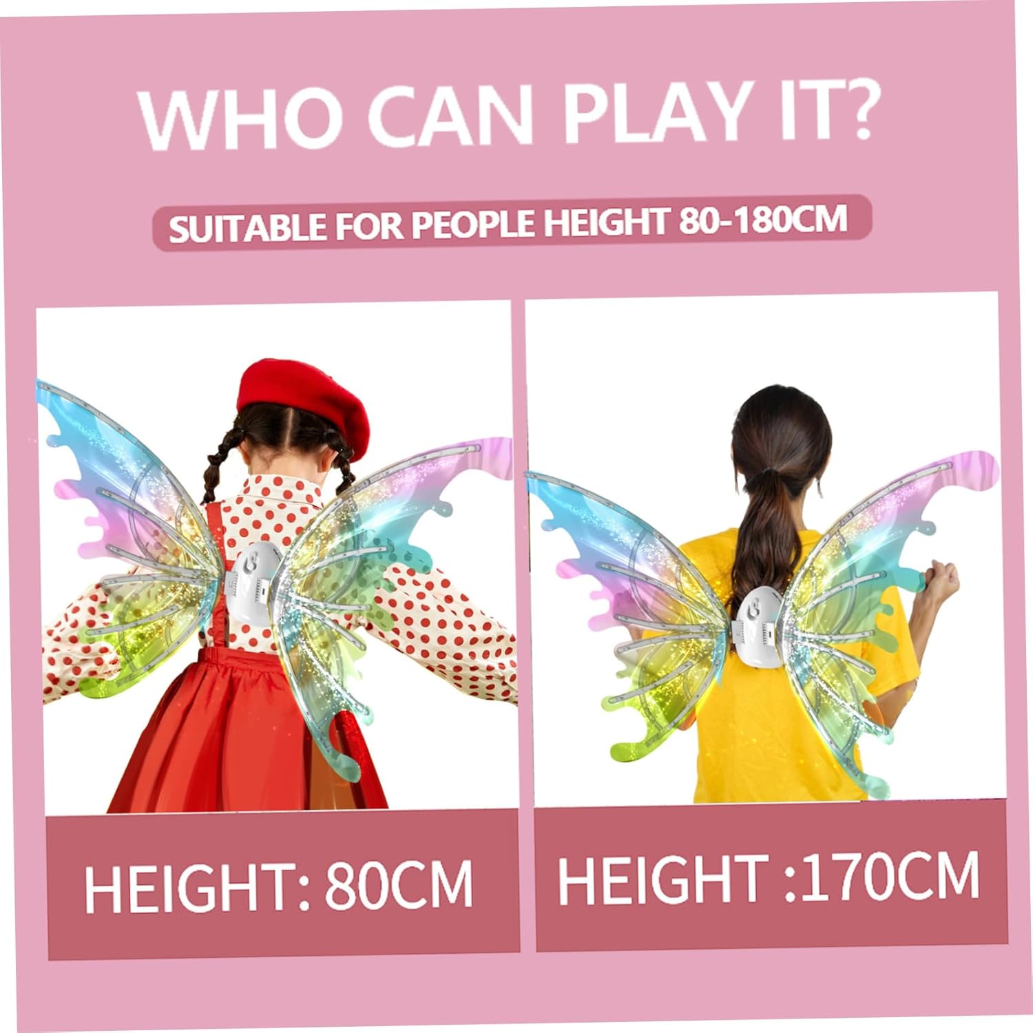 Facile da installare: il set Butterfly Wing è facile da installare e viene fornito con tutti i componenti necessari, inclusi zaino, ala, cinghie, luci LED e istruzioni..L'ala può essere facilmente fissata allo zaino e le luci a LED possono essere accese premendo un pulsante. Perfetto per varie occasioni: il set Butterfly Wing è perfetto per varie occasioni come Halloween, San Valentino, Natale, feste di compleanno e altro ancora..È fantastico per i bambini che amano travestirsi e giocare a fingere. Luci a LED e musica: il set Butterfly Wing è dotato di elettriche che illuminano con luci a LED e riproducono musica, rendendolo un'aggiunta perfetta a qualsiasi festa o evento in costume..Le luci e la musica aggiungono un tocco di divertimento ed emozione ad ogni occasione. Design con cinturino regolabile: il set Butterfly Wing presenta un design con cinturino regolabile che consente una vestibilità comoda e sicura per bambini di diverse dimensioni..Le cinghie possono essere facilmente regolate per adattarsi alle spalle del bambino, assicurando che l'ala rimanga in posizione mentre gioca. Materiali affidabili: il set Butterfly Wing è realizzato con materiali plastici robusti e durevoli..L'ala è realizzata con materiali leggeri, facili da indossare e da spostare, mentre lo zaino è robusto e può tenere saldamente l'ala.