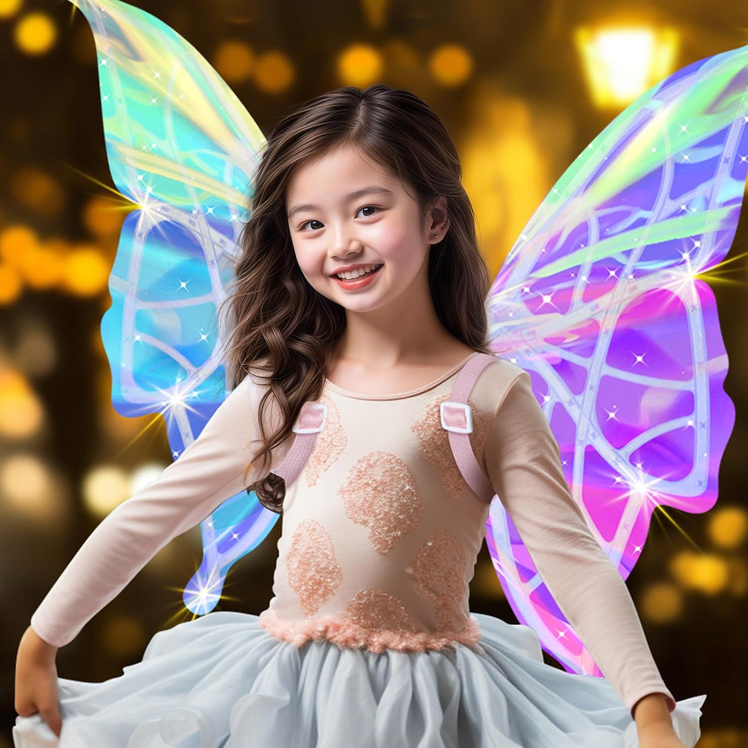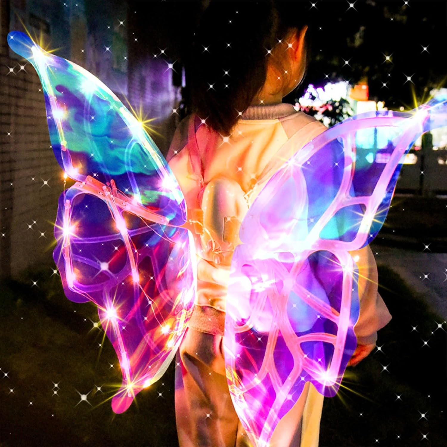 Illumina la notte con l'ala delle fate a LED con luci cangianti e musica che cambiano colore, utilizza ABS selezionato per il massimo comfort durante l'uso prolungato Ideale per eventi di Halloween, feste di Natale o eventi di compleanno a tema principessa, l'ala luminosa trasforma i bambini in incantevoli centrotavola sotto vari eventi L'ala fata con un semplice design di attivazione per effetti luminosi rapidi e facile da usare, ideale per trasformazioni rapide dei costumi Un magico appassionato di giochi di finzione, questa ala di farfalla luminosa combina creatività e durata, rendendolo un elemento distintivo tra il giocattolo a LED e il costume da travestimento Design per ragazze dai 3 anni in su e per bambini fantasiosi, questo giocattolo a forma di ala di fata migliora l'avventura del gioco di ruolo fornendo una vestibilità sicura e confortevole per varie occasioni