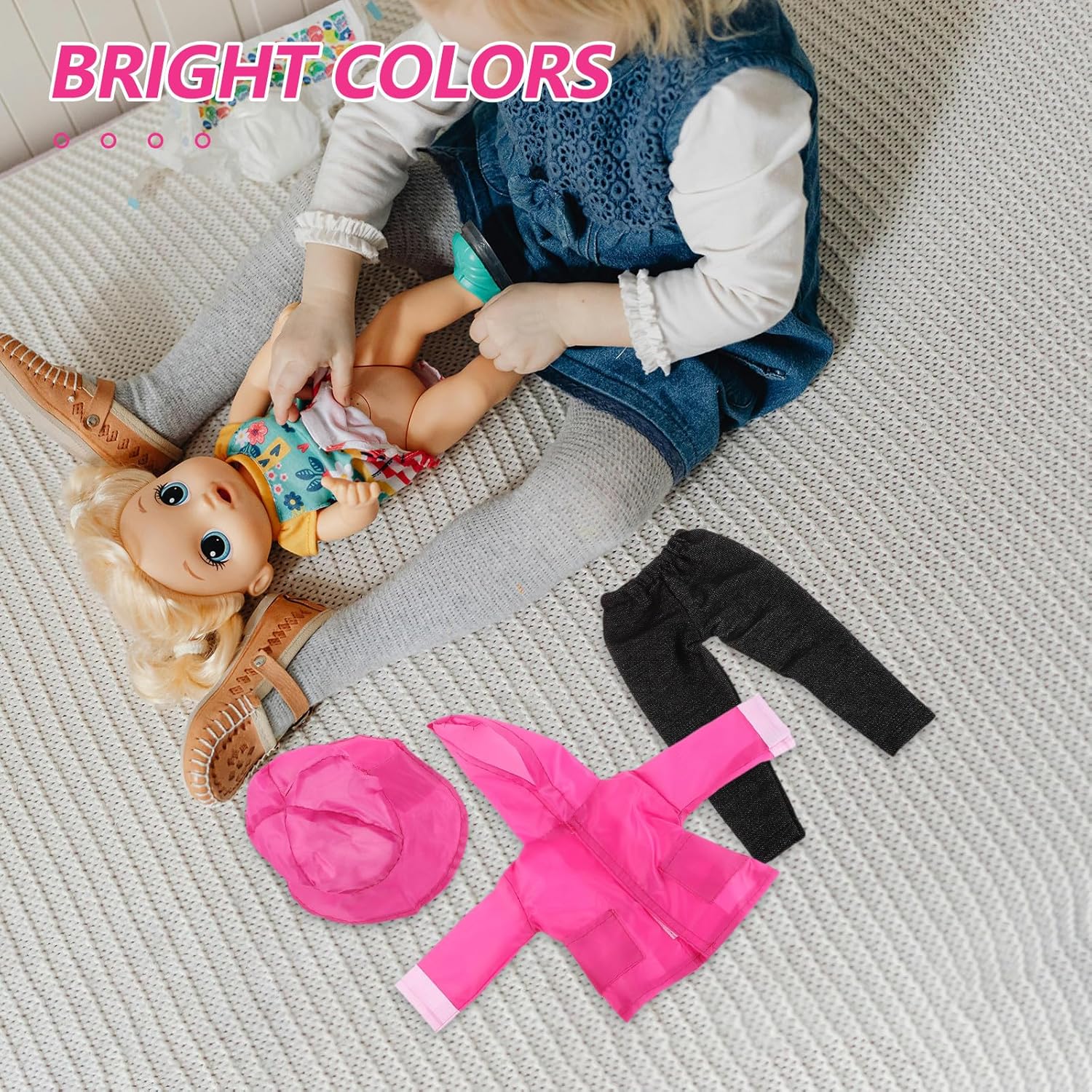 Stili versatili da abbinare e mixare: combina i vestiti del guardaroba per bambole, il set di vestiti alla moda per bambole e il cappotto invernale per bambole per look di abbigliamento per bambole da 18 pollici adatti a tutte le stagioni e occasioni di gioco Simulazione realistica di una giornata piovosa: il set di impermeabile e pantaloni per bambole, il cappotto impermeabile per bambole e il cappello antipioggia per bambole offrono autentiche esperienze di abbigliamento per bambole per una giornata piovosa, migliorando il gioco di ruolo dei bambini Maggiore praticità nel vestirsi: vestiti di ricambio per bambole come la giacca con cappuccio e i vestiti per bambole facili da indossare e togliere consentono ai bambini di cambiare abiti senza aiuto, rafforzando l'indipendenza e la sicurezza Accessori da gioco portatili: il set di giacca, pantaloni e cappello per bambole è leggero, rendendo questi pezzi di abbigliamento per bambole da gioco facili da trasportare per viaggi o vacanze con la tua bambola preferita da 18 pollici Promuove la creatività e l'interazione: incoraggia il gioco collaborativo e la creatività con abiti per bambole da abbinare e accessori per abiti da bambola da 18 pollici, ispirando stili unici e momenti di