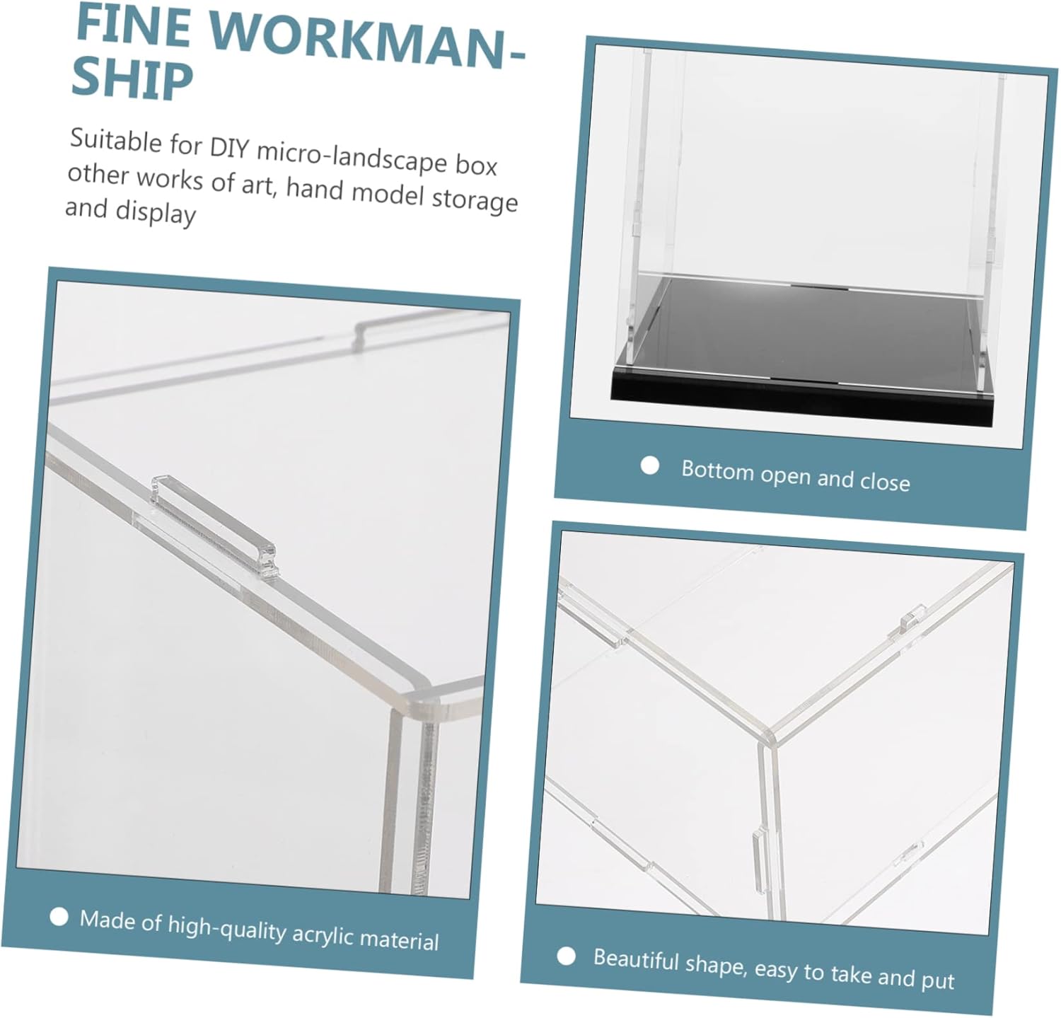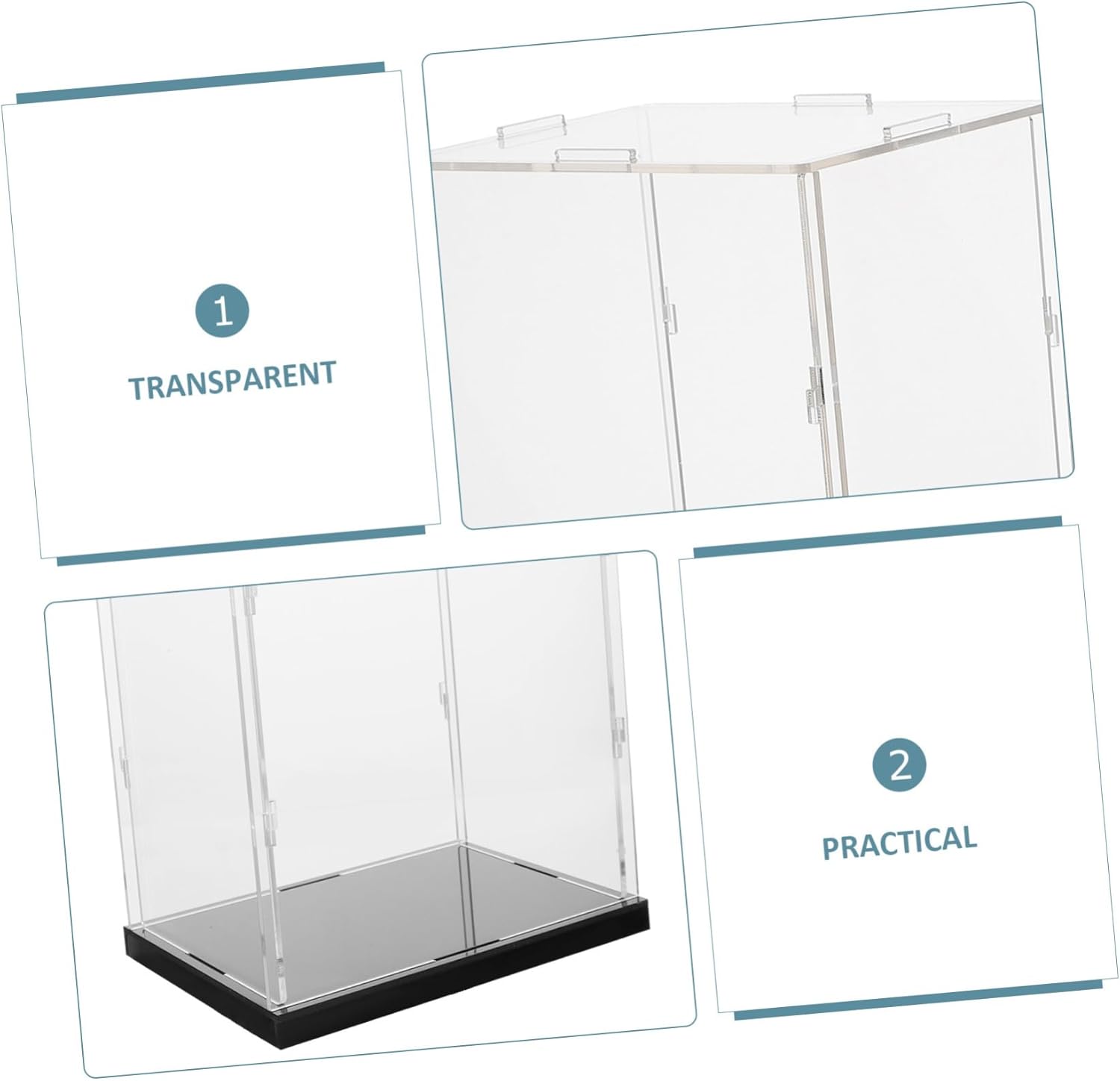 Vetrina: molto adatta per personaggi, bambole, statue, modelli 3d, campioni di prodotti, oggetti da collezione, custodia in acrilico trasparente. Giocattolo: adatto a casa, ufficio, negozio e così via, vetrina per gioielli. Vetrina acrilica: il design altamente trasparente ti offre un'esperienza di apprezzamento confortevole, supporto chiaro. Vetrina da tavolo: realizzata in materiale acrilico di alta qualità, molto robusta e con supporto in miniatura. Vetrina per figure: materiale acrilico liscio, facile da pulire e riporre, vetrina in acrilico trasparente.