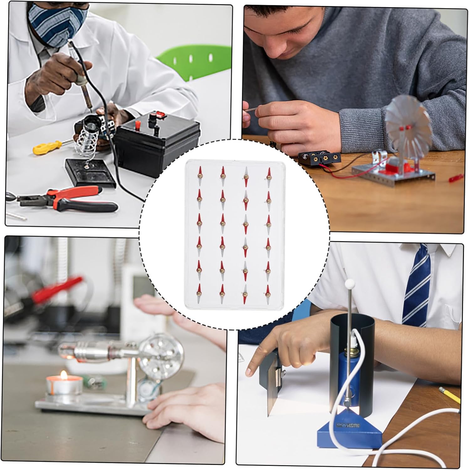Dispositivo: promuove la comprensione concettuale e le proprietà dei giocattoli del campo magnetico Lavagna magnetica: costituisce una solida base per l'insegnamento della fisica, set per l'apprendimento della fisica per l'elettromagnetismo Magnetismo: attraverso l'uso pratico degli aghi magnetici, gli studenti possono interagire fisicamente con i modelli del campo magnetico, giocattoli educativi Giocattoli sperimentali: promuove la curiosità e l'esplorazione del magnetismo, piastra magnetica Magnete per esperimenti scientifici: adatto per insegnare agli studenti delle scuole medie i concetti e i principi del magnetismo nel set per l'insegnamento della fisica, magnetismo