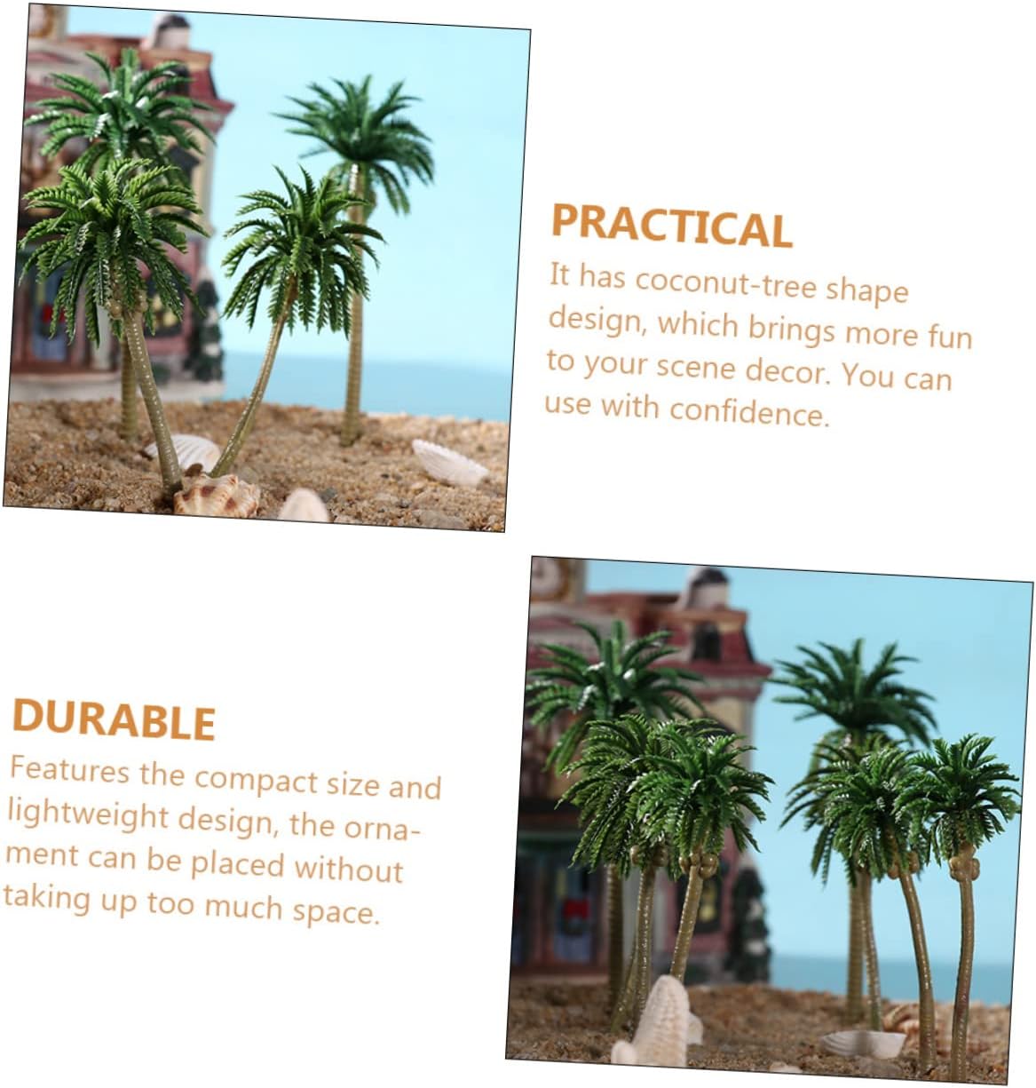 Mini alberi: può essere applicato a lungo e il design delicato e i dettagli realistici possono rendere il tuo modello in miniatura , alberi da tavolo di sabbia Micro alberi paesaggistici: ha un design a forma di albero di cocco, che rende più divertente l'arredamento della tua scena, puoi usare con sicurezza, modelli di alberi in plastica Statue di cocco: comode al tatto, non sbiadite, non facili da deformare, un servizio a lungo termine assicurato per te, alberi di plastica Modelli di mini alberi: realizzati principalmente in materiale plastico pregiato, l'ornamento per modellare l'albero è delicato e durevole, sicuro da usare, alberi modello Modelli di piccoli alberi: ampiamente utilizzati, adatti per tavoli di sabbia, micro paesaggi, fatati, modellini ferroviari, ecc., alberi in miniatura