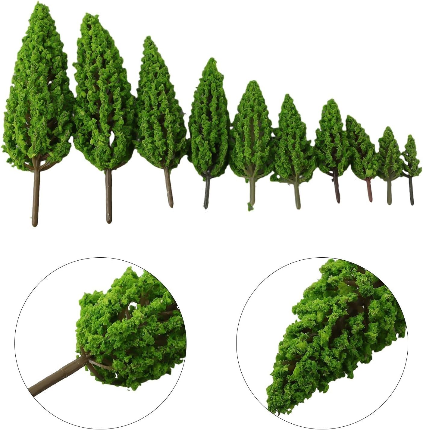 Design realistico: questi alberi modello sono progettati per essere altamente realistici e possono replicare perfettamente l'aspetto dei pini. Sono per creare paesaggi realistici per modellini di treni, ferrovie, diorami, giochi di guerra e altro ancora. Utilizzo: non solo per la realizzazione di modelli, ma anche per la decorazione del paesaggio. Questi alberi possono aggiungere un tocco di bellezza naturale al paesaggio del tuo parco, ai diorami e ad altri progetti in miniatura. 【e 】Realizzati in plastica, questi alberi modello sono e . Sono sicuri da usare e possono resistere a manipolazioni e usi regolari. Varie dimensioni: il set include 10 alberi modello di diverse altezze che vanno da 8 cm a 16 cm. Questa varietà consente di creare un paesaggio più diversificato e realistico. Ogni albero è meticolosamente realizzato con precisione e dettaglio. Facili da usare: questi alberi modello sono pronti per l'uso direttamente dalla confezione. Posizionali nella posizione desiderata e miglioreranno immediatamente l'attrattiva visiva del tuo diorama ferroviario, del parco di wargame o del paesaggio paesaggistico.