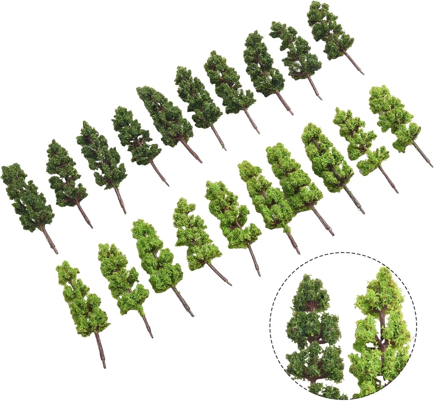 Materiali di alta qualità: realizzati con materiali di alta qualità, questi alberi modello sono sicuri, ecologici e di lunga durata. Simulazione realistica: con squisita fattura e alto effetto di simulazione, questi alberi modellini fatti a mano offrono uno scenario realistico e visivamente accattivante per le ferrovie dei treni o i paesaggi modellini. Migliora il paesaggio del tuo modello: questi alberi verdi aggiungono un tocco di verde per migliorare l'aspetto del tuo paesaggio modello, rendendolo più vivace e realistico. Decorazione versatile: perfetti per binari del treno o oggetti di scena per modellismo, questi alberi modello possono essere utilizzati anche come decorazioni per case, scrivanie, soggiorni, cucine, ecc. Possono anche essere regalati ad amici, colleghi o compagni di classe. Ampia applicazione: adatto per vari scopi come modelli di costruzione, modelli di treni, layout di scena, paesaggistica all'aperto, materiale didattico per studenti e molto altro ancora. Questi alberi modello sono versatili e possono essere utilizzati in diversi ambienti.
