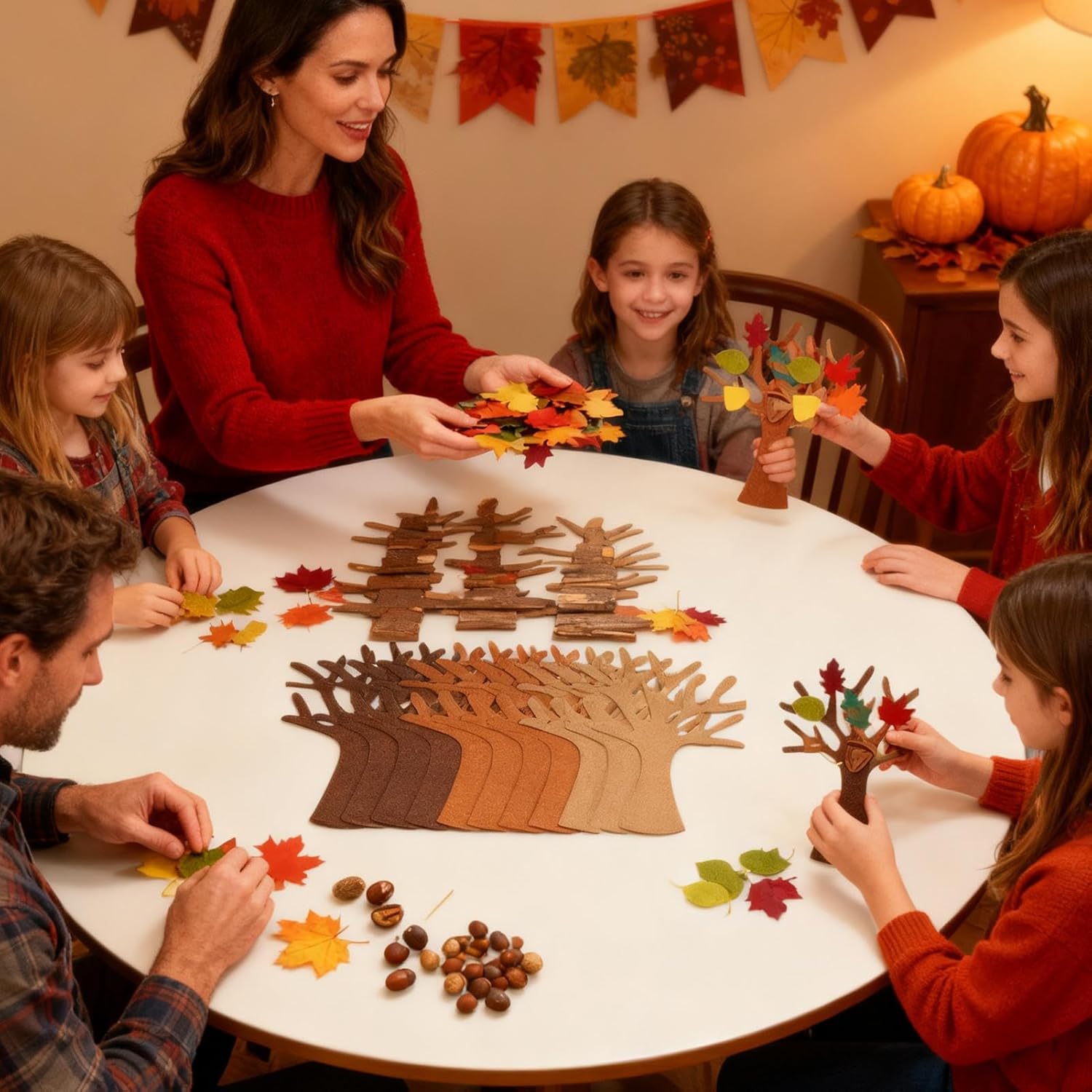 Incantevole decorazione del raccolto: il set per bricolage in feltro include disegni perfetti per la decorazione autunnale e per decorare il soggiorno festivo e la decorazione della casa stagionale con dettagli ben studiati. Questi elementi affascinanti celebrano lo spirito dell'autunno in ogni angolo e donano alla tua casa un carisma armonioso e accogliente. La decorazione della collezione crea un'atmosfera elegante che esalta il calore e il fascino dell'autunno in tutte le stanze. Aiuto per la coordinazione occhio-mano: con il kit Felt Tree, i giovani utenti possono praticare le loro abilità artigianali e acquisire nuove tecniche. Supporta la crescita sviluppata attraverso attività artigianali ben strutturate e fantasiose che favoriscono la coordinazione occhio-mano. Ideale per lo sviluppo del bambino, per migliorare le capacità motorie e la creatività in modo divertente. Realizza progetti creativi: progettato per gli appassionati di artigianato, questo kit fai da te è caratterizzato da vivaci forme di feltro e una selezione di fogli di feltro che stimolano progetti fantasiosi. Migliorano le capacità di bricolage e portano gioia in ore di artigianato rilassate, ideali per gli hobbisti per aumentare la loro creatività. Infinite possibilità di bricolage per tutti: il set di feltro presenta 96 elementi con foglie in diversi colori e forme e apre opzioni creative illimitate per oggetti artistici personalizzati, decorazioni per la casa o accessori per feste a tema. Promuove la creatività di bambini e adulti nel tempo libero o durante le attività di artigianato di gruppo e supporta la creazione di oggetti unici per ogni occasione. Regalo premuroso per insegnanti: un set di albero in feltro fai da te combina creatività con un uso caldo e offre un esclusivo fatto a mano. Adatto per educatori, familiari o occasioni speciali come feste autunnali, arricchisce le relazioni attraverso attività artistiche congiunte. Questo regalo perfetto rafforza le connessioni e lascia impressioni durature.