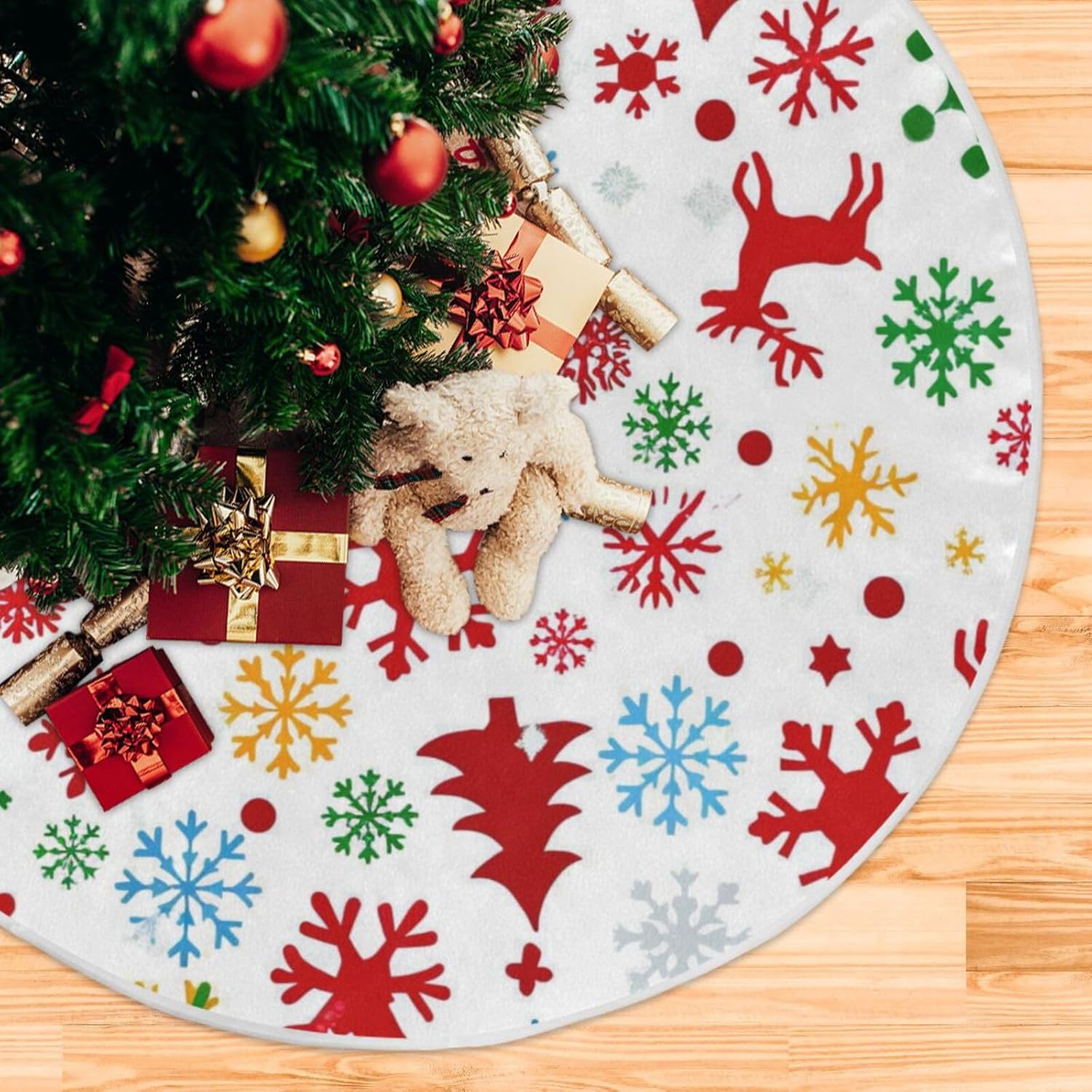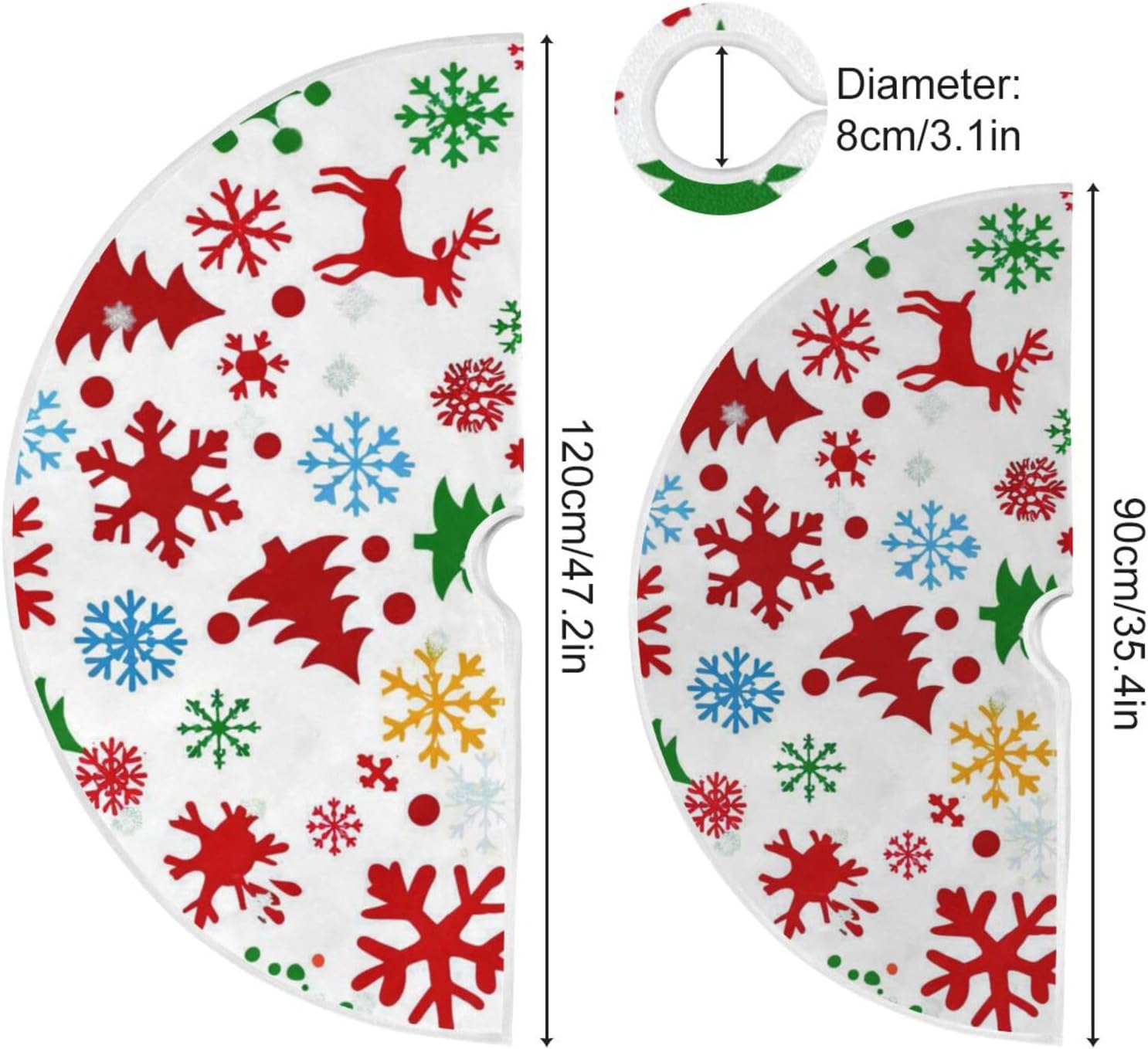 Dimensioni: 36", 48" Se la gonna dell'albero di Natale presenta un problema di qualità, contattaci immediatamente. Gonna per albero di Natale, panno abrasivo morbido al 100%, poliestere, tocco confortevole, dona un'atmosfera calda e festosa alla tua decorazione natalizia. Il robusto tappetino per albero di Natale può essere riutilizzato molte volte. 【Ampio utilizzo】 Ottima decorazione dei tuoi alberi delle vacanze per uso interno ed esterno. Puoi usare la gonna dell'albero di Natale a casa, soggiorno, cortile, scuola, negozio, ufficio, bar, hotel, supermercato, ristorante, ecc. Meravigliosa decorazione per gli alberi delle feste del tuo festival (Halloween, Giorno del Ringraziamento, Natale, San Valentino, ecc.). Ottima scelta anche per cosplay, cerimonie annuali, eventi della comunità, saldi, promozioni, spettacoli teatrali, decorazioni per feste. Facile da usare: la gonna per albero di Natale con design a 3 cinghie rende più facile l'installazione e più solida, decora rapidamente l'albero di Natale. Pieghevole e riutilizzabile. MULTIUSO: Per le decorazioni dell'albero di Natale a casa, a scuola, in negozio, in ufficio, in hotel, al supermercato, ecc. Puoi acquistare la gonna per albero di Natale come regalo perfetto per la tua famiglia o usarla come decorazione per il tuo Natale.