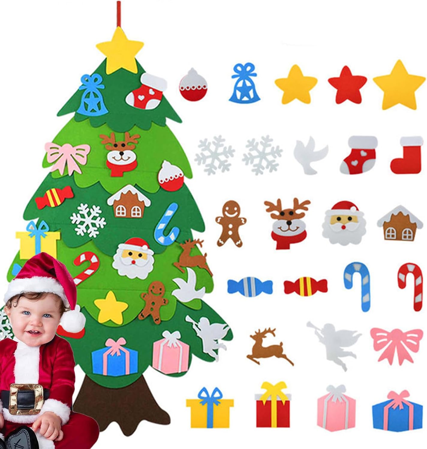 Divertimento per le vacanze: prova la gioia di progettare il tuo albero di Natale in feltro, permettendoti di mostrare creatività e riflettere il tuo gusto distinto senza sforzo Attività familiare coinvolgente: goditi la versatilità di organizzare il tuo albero di Natale in feltro come desideri, mentre le decorazioni rimovibili aumentano l'interattività e il divertimento, per un modo significativo per migliorare il legame familiare Ottimo regalo per bambini: l'albero di Natale in feltro si distingue come un sorprendente regalo festivo per i bambini, raddoppiando come affascinante decorazione per feste di Natale, creando momenti memorabili attraverso il suo design giocoso e migliorando l'atmosfera delle vacanze senza sforzo Sviluppo delle abilità: costruisci il riconoscimento dei colori, migliora la destrezza motoria fine e migliora le abilità tattili pratiche con questo albero di Natale in feltro, offrendo un modo coinvolgente per combinare valore divertente ed educativo per i giovani studenti durante le attività a tema natalizio Il comfort incontra la sicurezza: realizzato in morbido feltro che non irrita la pelle dei bambini, garantendo un'esperienza di gioco sicura e confortevole mentre viene cucita saldamente per una maggiore durata