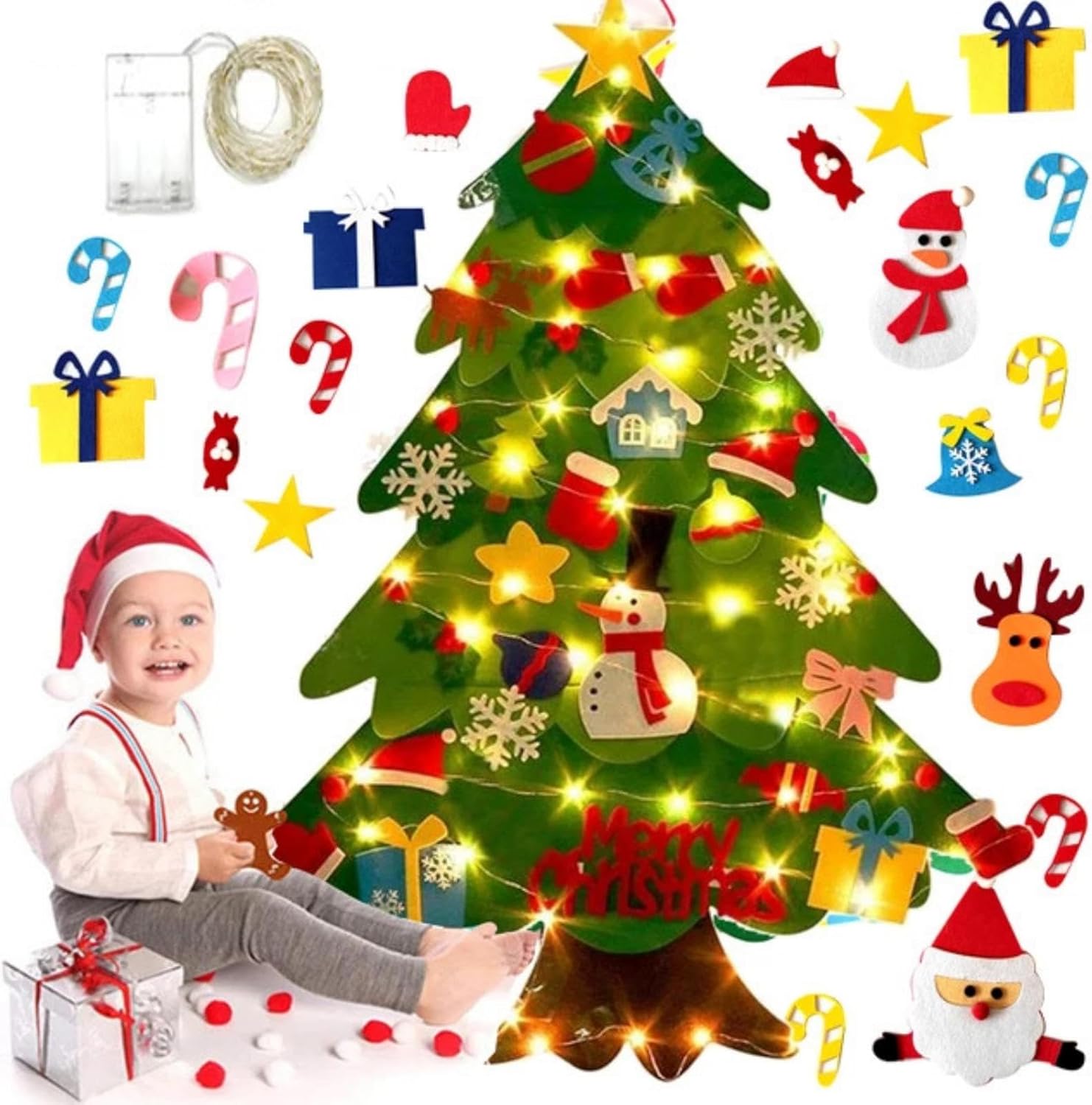 Pacchetto Festivo Completo: Questo Set Albero di Natale in Feltro include tutto il necessario per decorare, dalle luci a batteria a quaranta ornamenti staccabili distintivi. Assicura la creazione di un'ambiente invitante con semplicità, per abbellire la casa durante la stagione natalizia. Grazie alla sua completezza, è pronto all'uso e adatto per tutte le età, consentendo di realizzare composizioni festive senza ulteriori acquisti o aggiuntivi. Accessorio Festivo Leggero: L'albero di Natale in feltro fai da te è realizzato per essere portatile e leggero, consentendo un trasporto seamless da un luogo all'altro. È ideale per il gioco creativo a casa o in ambienti tivi durante le festività. Grazie alla sua facilità di spostamento, i bambini possono portare la magia del Natale ovunque, arricchendo le loro esperienze festive con momenti di fantasia e apprendimento. Gioco Creativo e Sicuro: Grazie al feltro sicuro per bambini e al di fissaggio affidabile, questo albero di Natale in feltro incoraggia l'espressione creativa durante la decorazione, offrendo un modo sicuro ma coinvolgente per i bambini di celebrare le feste con famiglia o amici anno dopo anno. La combinazione di sicurezza e creatività promuove un'esperienza di gioco divertente ed , i piccoli possono sviluppare la loro immaginazione in un ambiente protetto, ideale per tradi Attività Divertente: Progettato per giovani apprendisti, il set di albero di Natale in feltro fai da te combina divertimento natalizio con sviluppo di abilità, permette ai bambini di esplorare colori, forme e schemi, ideale per esplorazione creativa durante le celebrazioni, un gioco che e intrattiene con attività hands-on che stimolano la curiosità e l'apprendimento pratico in modo festoso e coinvolgente per ore di svago. Montaggio Rapido e Semplice: L'albero di Natale in feltro per bambini offre un design con montaggio veloce, permettendo a utenti di tutte le età di assemblarlo senza sforzo, migliorando la praticità durante le riunioni festive o i progetti di decorazione domestica, assicurando opzioni di posizionamento versatili per feste e ambienti familiari, ideale per decorazioni natalizie facili e intuitive.
