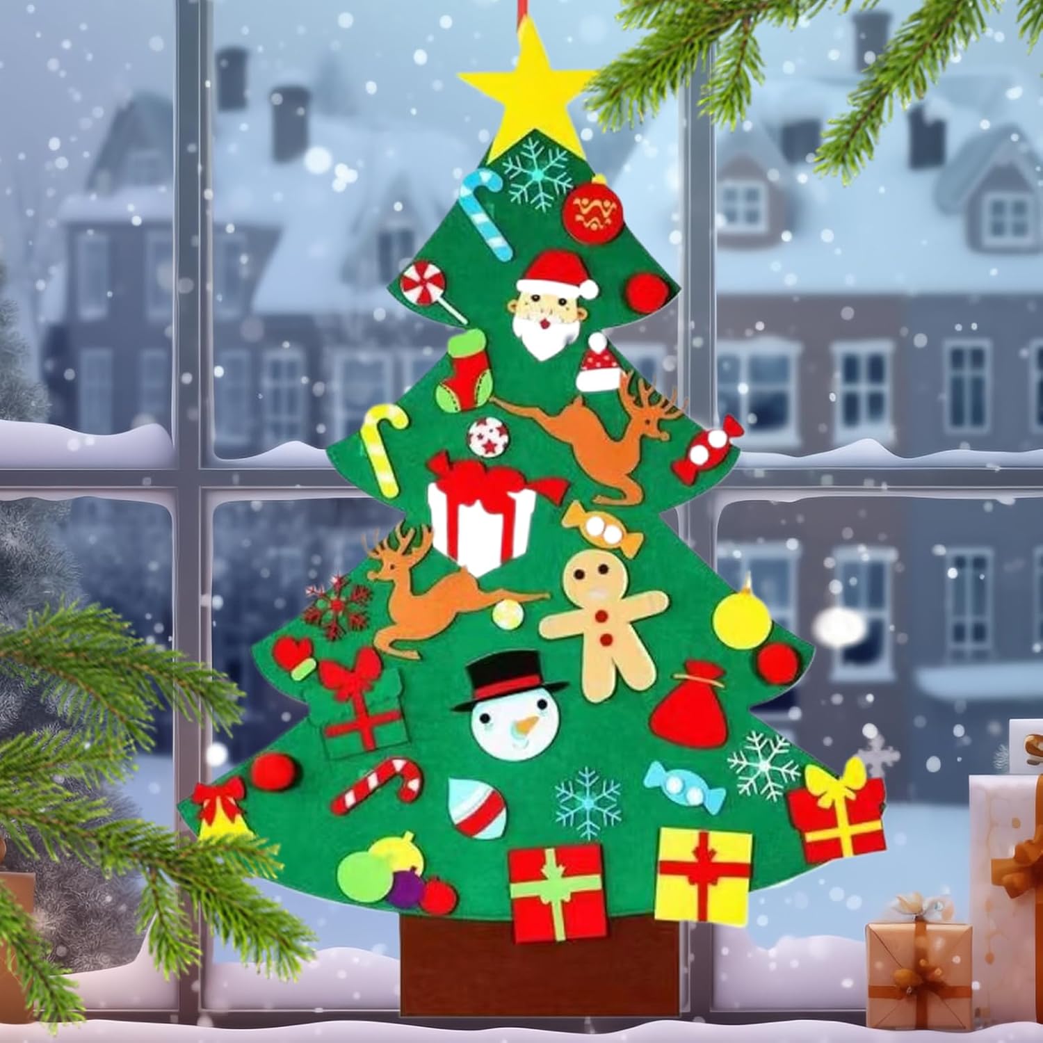 Feltro Solido: Design anti-deformazione e materiale in feltro di qualità rendono questa decorazione natalizia fonte di gioia continua, perfezionando le tue tradizioni festive con un tocco di calore e eleganza per ogni celebrazione Decorazione : Ideale per le celebrazioni di Natale e Capodanno, include adesivi e decorazioni per un tocco festivo , senza bisogno di aggiuntivi per valorizzare la tua casa con atmosfera natalizia in modo semplice e immediato Utilizzo Pratico:Design con adesivo resistente per applicazione rapida su varie superfici, garantisce tenuta sicura e rimozione senza lasciare , per ambienti domestici e spazi gioco Porta Divertimento: Inizia la gioia e il calore natalizio decorando questo albero di Natale in feltro, una perfetta attività di genitore figlio che incoraggia la creatività e stimola le abilità manuali attraverso il suo processo decorativo interattivo, ideale per momenti familiari festivi Festa Colorata: Genera un'atmosfera calda e romantica con colori vibranti e delicati, perfetta per le decorazioni natalizie in casa, in ufficio o all'asilo aggiungendo gioia e allegria ad ogni ambiente
