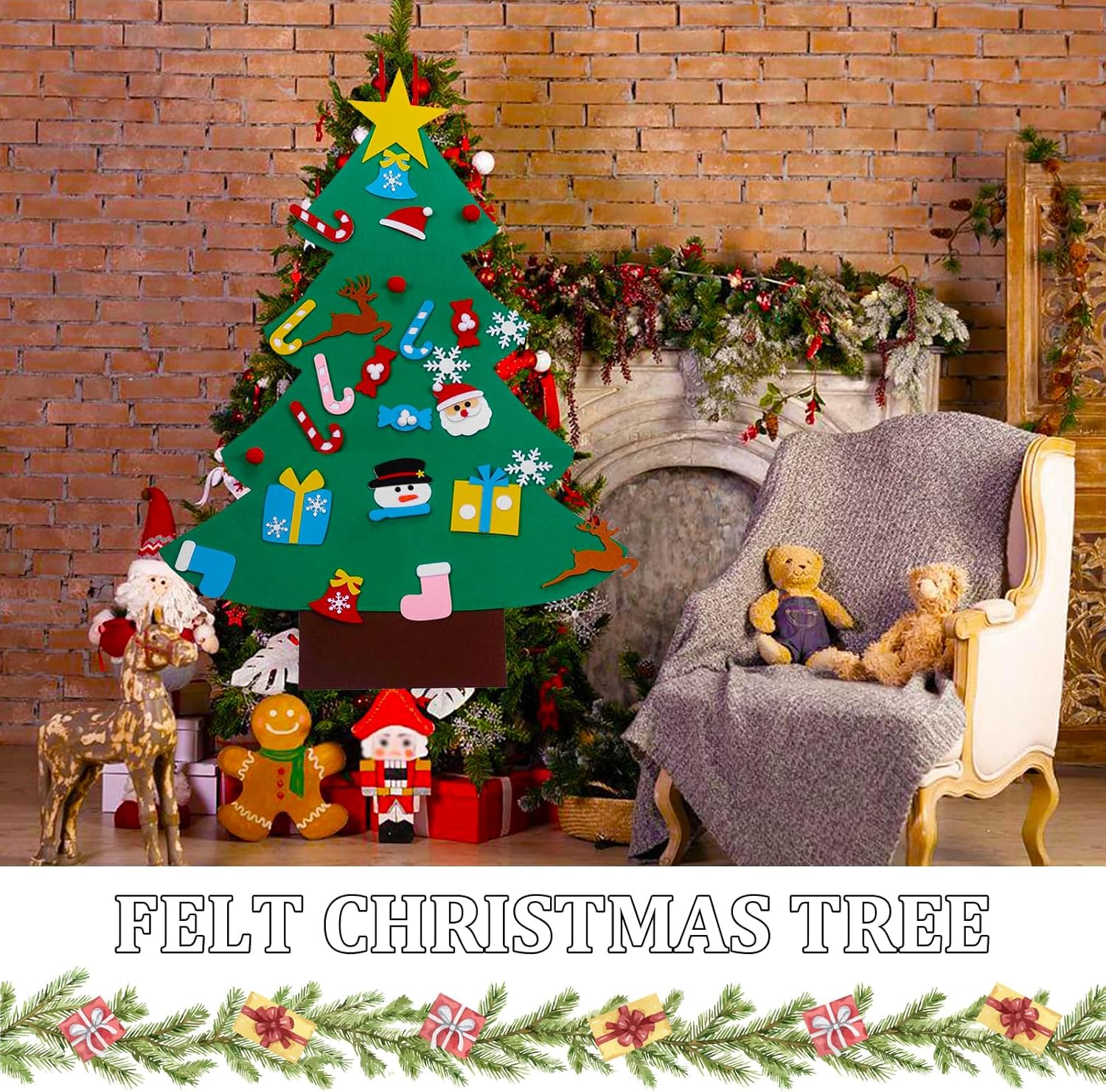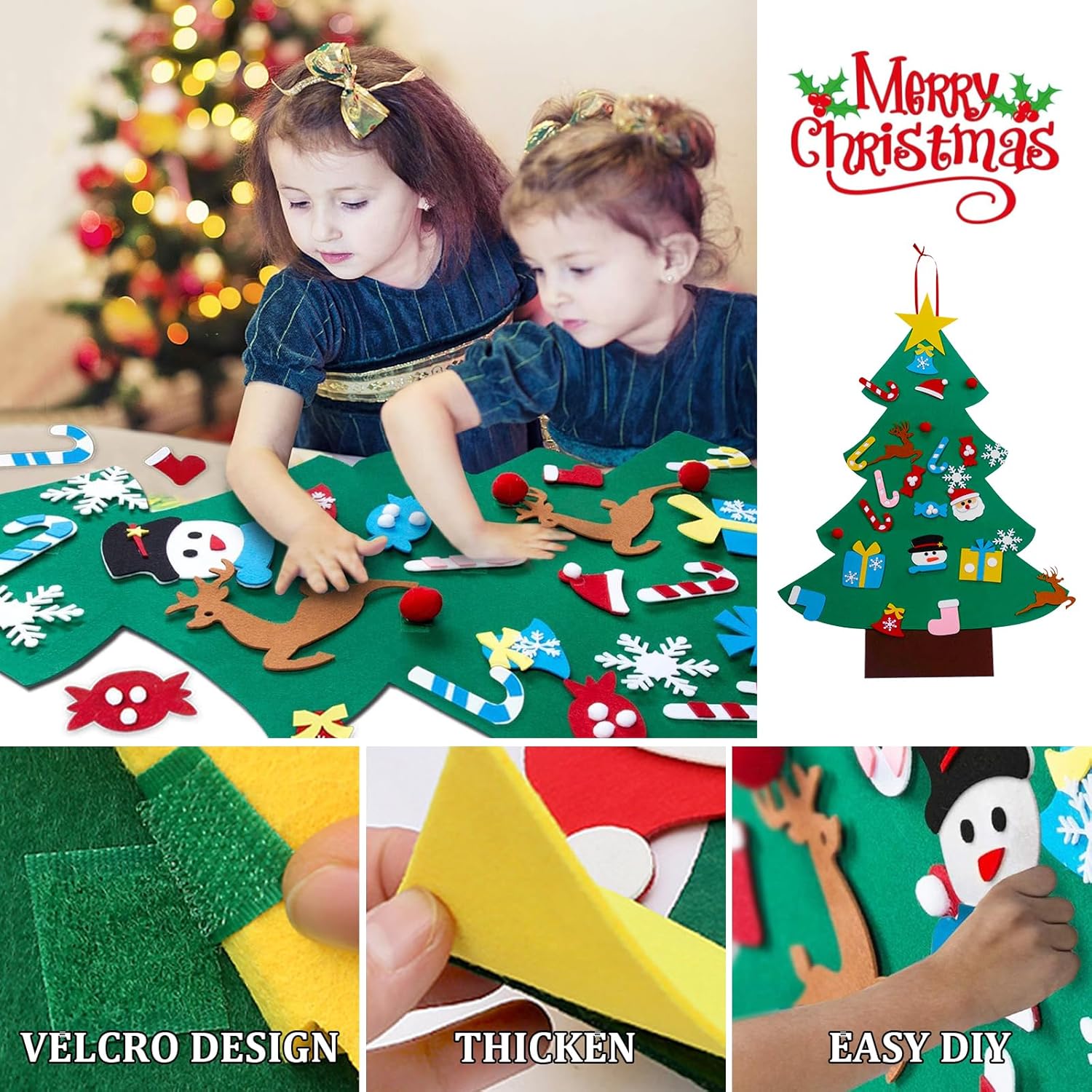 【Set albero di Natale in feltro】 Riceverai 1 albero di Natale fai da te in feltro per bambini e 26 decorazioni di vari colori e forme, tra cui pupazzi di neve, dolci natalizi, stelle, campane, scatole regalo e altro ancora. Questo albero di Natale è ideale come decorazione e può essere appeso a porte, finestre e pareti. È la decorazione natalizia perfetta. 【Meglio di un vero albero di Natale】- L'albero di Natale in feltro per bambini è realizzato in robusto tessuto di feltro dello spessore di 4 mm. L'albero di Natale in feltro è morbido, inodore e riutilizzabile. Conveniente e poco ingombrante rispetto a un vero albero di Natale. 【Regalo di Natale perfetto per il tuo bambino】Set di alberi di Natale in feltro, un regalo perfetto per te e i tuoi bambini. L'albero di Natale fai da te in feltro con ornamenti da appendere può mettere in mostra la creatività dei tuoi bambini e promuovere la loro destrezza, migliorando la coordinazione occhio-mano, le capacità motorie fini e il riconoscimento dei colori. 【Facile da usare e decorare】 Gli accessori sono dotati di chiusure in velcro. Basta attaccarli leggermente all'albero per iniziare il tuo viaggio fai da te. Le parti sono facili da attaccare e rimuovere, rendendole facili da decorare anche per i bambini piccoli. 【Nota】 Poiché l'albero di Natale in feltro è piegato per l'imballaggio, potrebbe presentare lievi pieghe al momento della consegna. È possibile appianarle facilmente con un ferro da stiro e tornerà come nuovo.
