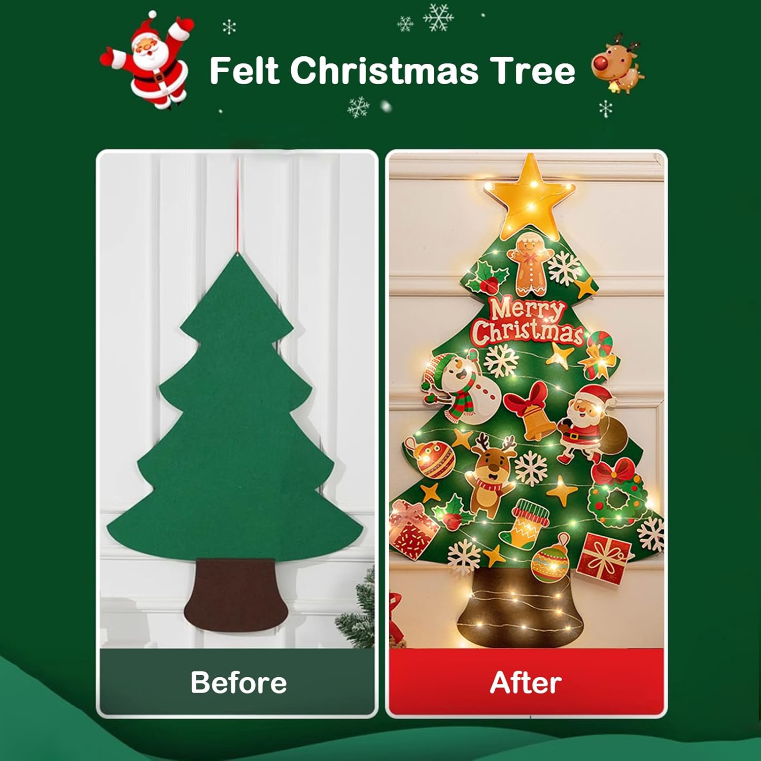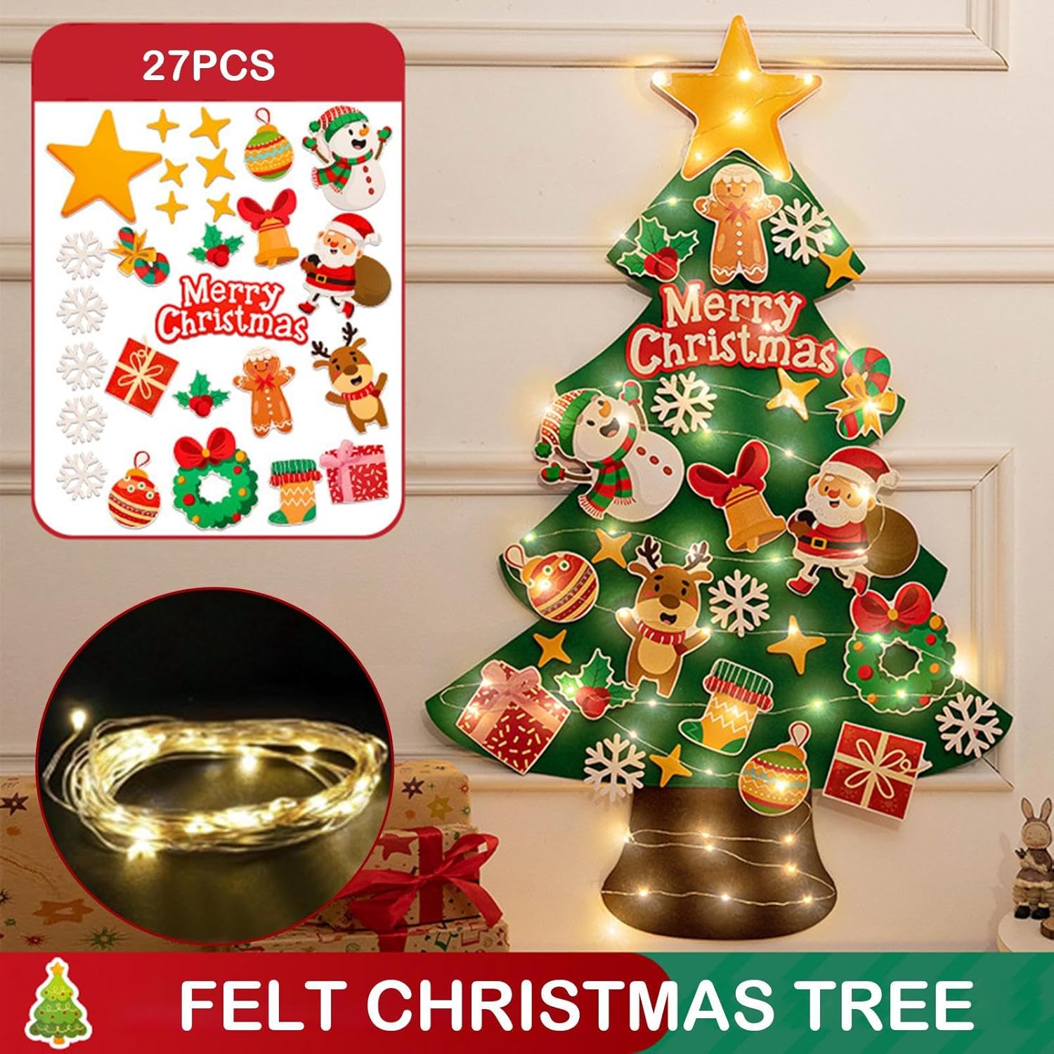 Processo di Installazione Senza Stress: L'albero di Natale in feltro per bambini è progettato con supporto autoadesivo e punti gancio preposizionati, garantendo un processo di installazione senza attrezzi e senza intoppi che fa risparmiare e fatica. Questo rende i preparativi per le feste di stress per le famiglie con bambini piccoli, permettendo di decorare le pareti in modo efficiente e coinvolgente durante le celebrazioni natalizie. Attività Interattiva Natalizia: Progettato per coinvolgere le giovani menti, questo albero di Natale in feltro per bambini include 27 decorazioni a tema che uniscono gioco creativo e sviluppo di abilità, rendendolo un'attività interattiva ideale per riunioni familiari o intrattenimento individuale. Offre ore di divertimento educativo durante le feste, stimolando la collaborazione e la creatività in un contesto natalizio che incoraggia il gioco pratico e l'apprendimento continuo. Sensazione Celebrazione Natalizia: L'albero di Natale in feltro genera una decorazione e coinvolgente, accentuando la sensazione di festa mentre diffonde lo spirito natalizio in soggiorni, uffici o raduni, risultando un centro ideale per momenti memorabili e piacevoli. La sua atmosfera migliora le celebrazioni stagionali, rendendo ogni occasione unica e indimenticabile. Albero Multistagionale per Bambini: L'albero di Natale per bambini, realizzato in feltro solido, può essere stirato leggermente per ripristinare la planarità e è riutilizzabile per multiple stagioni. Questa caratteristica offre una soluzione decorativa di lunga durata per le festività natalizie e per le configurazioni di gioco durante tutto l'anno, aggiungendo gioia alle celebrazioni familiari e supportando il gioco creativo dei piccoli. Il feltro resistente assicura durabilità e facilità di man Soluzione Adattabile: L'albero di Natale per bambini si adatta facilmente a qualsiasi spazio interno aderendo a pareti e porte, offrendo una decorazione versatile che valorizza la creatività con arrangiamenti personalizzabili adatti per camere da , aule o angoli familiari durante la stagione natalizia, massimizzando l'uso degli spazi senza necessità di modifiche strutturali