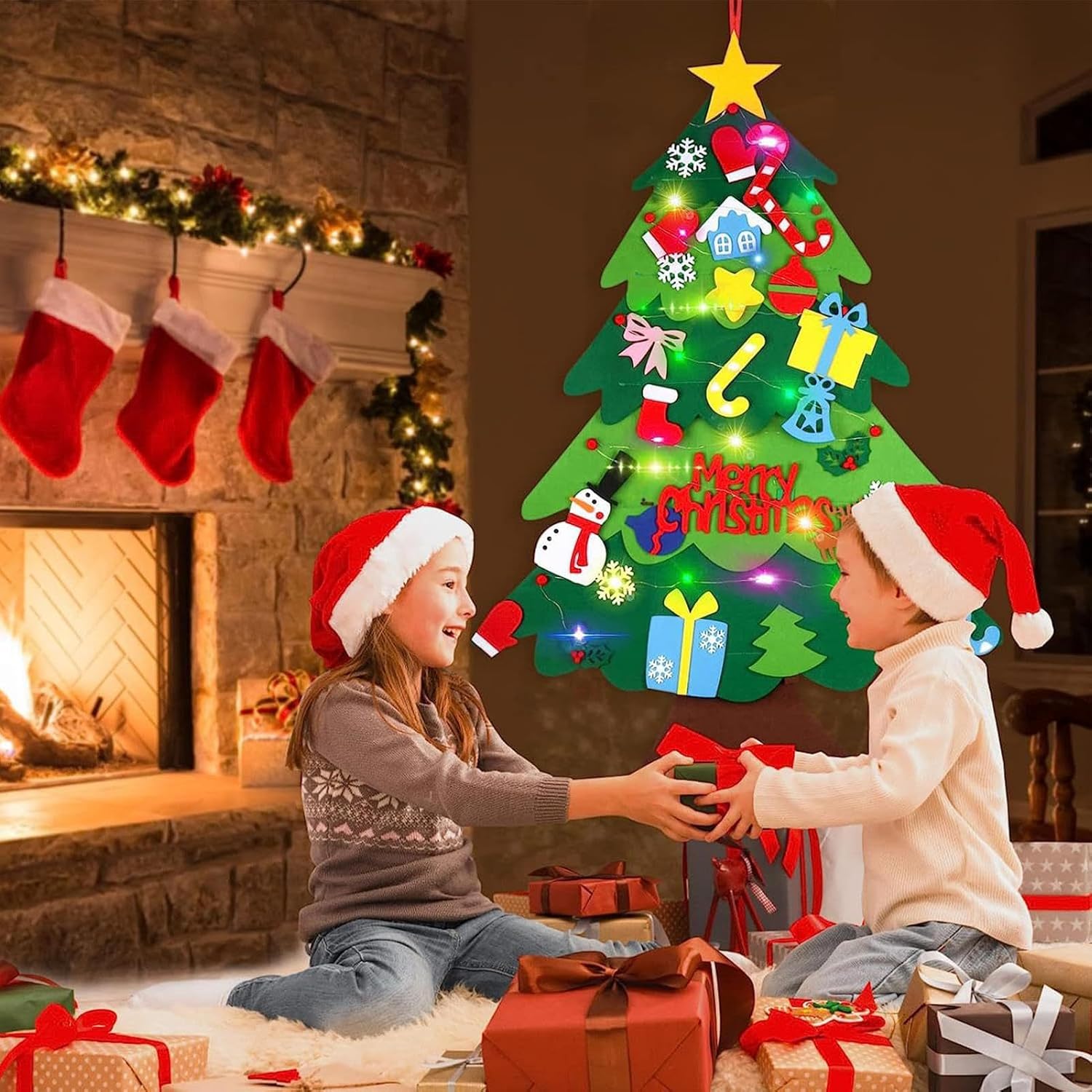 Utilità diversificata: trasforma qualsiasi spazio in un festoso paese delle meraviglie con il nostro albero di Natale in feltro per bambini. Misura 39,4 x 27,6 pollici, è adatto per decorare pareti, porte, asili , aule, soggiorni, sale giochi e camere da . I bambini adoreranno organizzare le decorazioni rimovibili per ore di divertimento creativo Regalo gioioso: fungendo da coinvolgente regalo di Natale, questo albero di feltro non intrattiene ma migliora anche efficacemente la destrezza manuale, la coordinazione occhio-mano, le capacità motorie e il riconoscimento dei colori, rafforzando così la relazione genitore-figlio Stile accattivante: il nostro albero di Natale in feltro per bambini viene fornito con varie decorazioni staccabili tra cui Babbo Natale, pupazzi di neve, fiocchi di neve, natalizi, cappelli, caramelle e campanelle, che lo rendono meraviglioso per creare un'atmosfera festosa Feltro robusto: realizzato in feltro sicuro e robusto con ganci cuciti saldamente, il nostro albero di Natale in feltro per bambini con una stringa di luci di 3 metri che non cadrà facilmente nemmeno nelle mani dei bambini e funziona con 2 batterie AA non incluse, creando un'incantevole atmosfera vacanziera Immaginazione alimentata: l'albero di Natale in feltro per bambini fatto a mano consente ai tuoi bambini di decorare il loro albero, incoraggiando la creatività, migliorando l'immaginazione e sviluppando la flessibilità. Questa attività è molto popolare tra i bambini per un'esperienza natalizia divertente e appagante