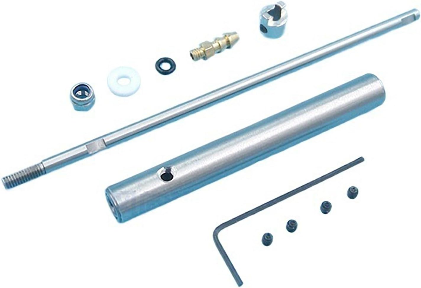 Gruppo albero motore completo in acciaio inossidabile da 4 mm per barche RC con ugello dell'olio. Lunghezze multiple disponibili: asta da 10 cm a 35 cm con manica da 5 cm a 30 cm. Dispone di cuscinetti a sfera su entrambe le estremità per una trasmissione fluida ed efficiente. Il design dell'ugello dell'olio consente una facile lubrificazione e impermeabilità. Perfetto per barche da esca, pescherecci da traino e modellini di navi RC funzionanti.