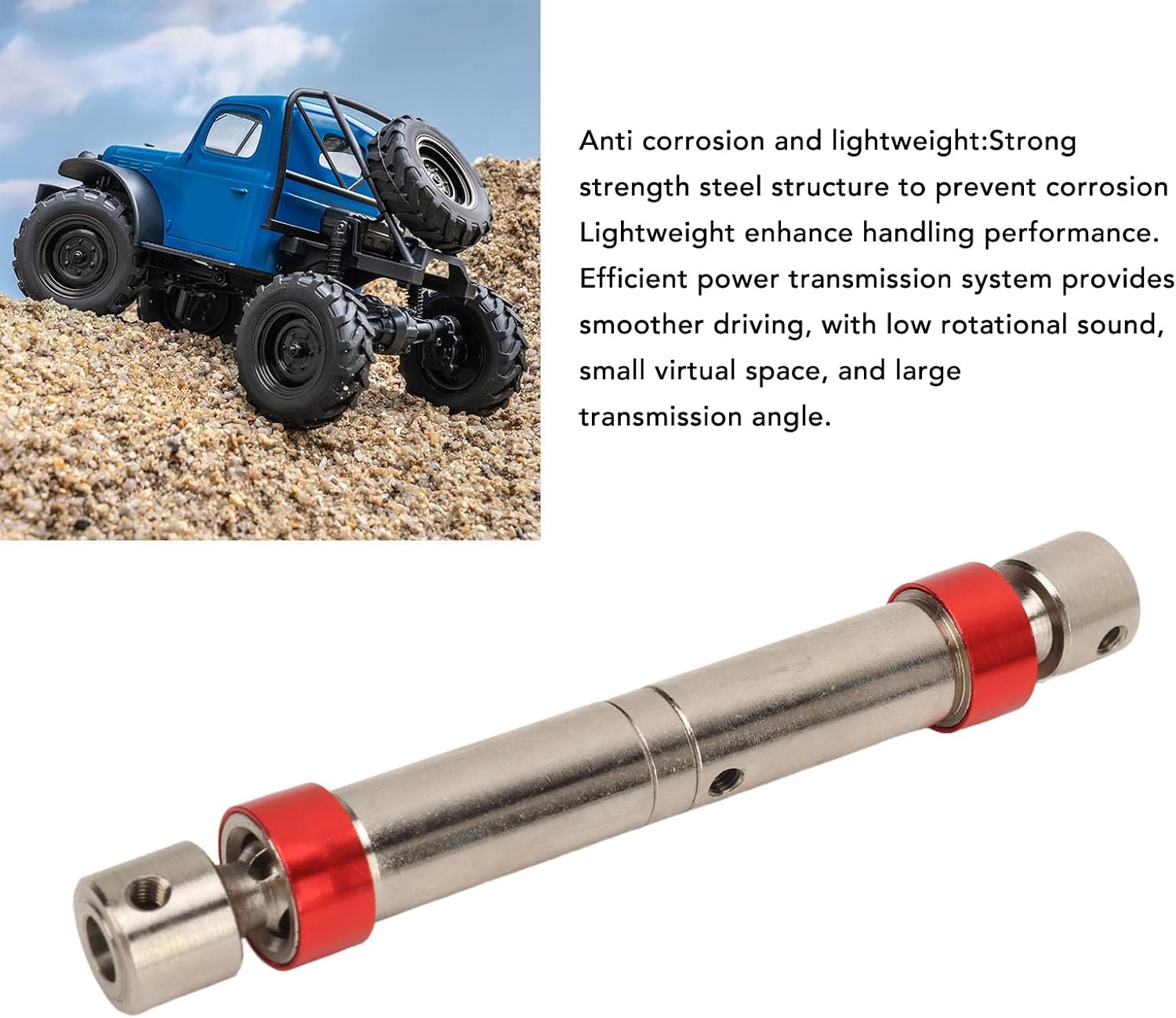 【Materiale di alta qualità】 Costruito con materiale di acciaio di prima qualità, questo albero motore per auto RC offre maggiore potenza e controllo per la tua auto telecomandata 【Struttura leggera】 Caratterizzato da una struttura leggera, questo albero motore è progettato per migliorare le prestazioni di manovrabilità complessive. La sua robusta struttura in acciaio garantisce un aggiornamento affidabile e duraturo per la tua auto RC 【Facile da usare】 Sperimenta le prestazioni con l'efficiente sistema di trasmissione della potenza di questo albero motore. Offre una guida più fluida con un rumore rotatorio minimo, un gioco ridotto e un ampio angolo di trasmissione Facile da installare: grazie alle sue dimensioni ridotte, al design leggero e all'elevata precisione, questo albero di trasmissione è facile da installare e rimuovere. Migliora efficacemente le prestazioni e la forza della tua auto RC, permettendoti di aggiornare rapidamente e senza sforzo il tuo veicolo 【Uso versatile】 Progettato pensando alla praticità, questo albero di trasmissione è il sostituto ideale per parti vecchie o danneggiate. Il suo design ragionevole e il semplice processo di installazione ti consentono di sostituire facilmente i componenti usurati, garantendo maggiore resistenza e affidabilità per la tua auto RC