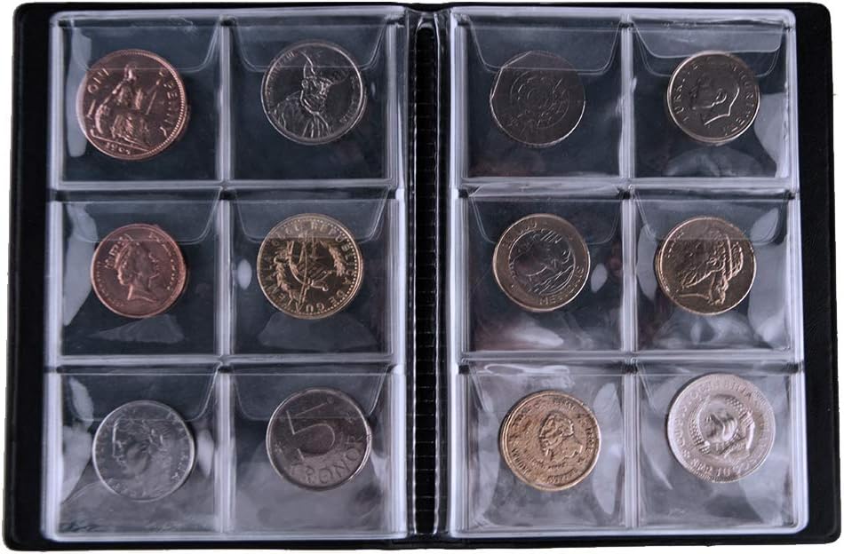 DIMENSIONI DEL PRODOTTO - Dimensioni dell'album per monete: 11,5 x 15,2 x 1 cm (4,5" x 6" x 0,4"). Dimensioni di ciascuna griglia interna: 4,5 x 4,5 cm (1,8" x 1,8"). Adatto per monete con un diametro inferiore a 4,0 cm 60 TASCHE - Il libro per la raccolta di monete ha un totale di 10 pagine, 6 tasche per pagina. Spazio sufficiente per monete, gettoni, medaglioni, stemmi, ecc. Materiale eccellente: la copertina è realizzata in ecopelle di alta qualità, l'interno è in PVC, portatile e resistente, facile da trasportare. PROTEZIONE EFFICACE - Alette trasparenti a forma di busta per evitare che le monete cadano facilmente.