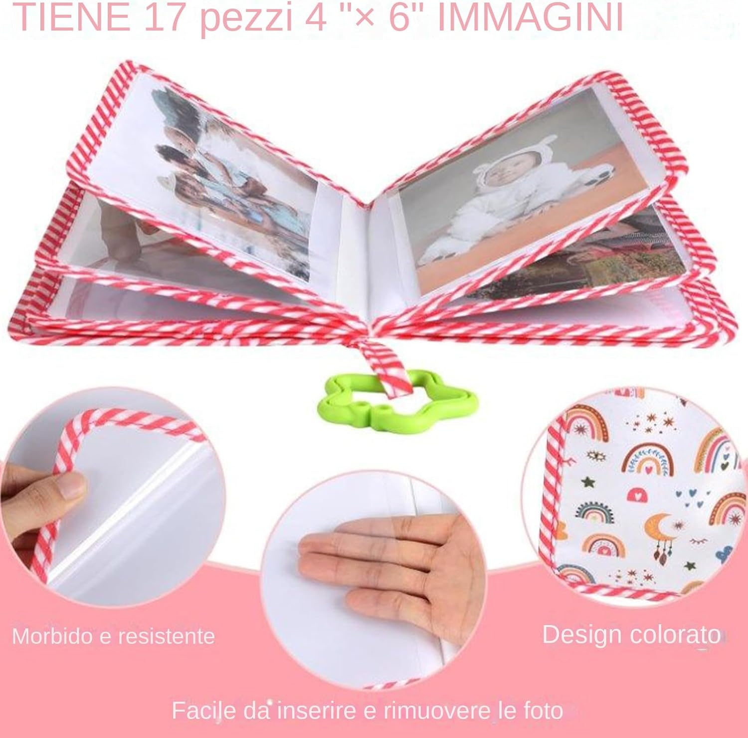 Motivi Vivaci: Combina disegni colorati e elementi grafici arricchiti da dettagli vibranti, assicurando che ogni momento speciale del bebè risalti in modo incantevole e unico nella raccolta fotografica Fissaggio pratico: sicuro con ganci a stella per appendere facilmente l'album foto bambini alla parete e posizionarlo in modo flessibile secondo le tue esigenze Qualità Affidabile: Progettato con materiali anti-sbiadimento e struttura resistente all'usura, garantisce una superficie morbida al e una affidabilità per mantenere i ricordi del tuo bambino vividi e intatti negli anni Capienza Ottimale: Contiene fino a 17 foto misura 10x15 cm, unendo ampio spazio a un design funzionale per una gestione semplice dei ricordi dei Documentare la crescita: Preserva i primi momenti del tuo bebè con questo album fotografico progettato per creare ricordi e documentare lo sviluppo durante il prezioso percorso di crescita