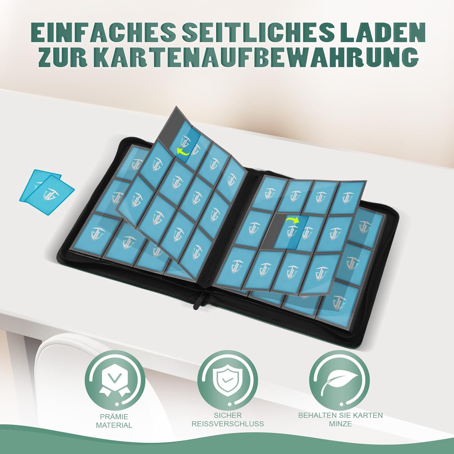CONSERVAZIONE PERFETTA DELLE CARTE: Il nostro album di scrapbook premium TCG ha copertine anteriori e posteriori imbottite extra rigide realizzate in tessuto impermeabile e antiscivolo con 30 pagine fronte-retro con 12 tasche ciascuna per 720 slot per carte. Sicuro e protetto: con rinforzi anteriori e posteriori, rimane chiuso saldamente grazie alla cerniera di alta qualità. Tutte le tasche a caricamento laterale sono state progettate per mantenere le tue carte al sicuro e in perfette condizioni. Conservazione a lungo termine: il raccoglitore di carte scrapbook è progettato come raccoglitore di conservazione a lungo termine. Niente pagine sciolte, clip, ecc. Le nostre pagine sono progettate per prevenire aria, polvere, deformazioni e umidità. Il raccoglitore è compatibile anche con tutte le buste porta carte standard. Compatibilità: questo raccoglitore Aammelalbum è compatibile con una varietà di giochi sportivi, tra cui le collezioni di calcio, baseball, Yugioh TCG, MLB e MTG. Non importa che tipo di carte collezioni, questo raccoglitore è quello che fa per te. Il raccoglitore TCG misura 35,3 x 33 x 5 cm con una tasca interna che misura 9,7 x 7,1 cm. Garanzia del marchio: i raccoglitori di carte TCGUARD ti consentono di conservare intere collezioni in un unico luogo sicuro e di alta qualità. Se non siamo i migliori attacchi GCC che tu abbia mai visto, restituiscili entro 30 giorni e riceverai un rimborso completo.