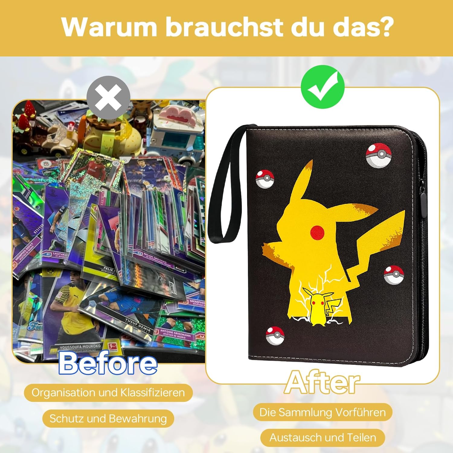 Album di carte collezionabili carino e accattivante: il nostro album di carte collezionabili è ispirato a un anime molto popolare. Il raccoglitore di carte collezionabili ha un design colorato, presenta disegni vivaci e iconici e mette in risalto gli elementi anime amati dai fan. Infatti, i fan che possiedono carte preziose e rare affermano di fidarsi del nostro album di carte collezionabili per evitare che i loro oggetti da collezione perdano valore. Regalo bello e pratico per collezionisti di carte: il nostro porta carte collezionabili offre design adorabili, vivaci e accattivanti, è un regalo straordinario e pratico per gli amanti delle carte e i collezionisti per il compleanno, la festa dei bambini, il Ringraziamento, Natale, Capodanno. Puoi facilmente sentirti distintivo e diverso dagli altri album di carte collezionabili, sia i bambini che gli adulti apprezzeranno sicuramente questo colorato libro di carte collezionabili. Utilizzato anche come album di materiale scolastico. Libro di carte collezionabili di alta qualità: il nostro porta carte è realizzato in pelle resistente, che ha una buona resistenza agli urti, alla polvere e all'umidità. La superficie impermeabile è facile da pulire. Le cerniere premium proteggono le carte dalla caduta e la maniglia portatile è comoda da portare ovunque. Il design rimovibile a 3 anelli è comodo per aggiungere o rimuovere manicotti interni. Il design con caricamento dall'alto semplifica l'inserimento e la rimozione delle carte. 400 buste per carte: il nostro taccuino per la raccolta di carte viene fornito con 50 buste per carte trasparenti e rimovibili (possono essere utilizzate su entrambi i lati), 8 carte per pagina, può contenere fino a 400 carte, mantiene le tue carte ben organizzate e in condizioni eccellenti. Le buste trasparenti sono impermeabili e resistenti, robuste in modo che le carte non si pieghino, proteggono le tue carte dall'invecchiamento, dalle macchie e dall'umidità. Adatto per una varietà di carte collezionabili: il nostro raccoglitore per carte collezionabili da 400 tasche è compatibile con più carte collezionabili di dimensioni standard, carte da gioco, carte sportive, carte da gioco, biglietti da visita, cartoline, francobolli, carte bancarie, mini foto Polaroid e altro ancora. Goditi una protezione migliore e più sicura con il nostro album di carte collezionabili.