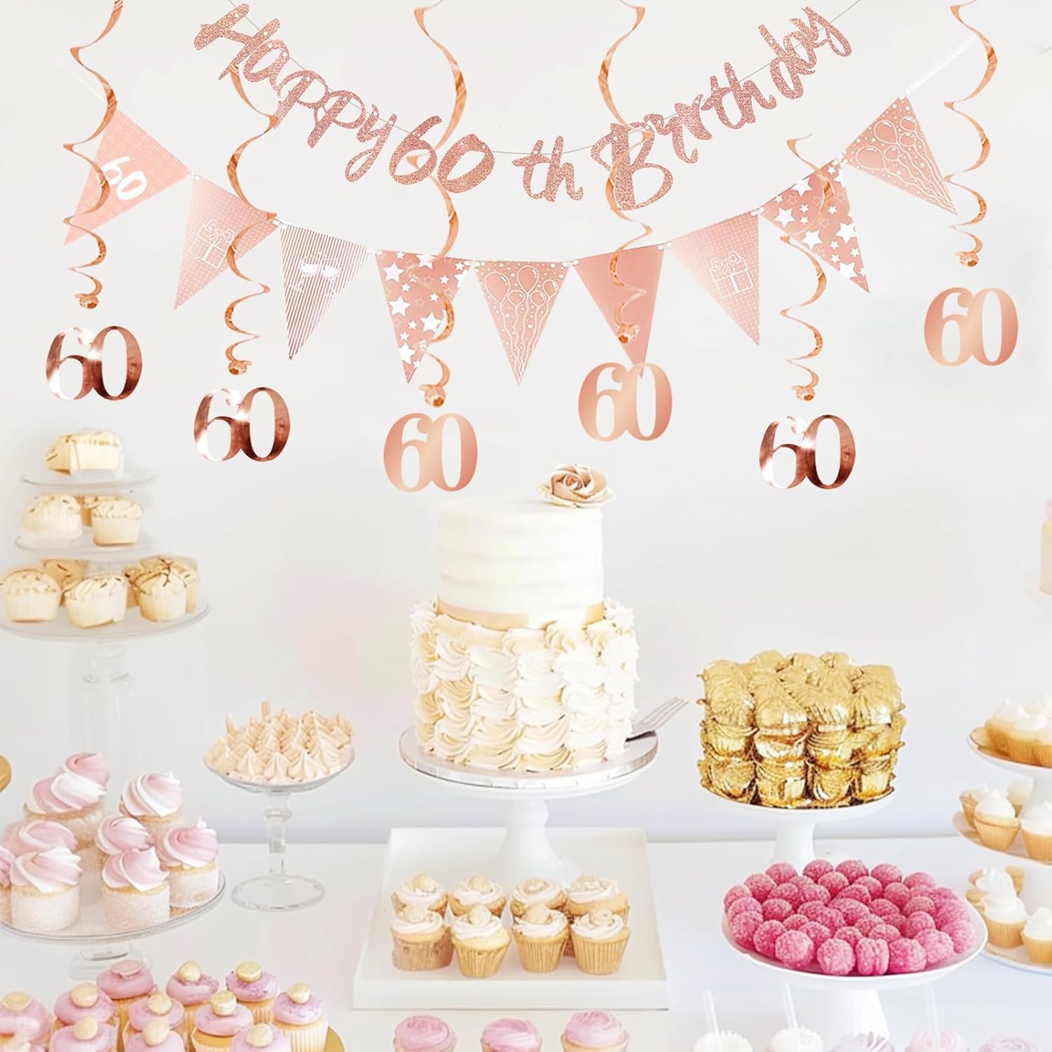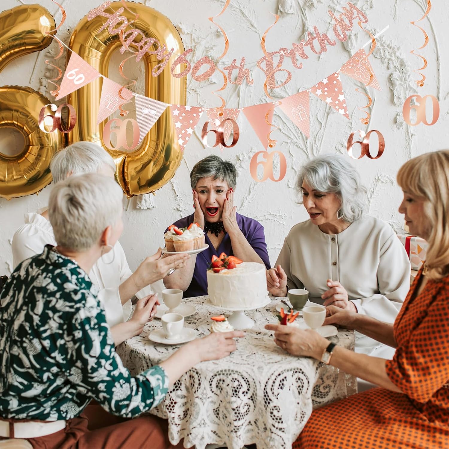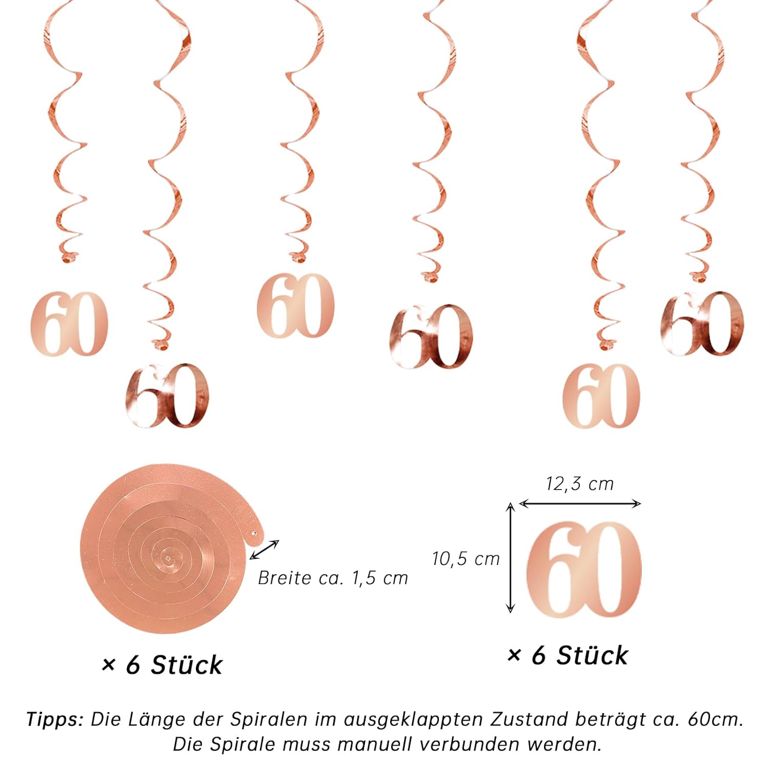 ALEGRE Decorazione per 60° compleanno, donna, ghirlanda per 60° compleanno, decorazione a spirale per 60° compleanno, decorazione per 60 anni, decorazione per 60 anni, decorazione per 60 anni, 60