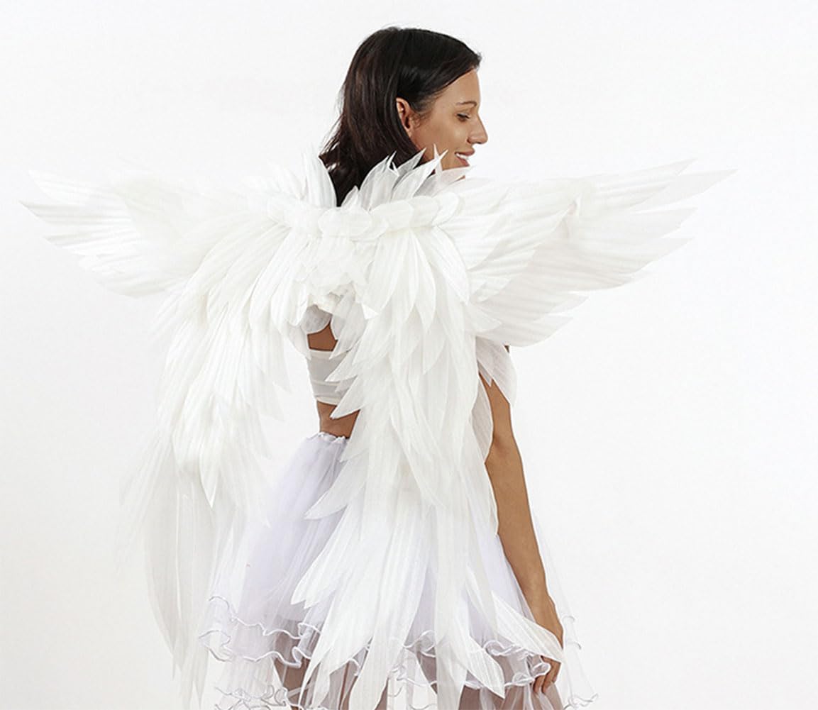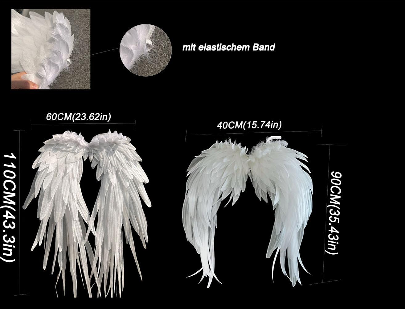 Ali d'angelo: sono realizzate in piume, morbide e confortevoli, non si deformano facilmente, lavorazione ricca di dettagli, durevoli e non sbiadiscono Dimensioni ali d'angelo: 90 x 40 cm, ali d'angelo con fascia elastica, comodo da indossare Costume con ali d'angelo: perfetto per costumi da angelo, Natale o Cupido, ideale anche per coreografie di angeli, spettacoli teatrali o come accessorio per scatola fotografica Ali d'angelo Halloween Carnevale: ideale per carnevale, Halloween, feste in maschera, oggetti di scena, balli, matrimoni e diverse occasioni Accessori per costume da angelo: le nostre ali d'angelo sono il regalo perfetto per i vostri amici, famiglia, moglie o fidanzata