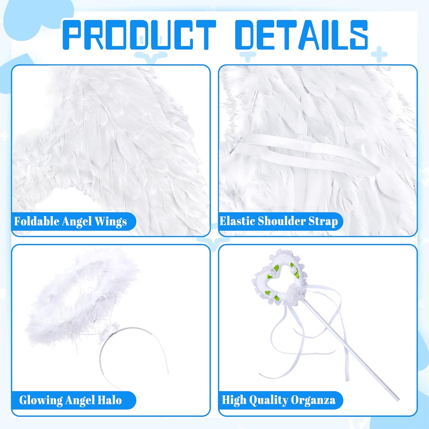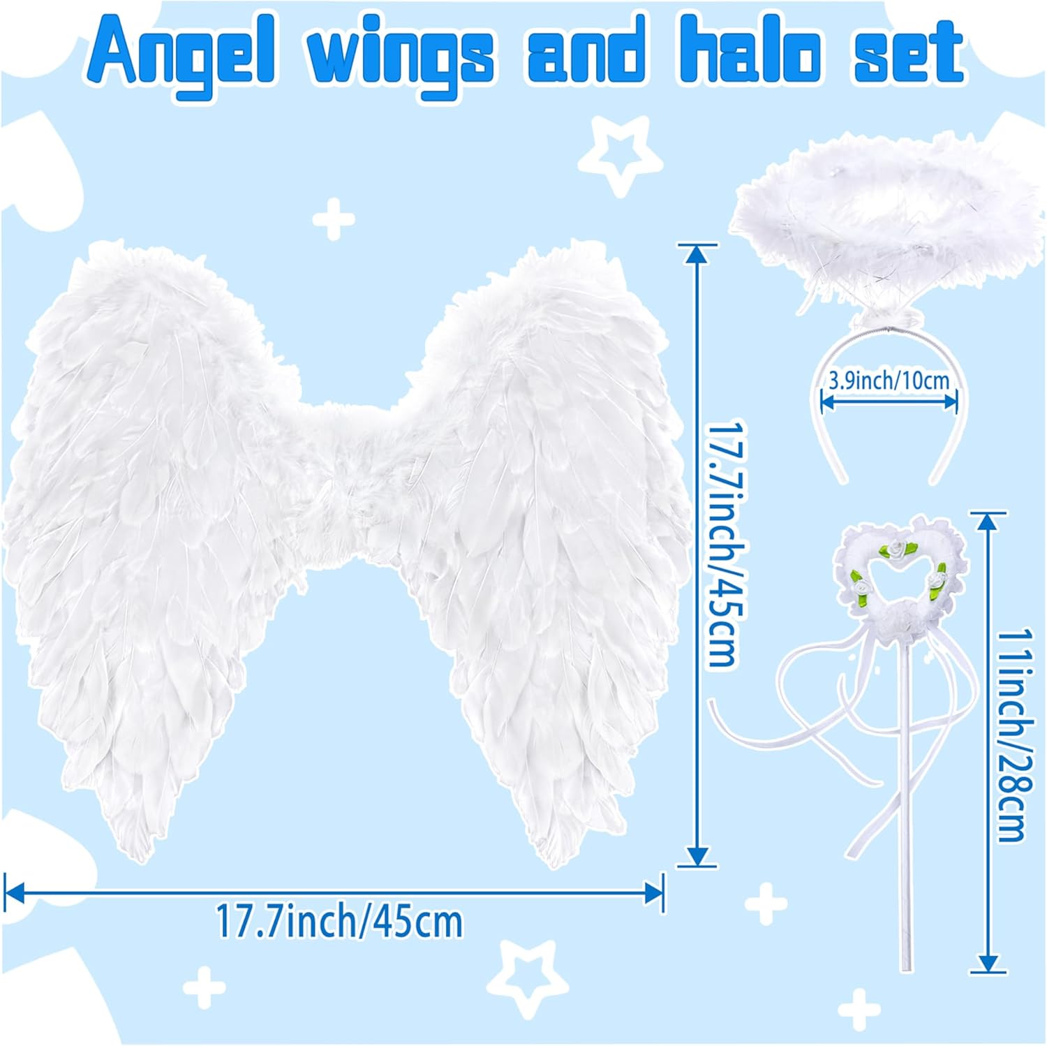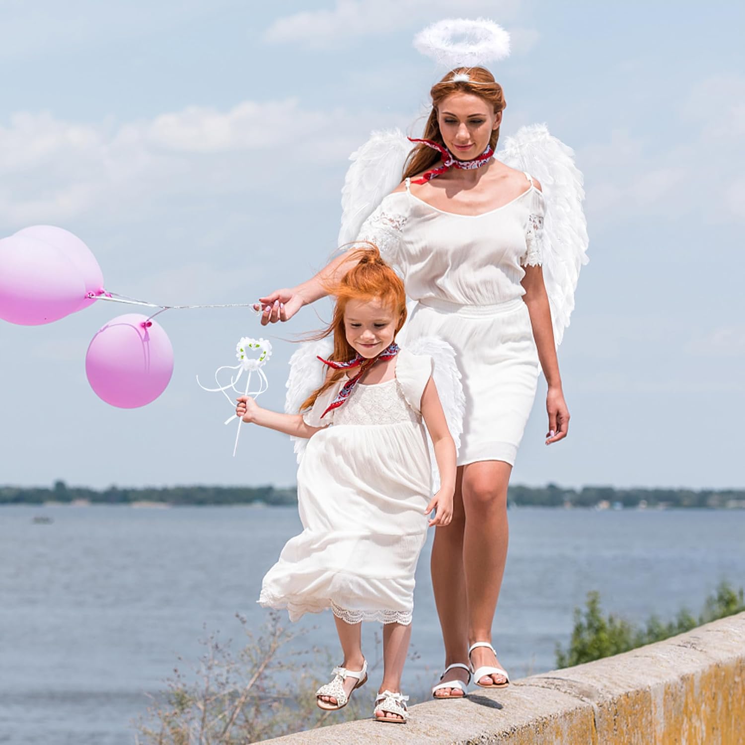 Angel Wings & Halo Set – Le ali d'angelo e gli accessori per angeli sono perfetti per feste di Halloween cosplay, essere un bellissimo angelo mentre partecipa a vari eventi. Il set di ali d'angelo e alone include ali d'angelo, alone d'angelo e bacchetta magica. Ali d'angelo nere e ali d'angelo bianche tra cui scegliere, il costume da ali d'angelo è adatto per adulti, donne e bambini. Materiale di alta qualità: le ali d'angelo sono realizzate a mano con piume bianche originali di alta qualità, peso leggero e non si sentiranno peso quando indossate. Il set di ali d'angelo e alone è perfetto per ragazze, bambini e donne. Le ali d'angelo nere e le ali d'angelo bianche non sbiadiscono, morbide e confortevoli, l'interno delle ali d'angelo sono fissati con filo, resistenti e non facilmente deformati. Comodo da indossare: le ali d'angelo con fascia elastica, le ali d'angelo e l'alone possono essere regolate liberamente, le ali d'angelo sono regolabili al centro e possono essere indossate in due modi diversi, comode da indossare per adulti e bambini, peso leggero, non cade. Gli spallacci elastici del costume da angelo ti permettono di trasportare più facilmente le ali del costume da angelo. Accessorio perfetto per feste: ideale come costume da angelo per una festa di Halloween o per travestimento, come costume da angelo caduto per una serata di ballo o una performance scolastica o come accessorio da angelo per le damigelle del vostro matrimonio. Il miglior regalo: le nostre ali d'angelo e l'alone sono il regalo perfetto per i tuoi amici, familiari, moglie o fidanzate. Bellissimi accessori a forma di angelo sono adatti per giochi di costume di Halloween, feste di compleanno, Natale, balli, servizi fotografici e altre occasioni. È possibile modificare il vostro colore preferito fai da te.