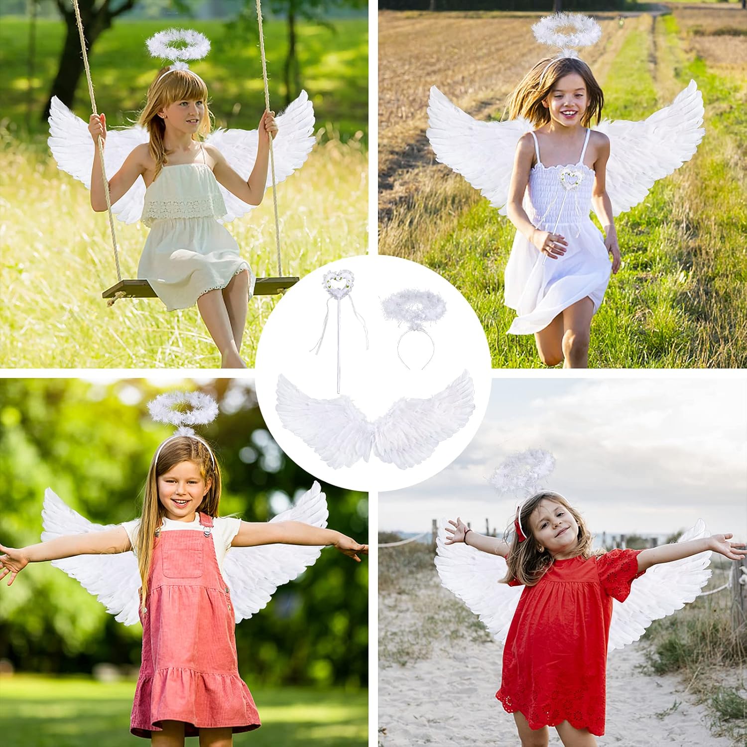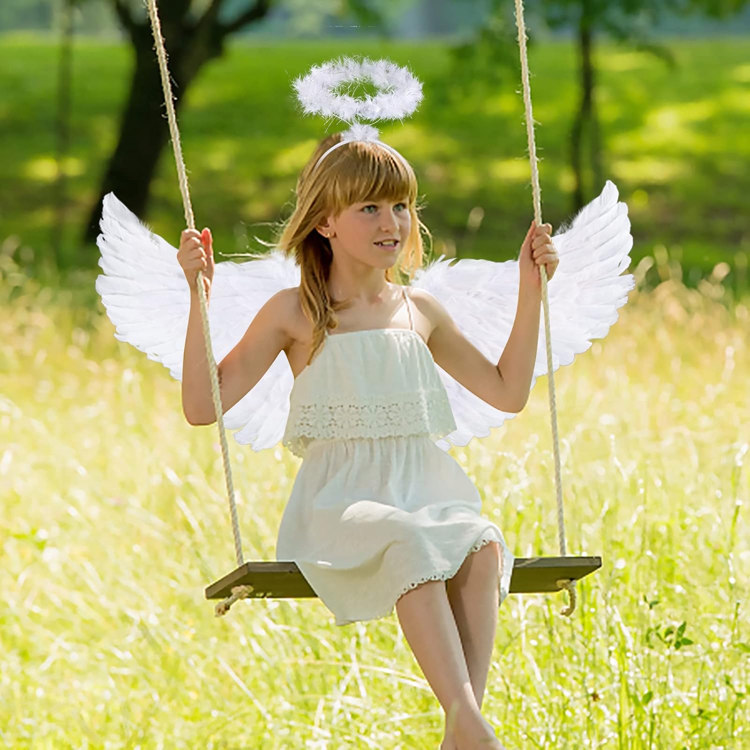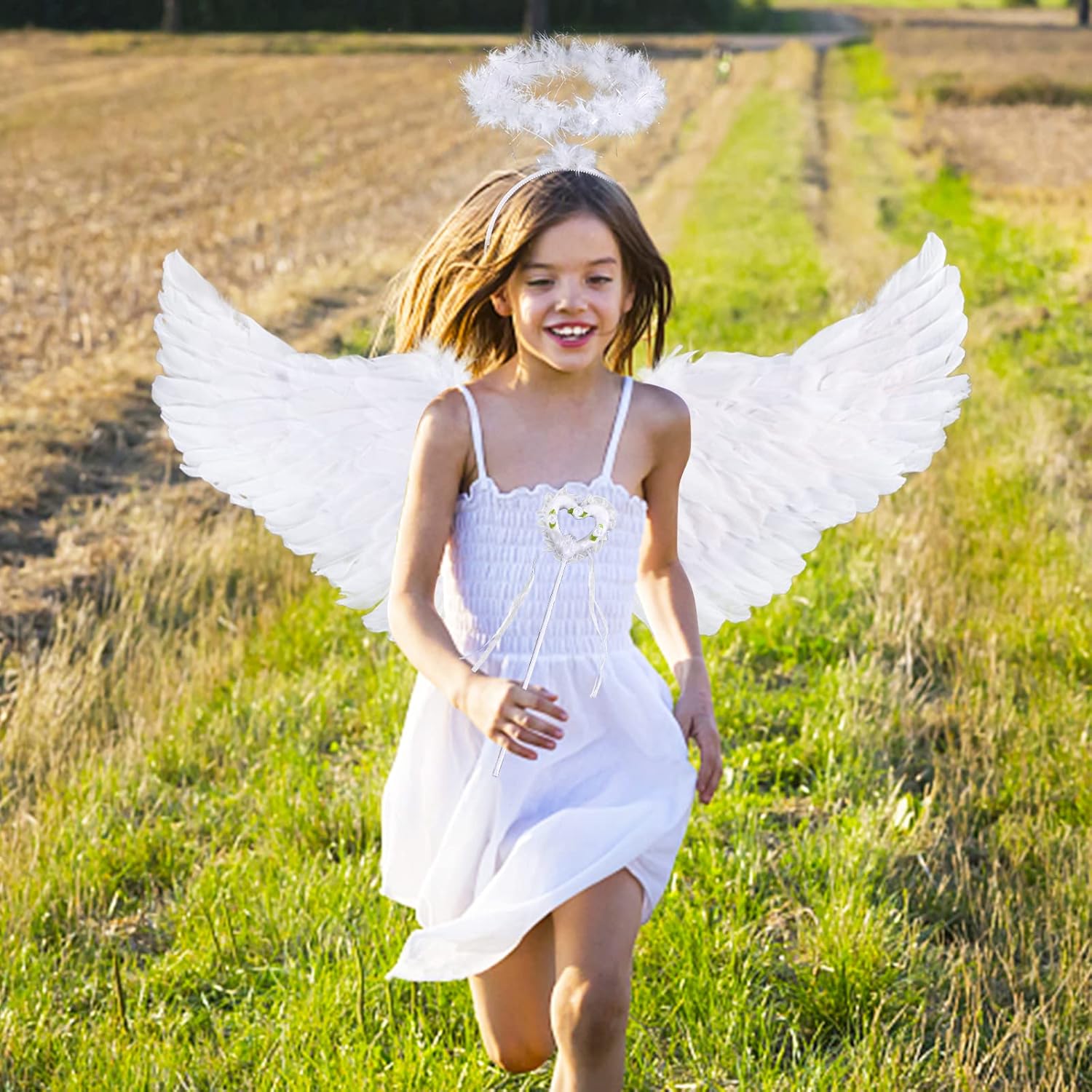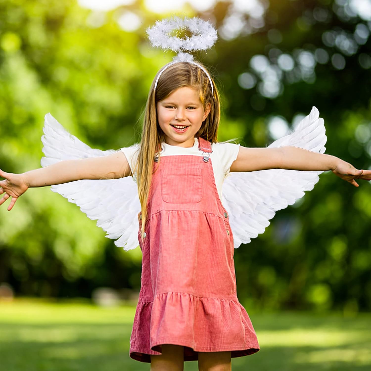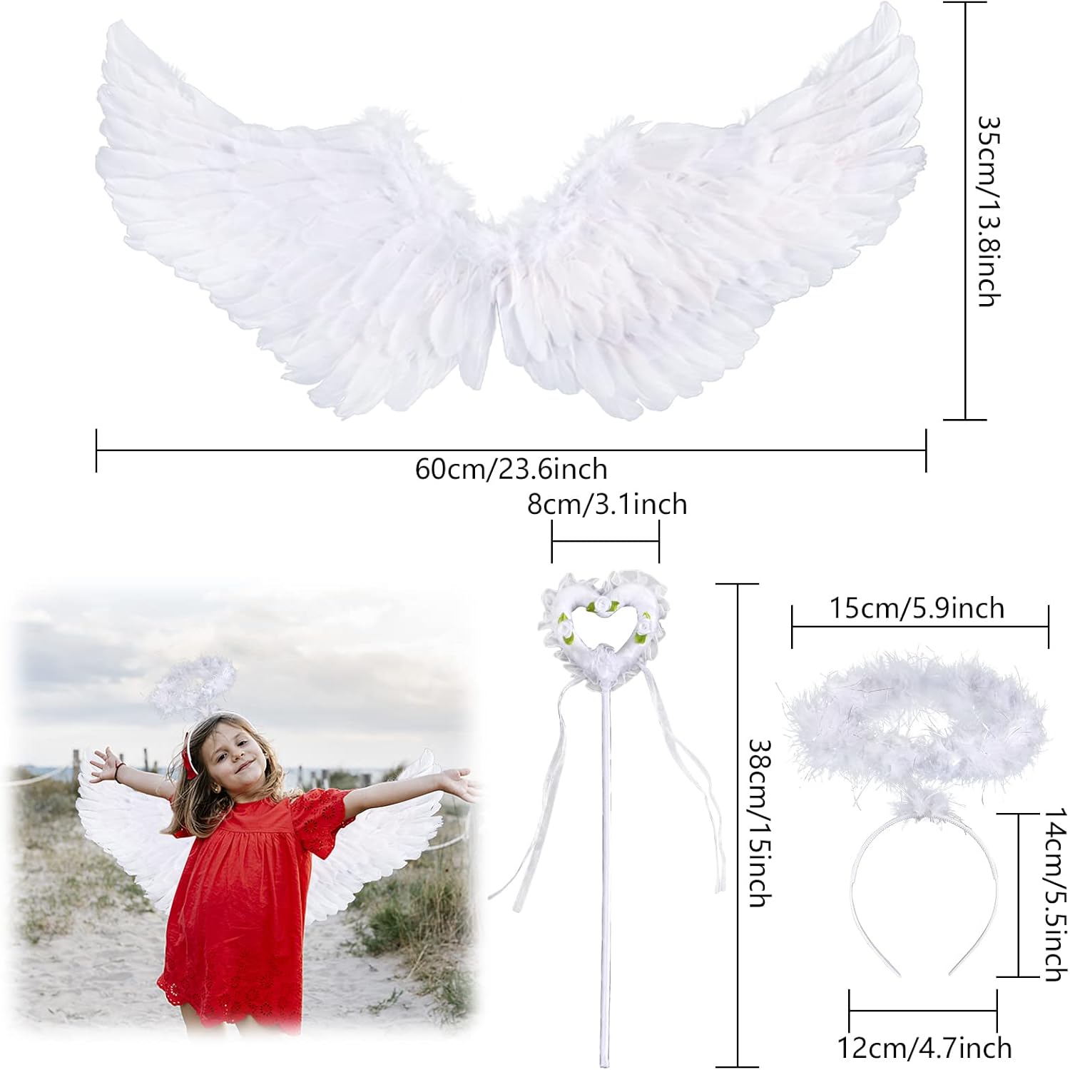 Set di costumi con ali d'angelo: il costume di carnevale include ali d'angelo, fascia per la testa d'angelo e bastone d'angelo. Le ali bianche sono realizzate con piume artificiali e cartone di alta qualità, le belle piume sono molto realistiche. Le ali misurano 60 x 35 cm, una dimensione per tutti. Elegante ed elegante: il costume da angelo da donna bianco è realizzato in piume di cigno, che sono realisticamente attaccati a un supporto di cartone, che è stabile e non si stacca facilmente. Con un luccichio luminoso e angelico sulle piume, sono particolarmente eleganti! Facile da trasportare: le ali d'angelo bianche possono essere regolate con la fascia elastica regolabile e possono essere indossate larghe o piegate. Sono comodi da indossare e non stringono le spalle. L'accessorio perfetto: sia che tu stia esaminando un musical o facendo un'impressione a una grande festa di carnevale, con questi costumi di carnevale con ali d'angelo sembrerai così sacro come in cielo. Versatile: costume da festa con ali d'angelo bianco per feste di compleanno, costumi, accessori fotografici, feste di Halloween, costumi da fata o farfalle, feste di carnevale, feste di Natale o decorazioni per feste di famiglia.