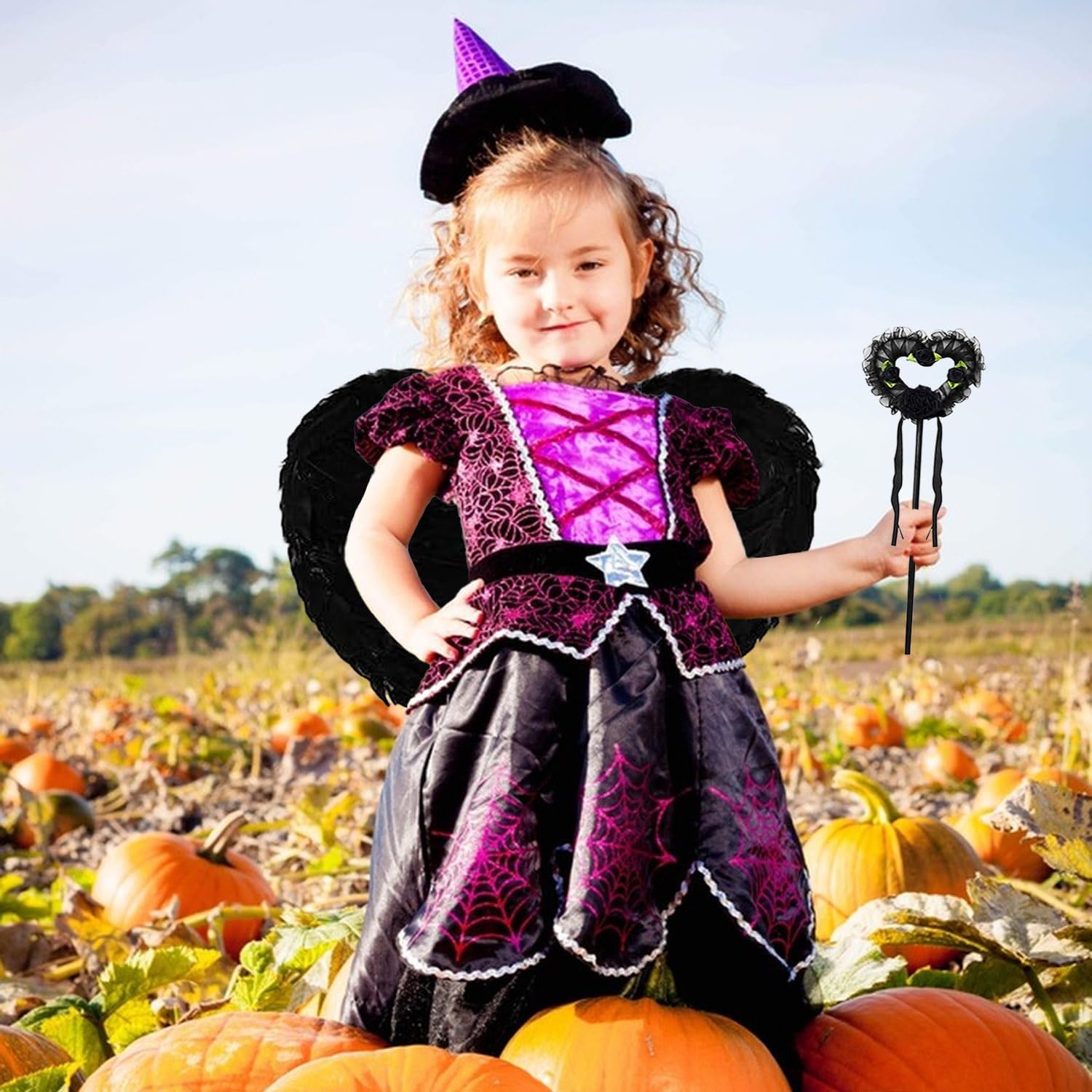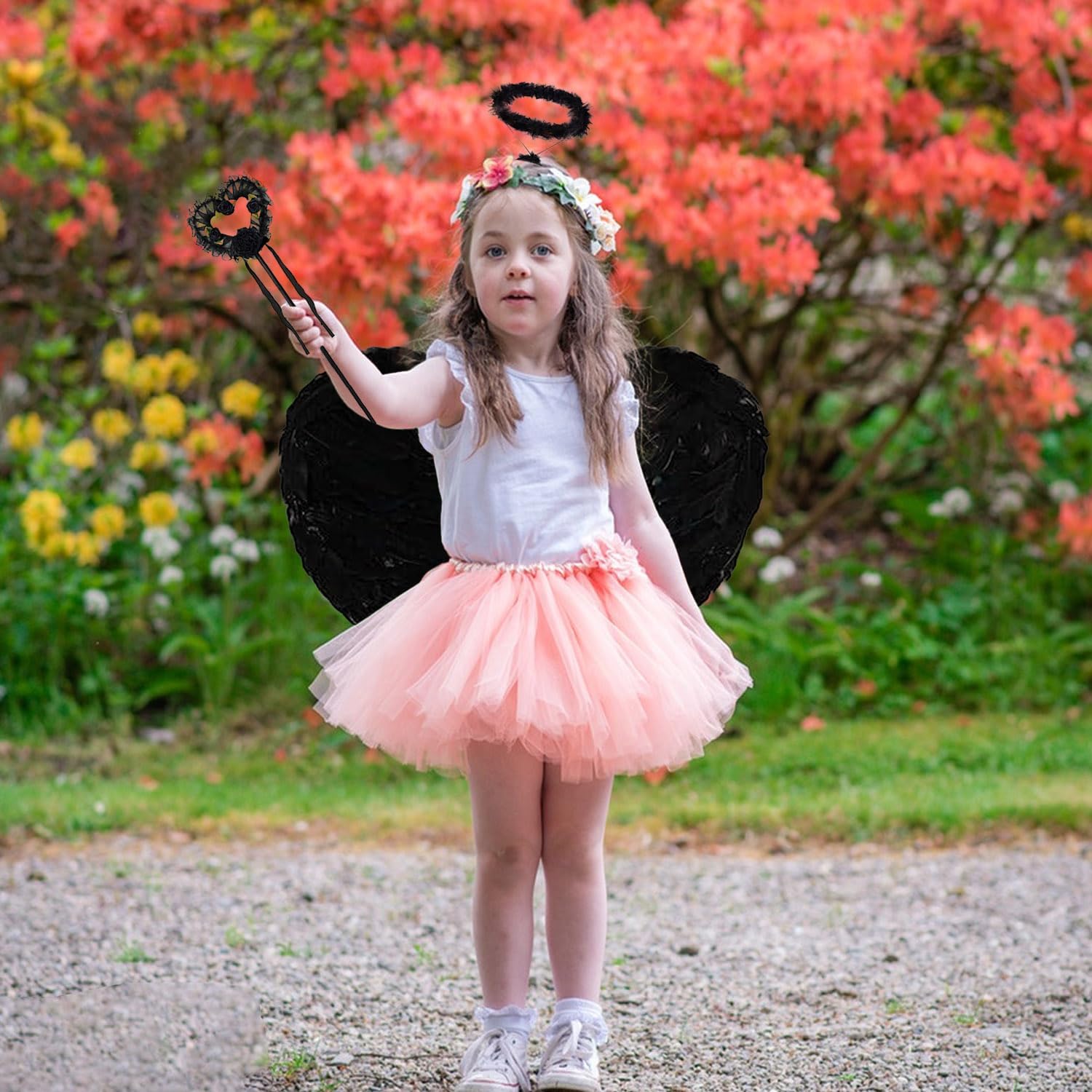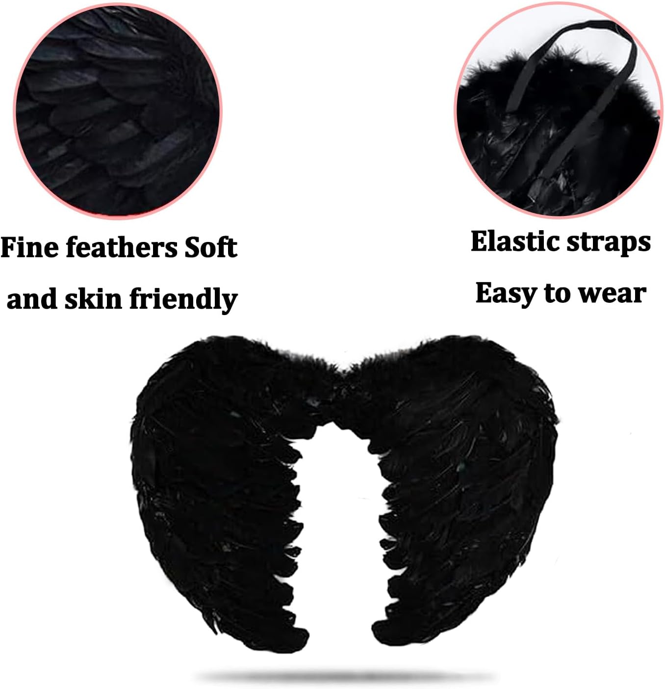 Ali d'Angelo, Bianco Nero Ali d'Angelo con Aureola e Bacchetta Magica, Ali d'Angelo per Donne Ragazze, Angelo Diavolo Fate, Costume Accessorio per Halloween, Carnevale, Cosplay