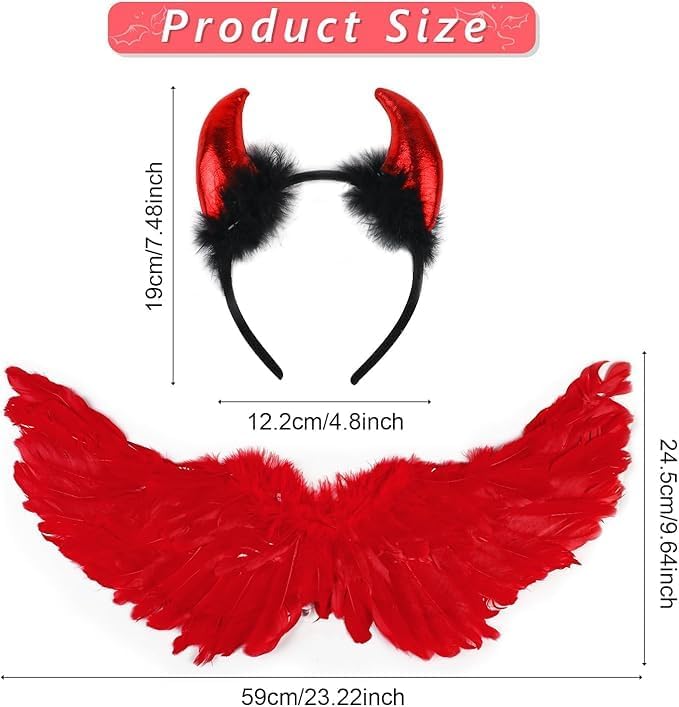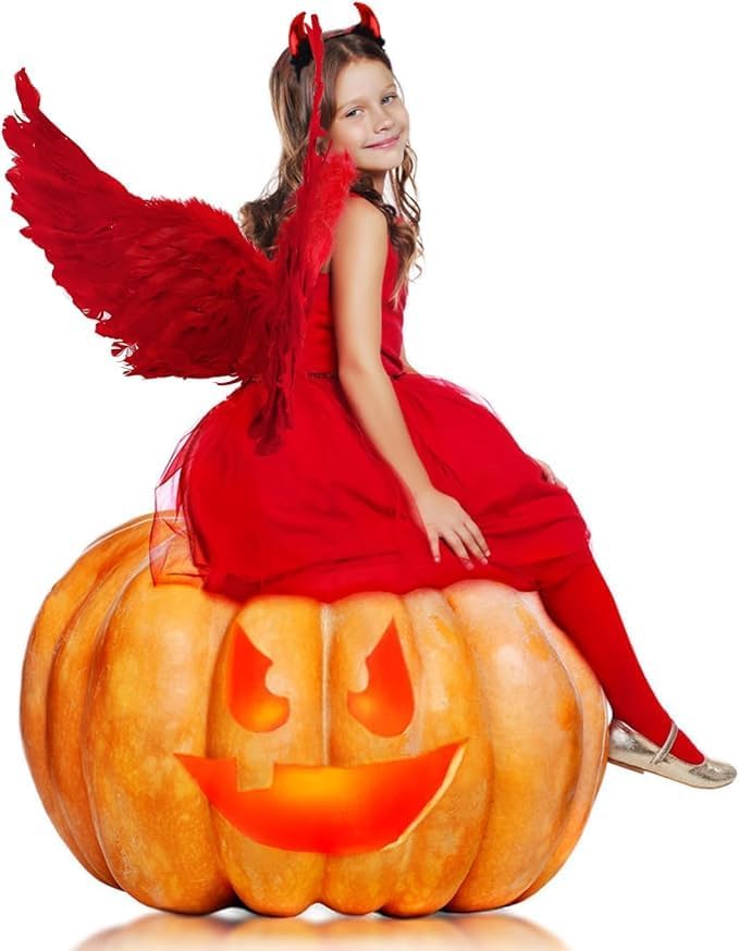SULOLI Ali d'angelo Costume,Ali d'Angelo e Halo,Ali d'angelo bambino per costume di Halloween,Carnarale,Cosplay e festa (rosso)