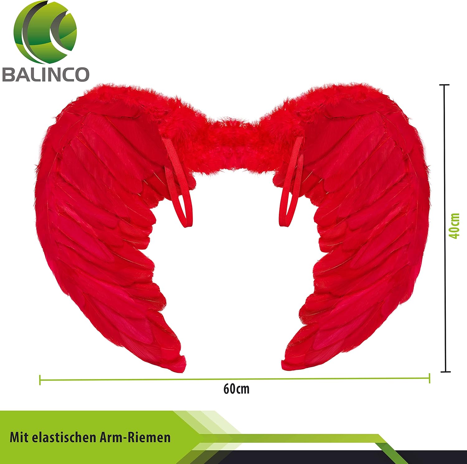 Bellissime ali d'angelo con piume artificiali e cinghie elastiche per le braccia Volate nella stagione di Halloween e del carnevale e incantate chi vi circonda con il vostro aspetto celestiale di angelo. Le nostre ali sono alte 40 cm e larghe 60 cm in totale. Volate al settimo cielo con il nostro accessorio per il vostro costume da angelo. Materiale: 100% plastica; Contenuto della fornitura: 1x ala di angelo con piume artificiali