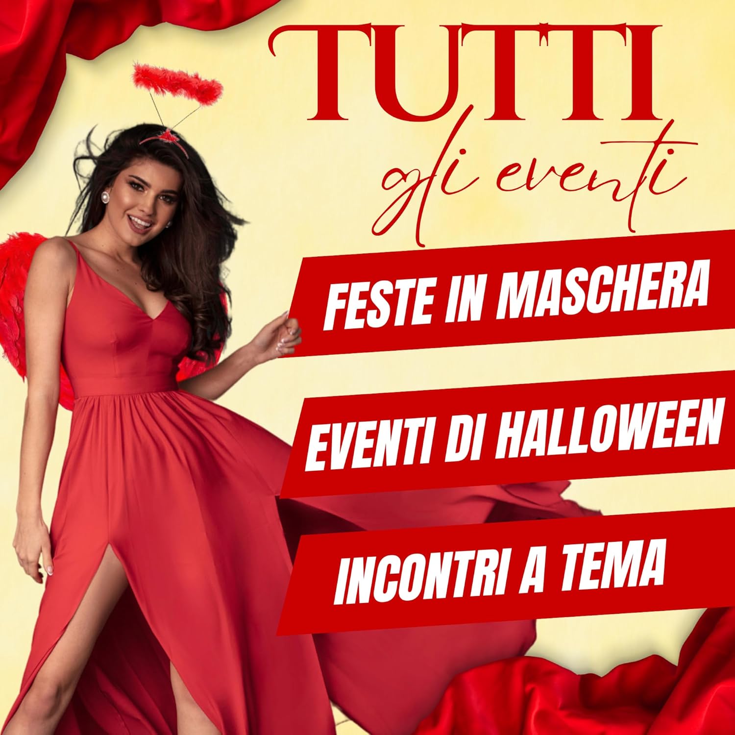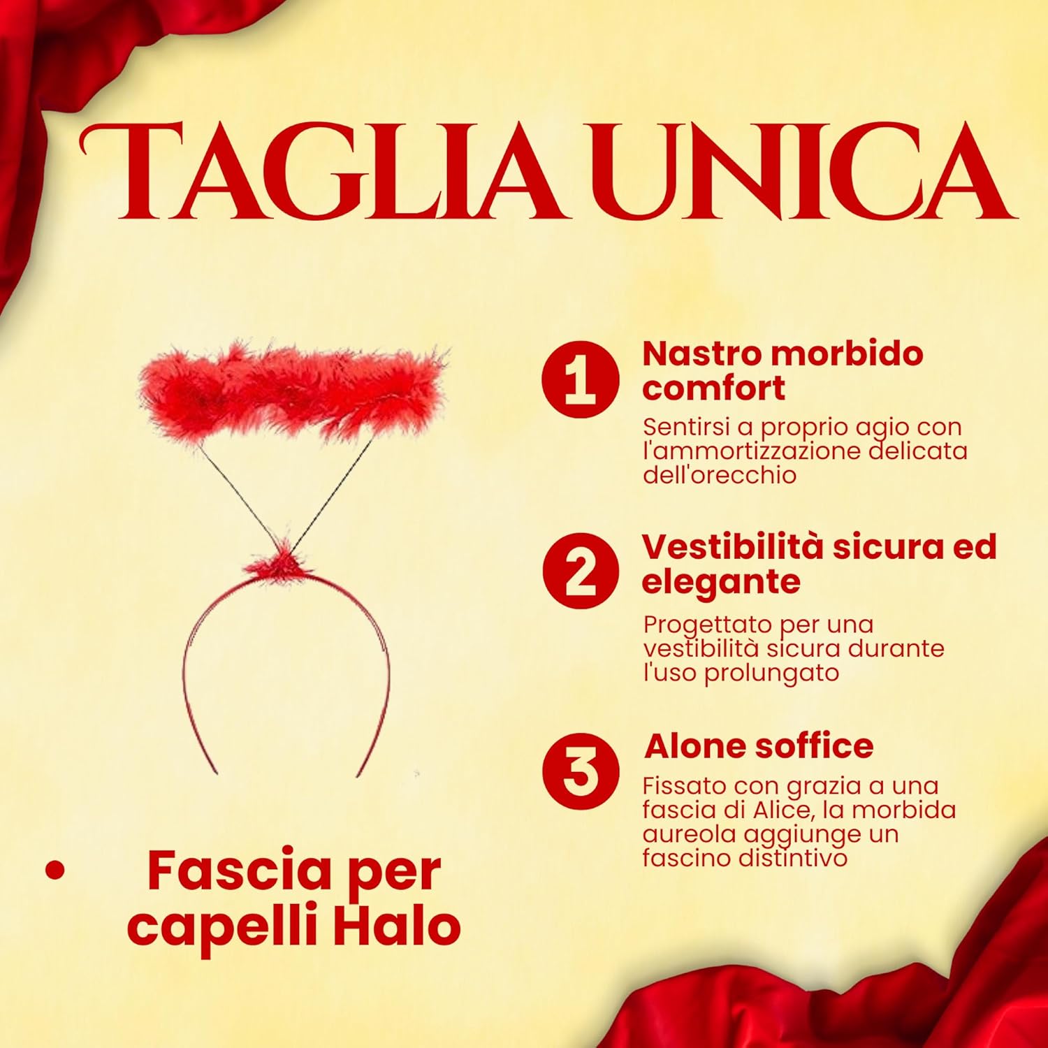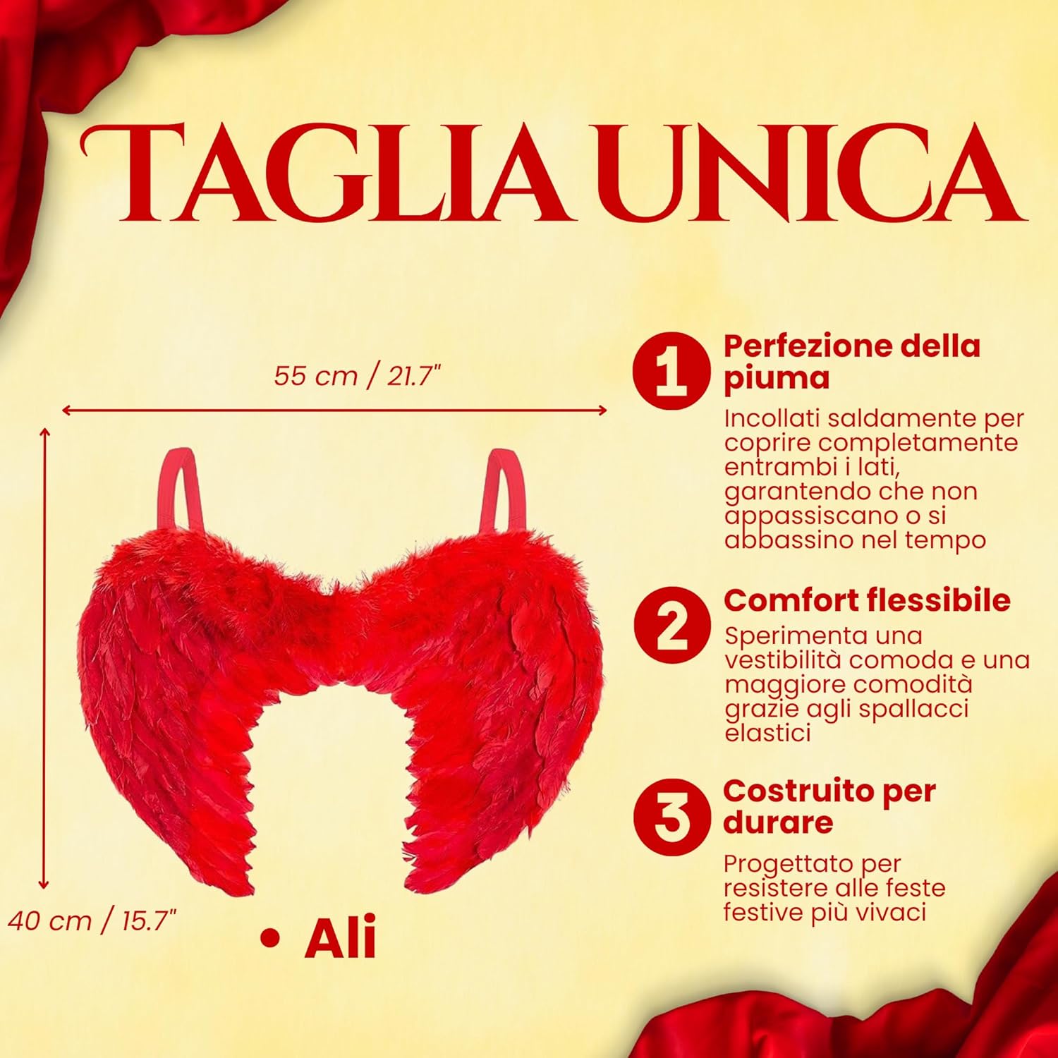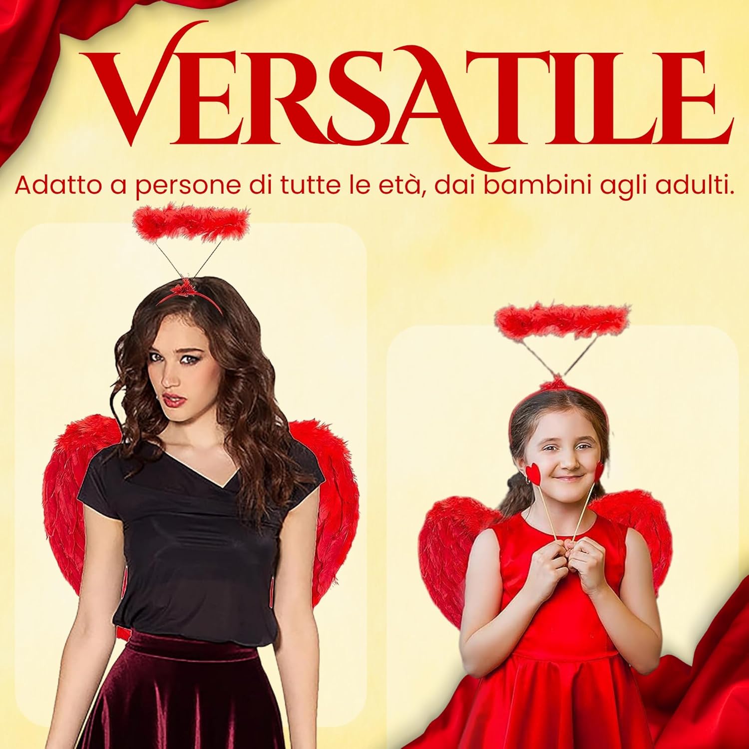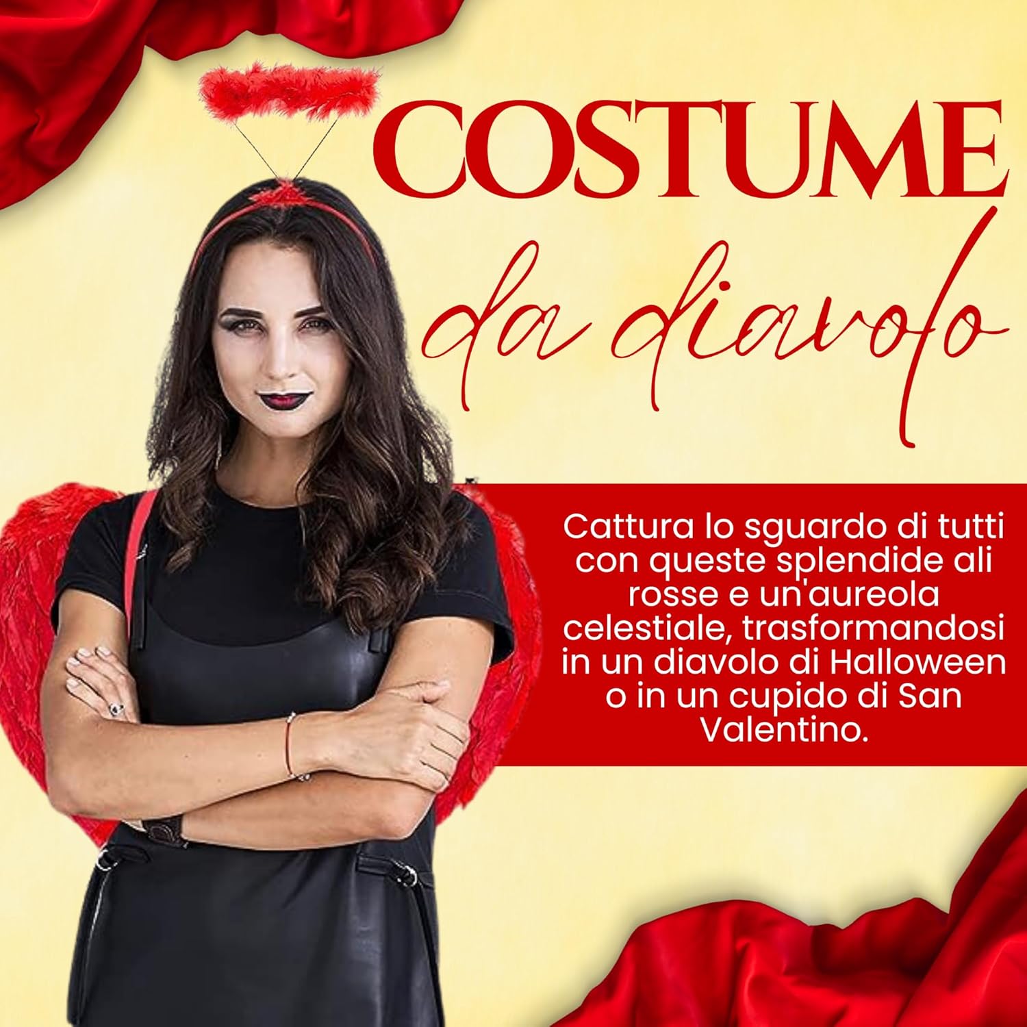 Ali da Angelo Rosse e Cerchietto Aureola - Costume da Fata Donna - Ali con Grandi Piume e Cerchietto per Capelli Aureola Rossa per Travestirsi - Costume Adulti per Feste di Carnevale/Halloween