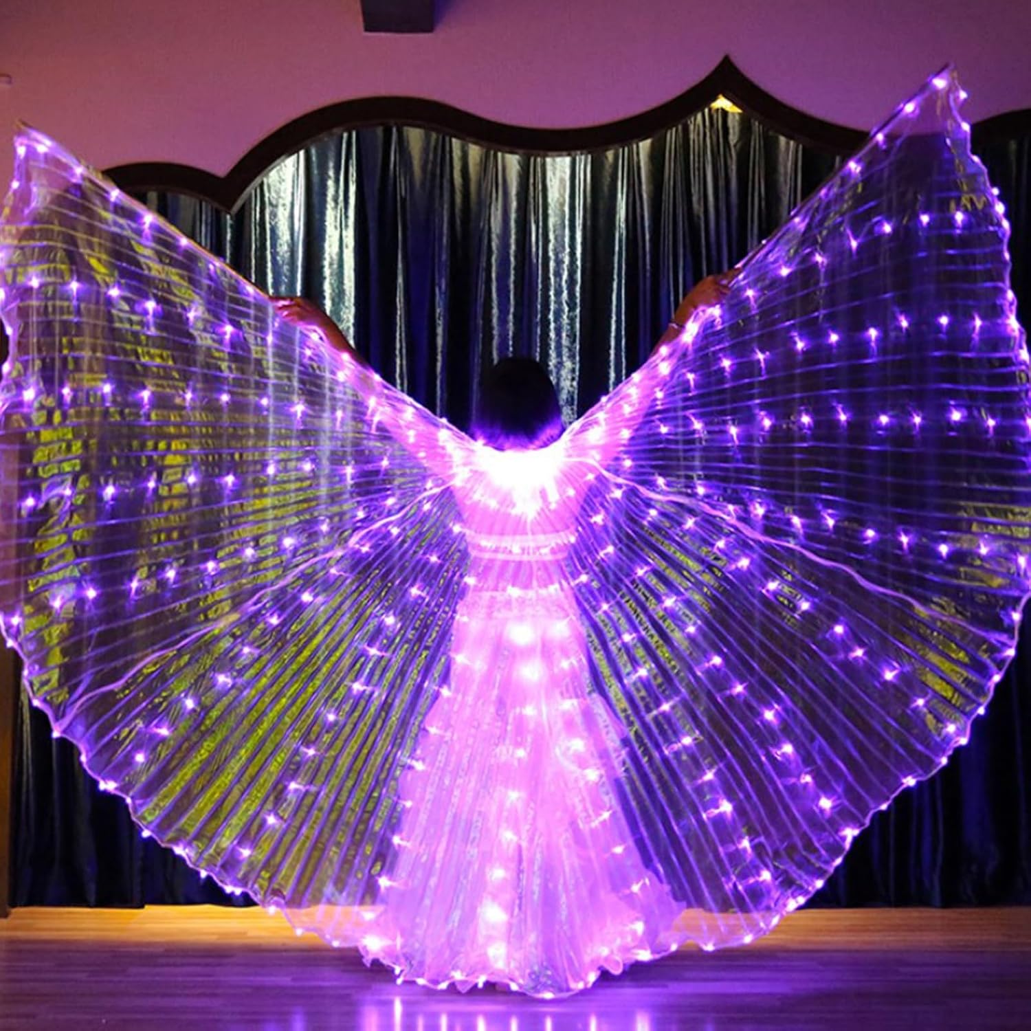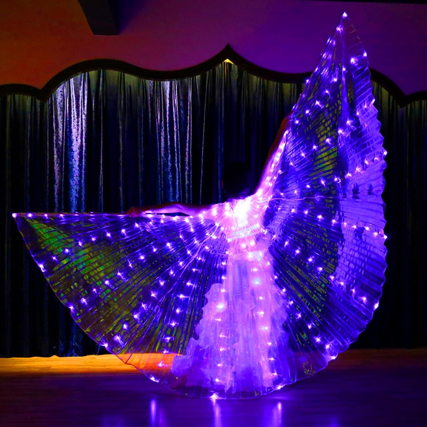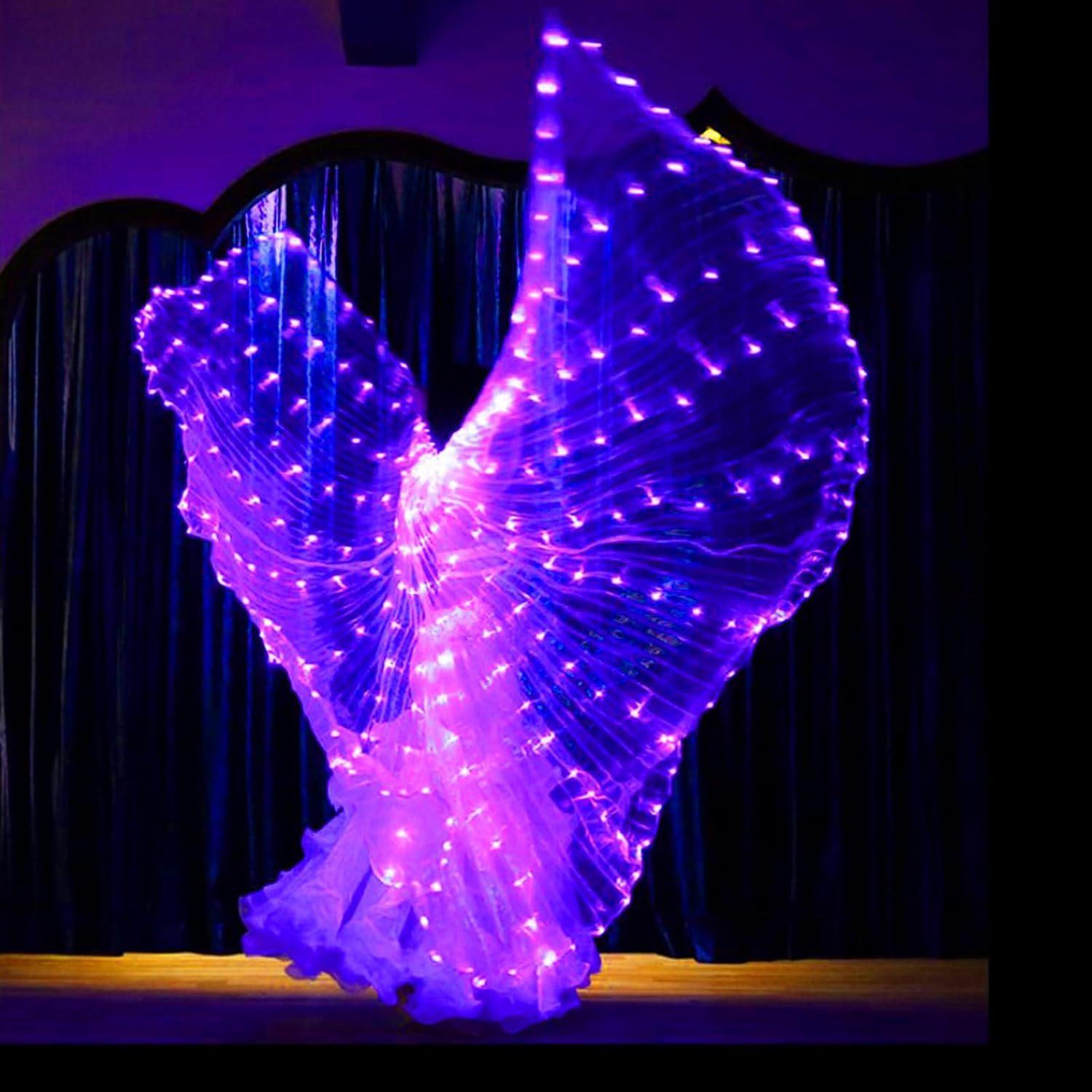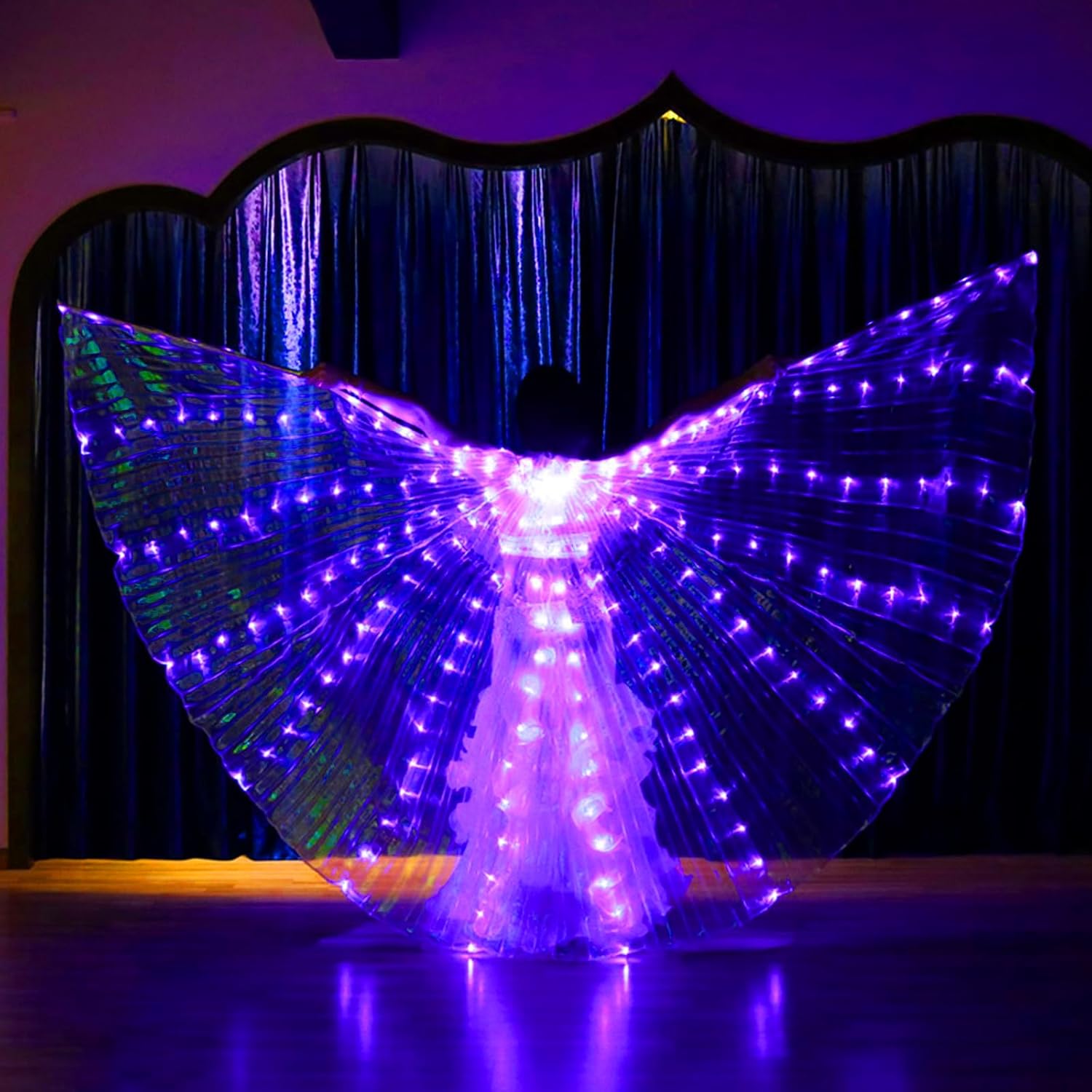 Luce a LED: luce LED controllabile con effetto di potenza mozzafiato, due livelli di controllo della luce: luce costante e lampeggiante, con prolunga manuale, comoda luce LED luminosa ti fa sembrare abbagliante tra la folla, rende la performance del palco più affascinante. Design pratico: chiusura in velcro sul collo, facile da indossare e da togliere, le ali possono essere sollevate sopra la testa e allungate a 360 gradi. Alta sicurezza: il prodotto è alimentato da 3 batterie AA (batteria non inclusa nel prodotto), bassa tensione sicura da 4,5 V. Due dimensioni: ali a LED per adulti, adatte a persone con statura da 140 a 180 cm, con raggio d'ala di 140 cm; ali LED per bambini, adatte a persone con statura da 110 a 140 cm, con un raggio di 110 cm; dimensioni dell'asta telescopica: 20-100 cm Scenari di applicazione: adatto per danza del ventre, spettacoli teatrali, carnevale annuali, carnevale, palcoscenici, palcoscenici da ballo, feste di Halloween, costumi di Natale, bar, fotografia, cosplay, ecc.