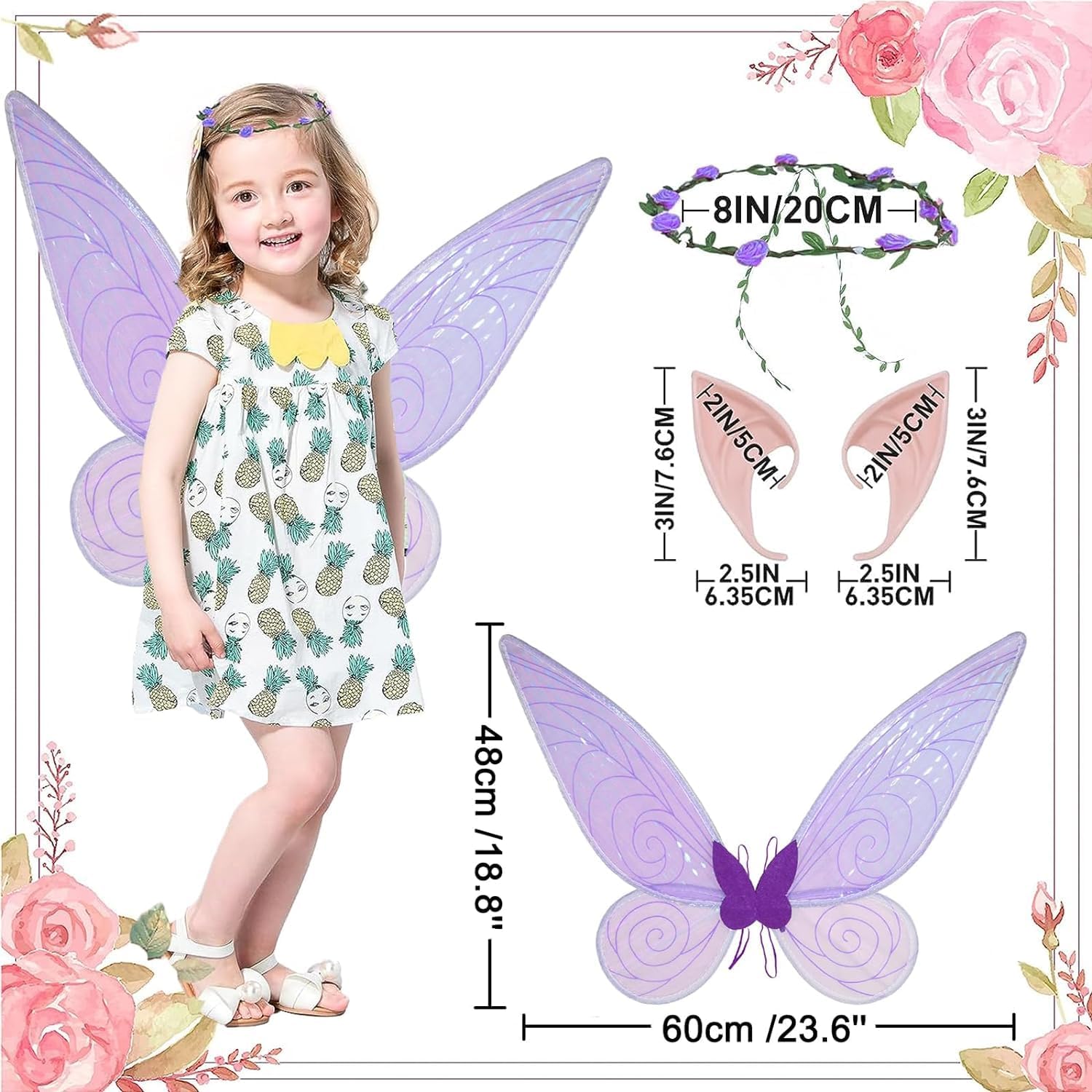 Set di ali da fata: riceverai un set completo di ali da fata a farfalla, include un'ala di fata, una ghirlanda floreale e un paio di orecchie da elfo. Bambini o donne che indossano ali d'angelo sembreranno una fata. Si tratta di un buon costume di Halloween vestire. Belle ali da fata, successo per le feste: le ali da fata sono assolutamente sorprese di Halloween, feste di compleanno, servizi fotografici, performance, feste a tema fata, feste in costume, feste di mezza estate, campo estivo per vestirsi. Queste ali si incorporeranno nei tuoi ricordi di quella festa, poiché incoraggiano ogni persona ad abbracciare la propria giovinezza. Il sorriso sul viso di tutti non sarà presto dimenticato. Design leggero e durevole: le nostre ali da fata misurano circa 60 cm x 45 cm, l'osso centrale delle ali angolari di Halloween è realizzato in feltro per collegare la forma delle ali di farfalla, due cinghie elastiche in pelle che possono essere fissate saldamente sulla schiena senza preoccuparsi di cadere, possono essere indossate sia adulti che bambini. Ali di fata scintillanti: le ali di farfalla sono ben realizzate in organza davvero bella, che la rende molto solida. Il filo interno è abbastanza robusto da mantenere la sua forma, ma anche abbastanza flessibile da poter regolare l'angolazione. Le cinghie elastiche vengono utilizzate per indossare le ali, che hanno una buona fissazione e non scivolano facilmente durante la corsa e il salto. Queste belle ali da fata ti aiuteranno a volare via nella terra delle fate. Regalo di Halloween perfetto per realizzare i sogni fatati di tutti: stridi, battiti e salti accadranno quando riceverai le ali da fata. Sono confezionati singolarmente in buste di plastica in modo che siano facili da distribuire agli ospiti della festa, anche belli per i tuoi amici. È la cosa più carina avere una piccola farfalla in giro.