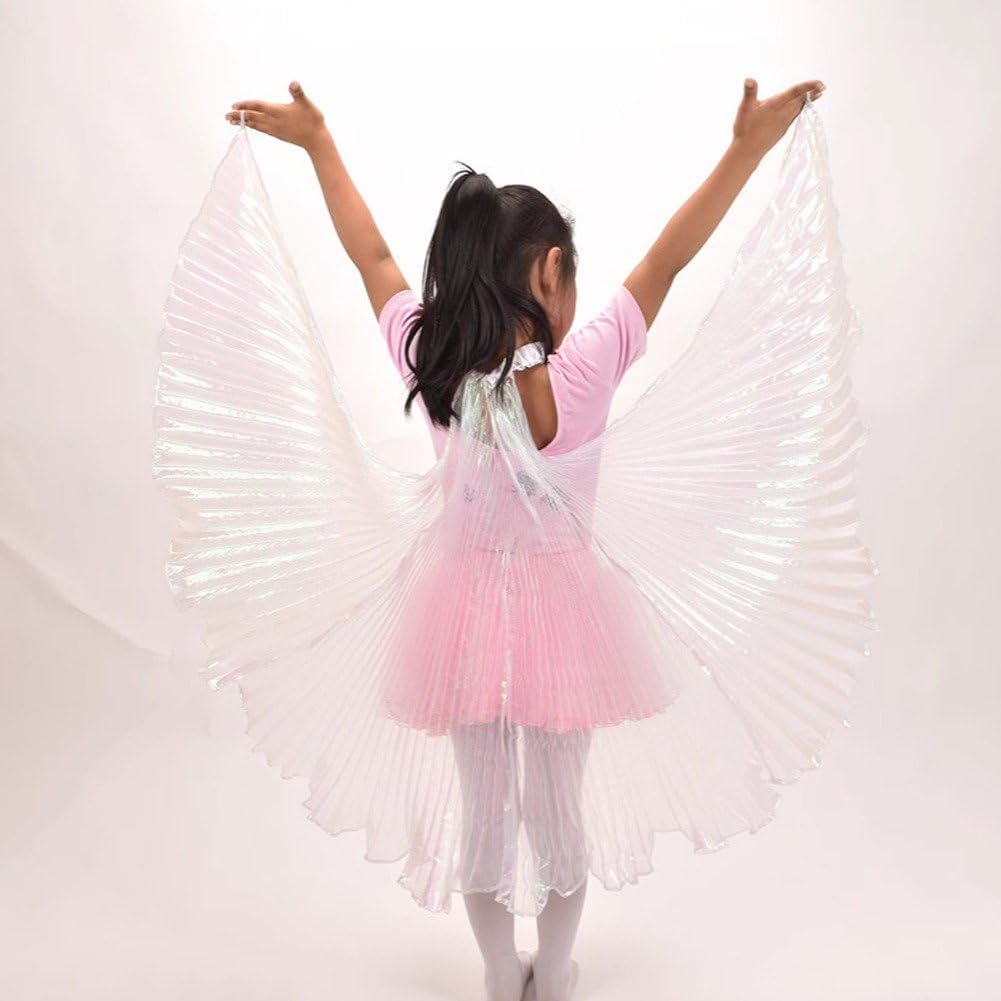 Ali trasparenti con collo pendente: il colore trasparente e il design con collo pendente creano un effetto visivo sorprendente, catturando l'attenzione del pubblico. Accessori versatili per spettacoli di danza: ideali per danza del ventre, danza popolare o gli esercizi di gruppo, queste ali aggiungono un tocco dinamico a qualsiasi spettacolo. Design con gancio per mano: il design con gancio per mano rende queste ali facili indossare, offrendo una vestibilità sicura e libertà di movimento. Hook Dance | Accessori per danza | Tessuto in filato colorato: realizzate con filato colorato e vivace, queste ali presentano tonalità che cambiano con luce, migliorandone l'attrattiva visiva. Fascia d'età applicabile: progettate specificamente per le bambine, queste ali garantiscono una vestibilità perfetta per le bambine di età compresa tra 120 e 145 cm, favorendo l'inclusività.