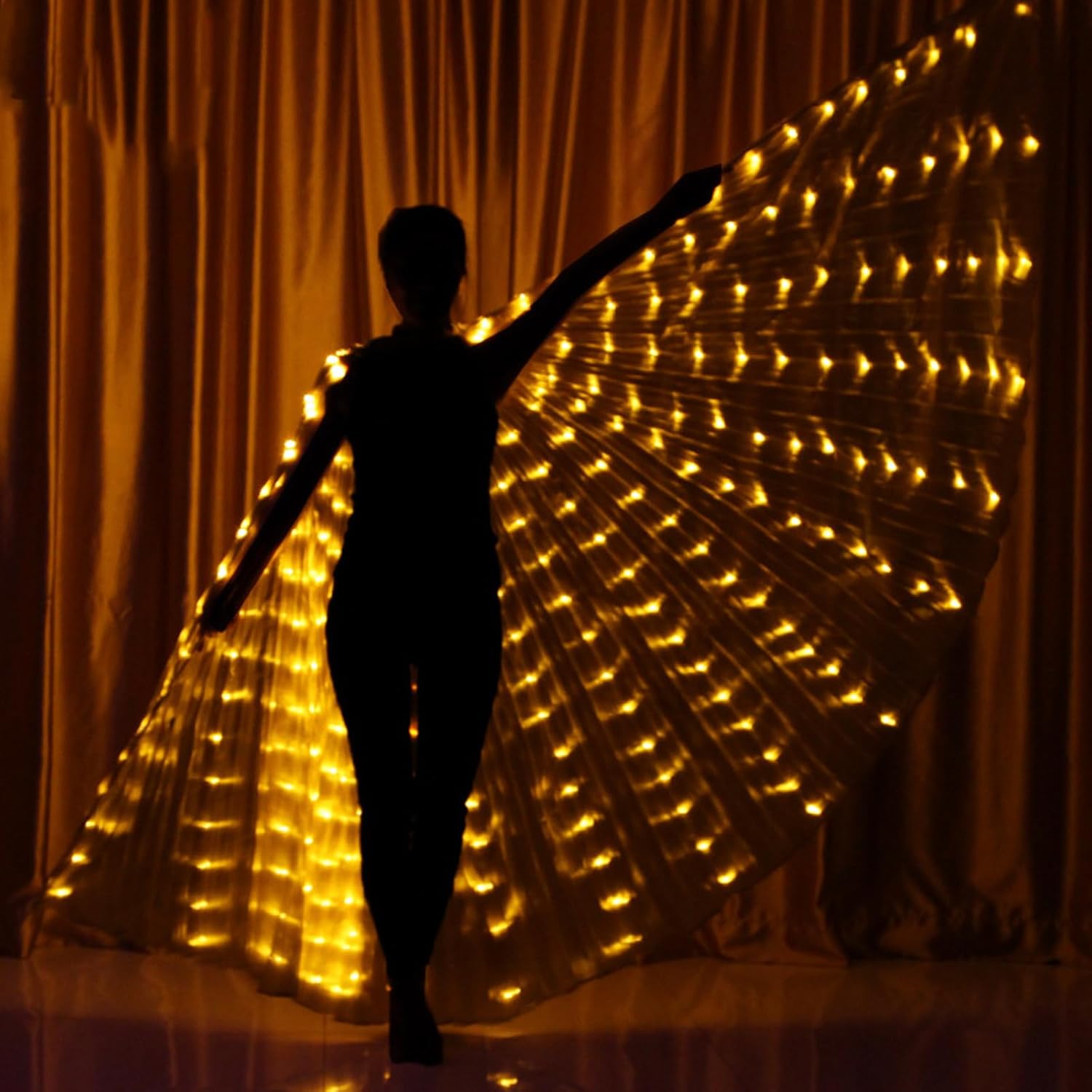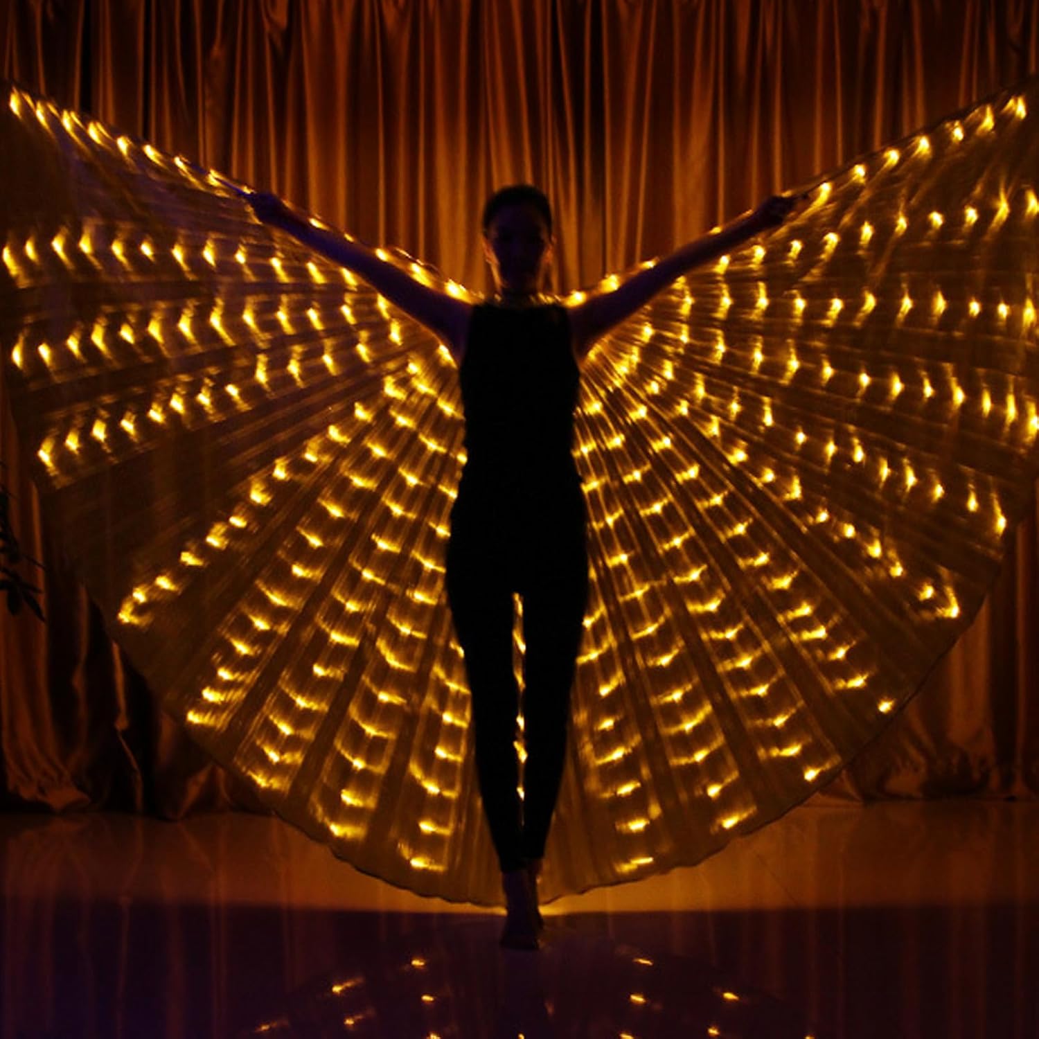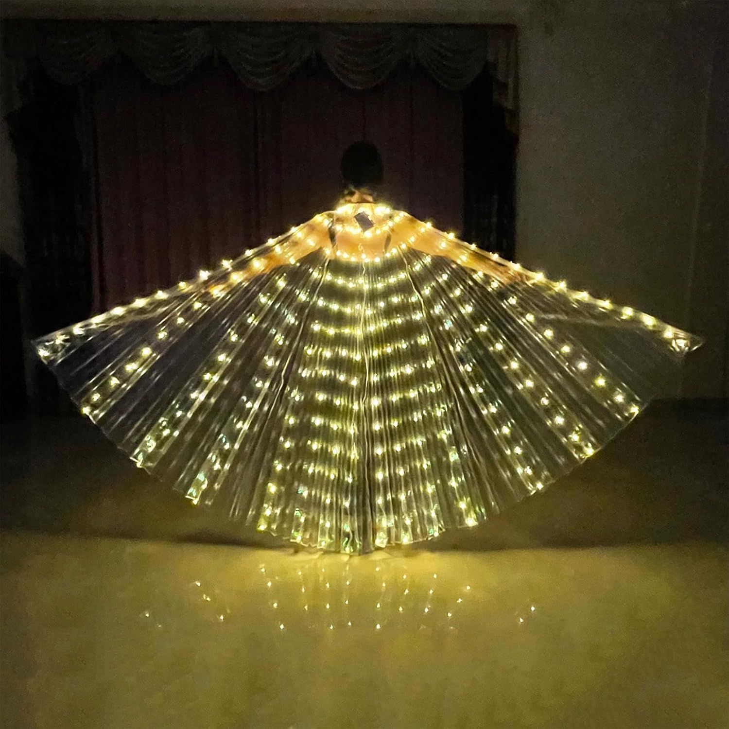 Prestazioni brillanti: luci colorate per prestazioni sorprendenti, si abbinano perfettamente a tutti i tipi di costumi da danza del ventre, sarai l'eroina delle esibizioni sul palco quando lo indossi, goditi gli applausi e gli occhi. Bassa tensione sicura: il costume da danza del ventre a LED da ragazza fornisce una bassa tensione di 4,5 V e può controllare le luci a LED per ottenere un enorme effetto scenico, alimentato da 3 batterie AA (non incluse) Illuminazione a LED: le ali per danza del ventre sono dotate di luci a LED, hanno incredibili effetti prestazionali, controllo della luce a doppia velocità: luce continua e luce lampeggiante, 2 modalità per soddisfare le tue esigenze. Ampia applicazione: queste ali LED Isis sono adatte per danza del ventre, spettacoli teatrali, carnevale, palcoscenico, carnevale, palcoscenico, feste di Halloween, costumi di Natale, bar, fotografie, giochi di ruolo, ecc. Facile da indossare: la parte del collo delle ali a farfalla a LED adotta un gancio e un anello per indossarla e toglierla facilmente. Le ali possono essere sollevate sopra la testa ed estendono a 360°, bellissime ed eleganti. È disponibile in 2 taglie separatamente per bambini e adulti.