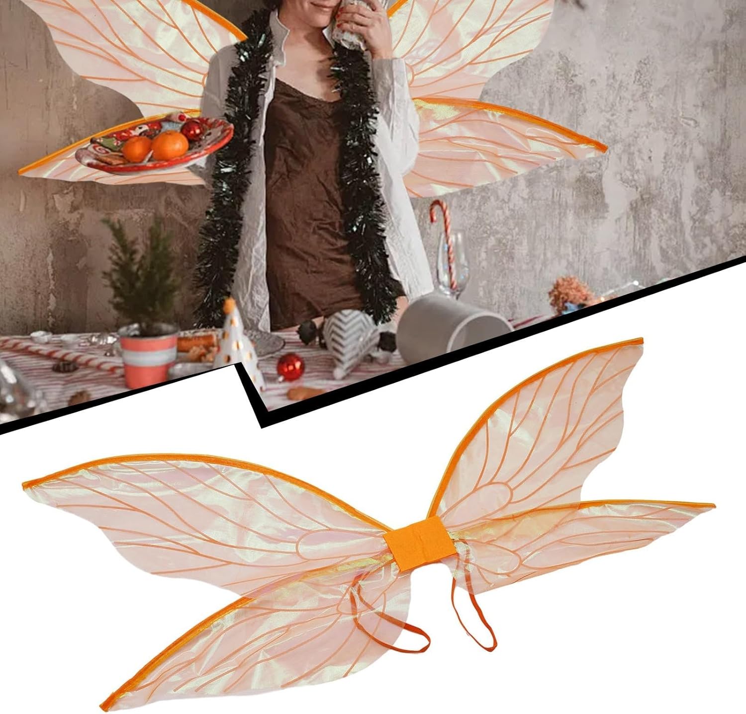 Ali Cicala colorate: realizzate in filato, queste ali sono leggere, resistenti allo sbiadimento, di lunga durata e comfort. Design unico: lo scheletro centrale delle ali è collegato da feltro, formando una bella forma a farfalla morbida, confortevole e aggiunge un tocco di eleganza a qualsiasi abbigliamento, facendoti risaltare nelle riunioni all'aperto. Perfette per giochi di ruolo: queste ali pieghevoli a forma di farfalla sono perfette per giochi di ruolo, oggetti di scena fotografici e costumi di Halloween e sono dotate di spallacci elastici per indossarli facilmente. Utilizzo: adatto per varie occasioni come Halloween, feste in maschera, carnevale, spettacoli teatrali e feste in costume. Ottimo anche per feste di compleanno, eventi di Capodanno e altro ancora. Comodo e accattivante: dotato di spallacci elastici, queste ali d'angelo rimangono saldamente in posizione, mentre il materiale in organza crea un affascinante effetto sfumato di colore, aggiungendo un tocco incantevole al tuo aspetto.