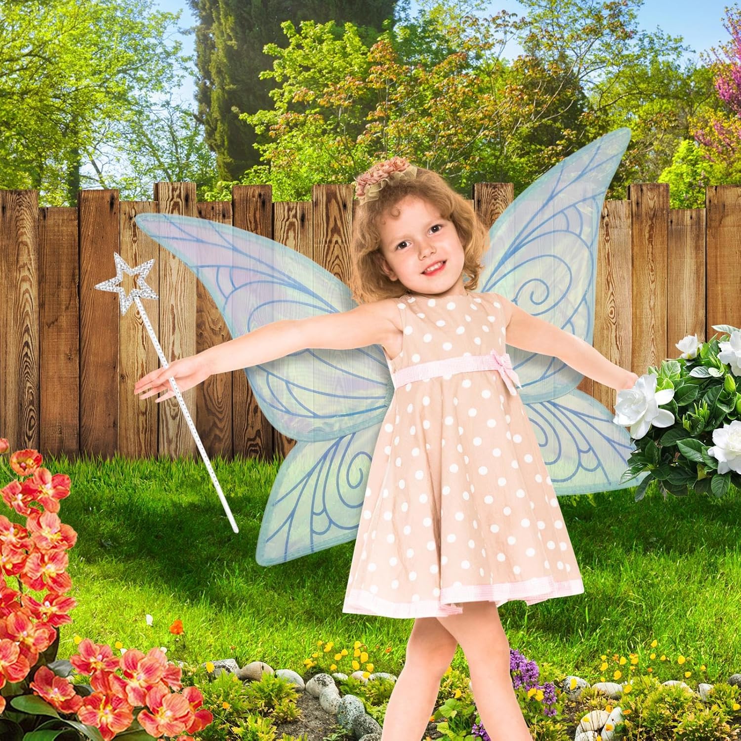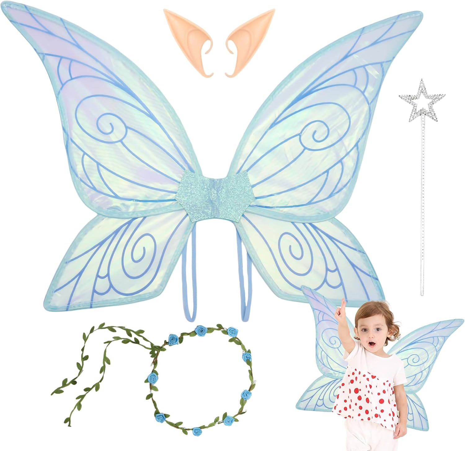 Utilizzo flessibile: entusiasta di celebrazioni, feste a tema ed eventi in costume come riunioni di principesse o eventi di Halloween. Crea atmosfere allegre per compleanni di bambini e ricevimenti di nozze. Incoraggia l'interazione giocosa e le esperienze creative attraverso una personalizzazione semplice. Vestibilità comoda: il materiale leggero e innovativo garantisce una sensazione aderente e confortevole senza punti di pressione. Permette la partecipazione attiva ad eventi di ballo o giochi di ruolo grazie alla perfetta distribuzione del peso. Versatile e semplice: le dimensioni flessibili si adattano facilmente a bambini e donne adulte per un facile utilizzo in tutte le attività come feste o giochi fantasiosi senza restrizioni. Materiale durevole: struttura in filo metallico e cinghie elastiche di sicurezza conferiscono alle ali delle fate libertà di movimento e supporto duraturo. Rimanere sempre intatto durante l'uso attivo. Giocattolo fantastico: perfetto per i piccoli sognatori, questo set di ali di fata trasforma chi lo indossa in una principessa, ideale per emozionanti giochi di ruolo di Halloween e ispira idee di gioco creative